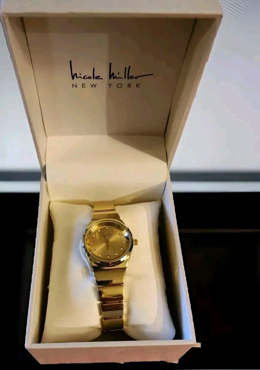 Nicole Miller Watch Gold Tone Analog Second Hand Boxed NEW