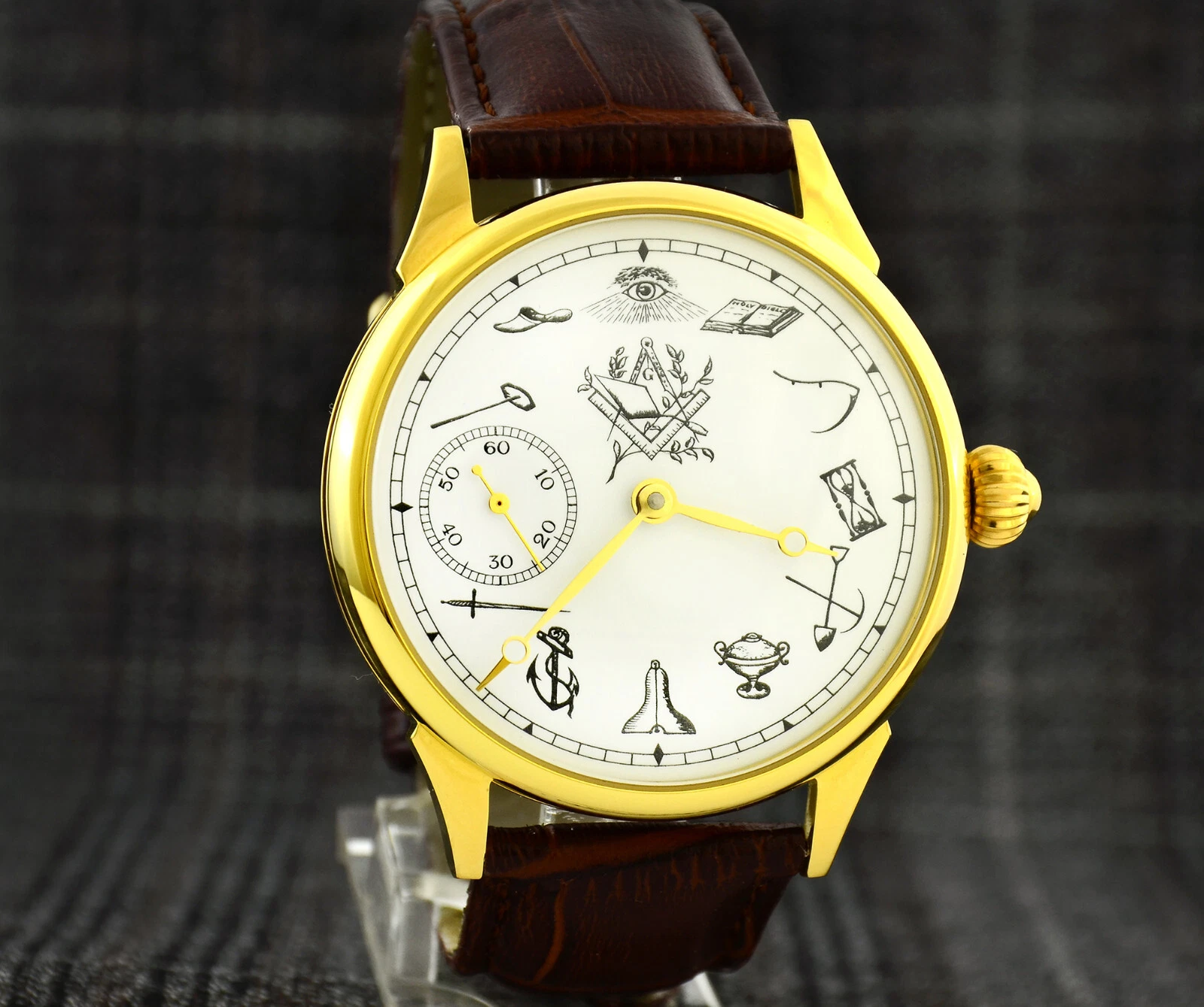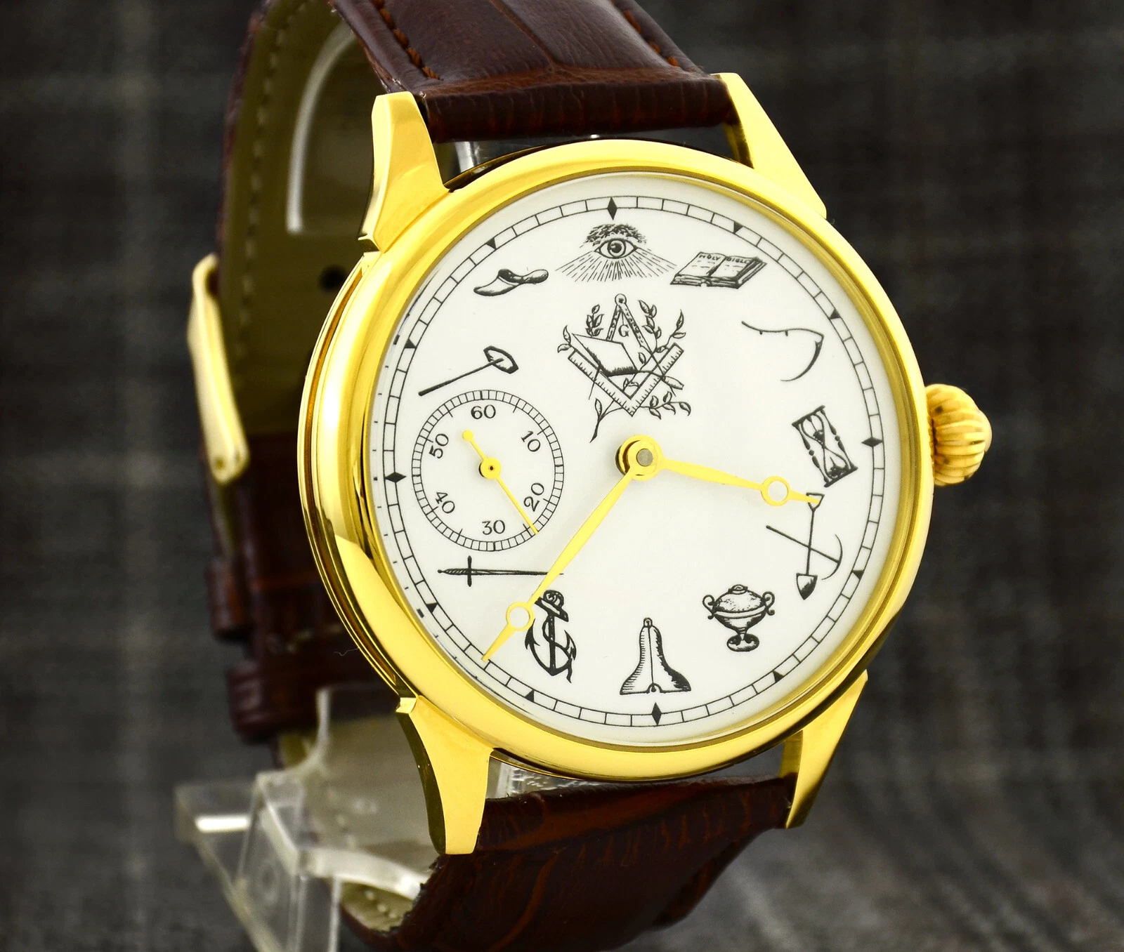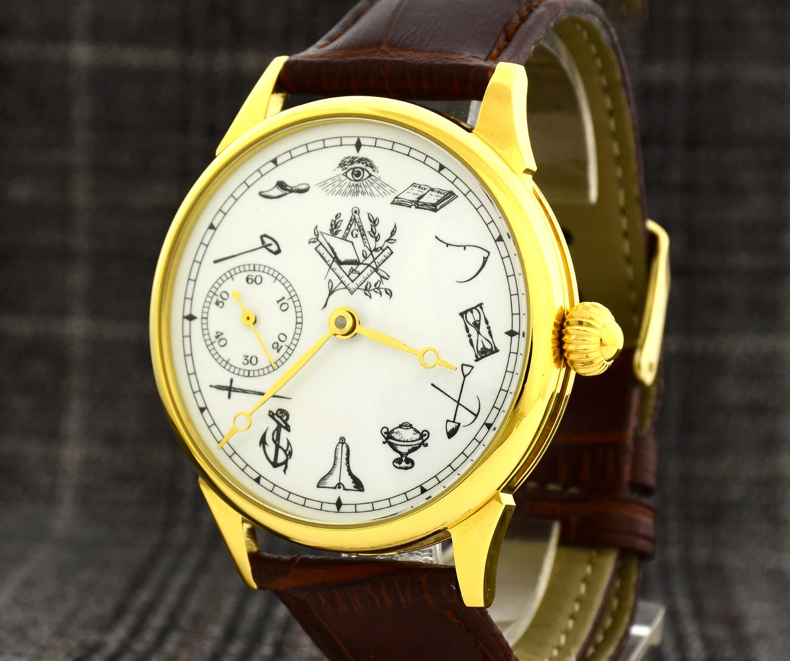 Masonic watch Art Deco watch Marriage watch Freemason Gold watch husband gift