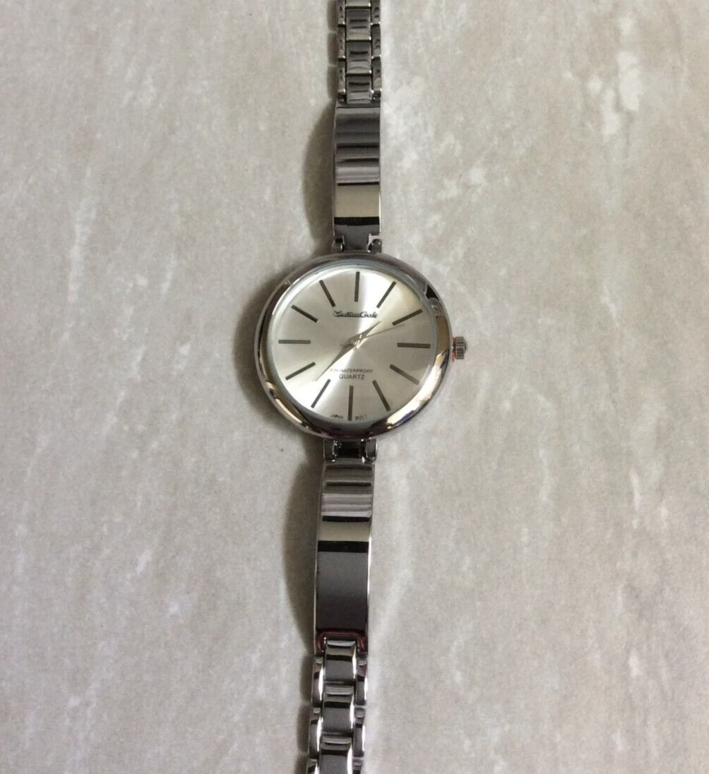 Montres Carlo Women Watch Silver Waterproof IP Round Silver Dial on Silver Band