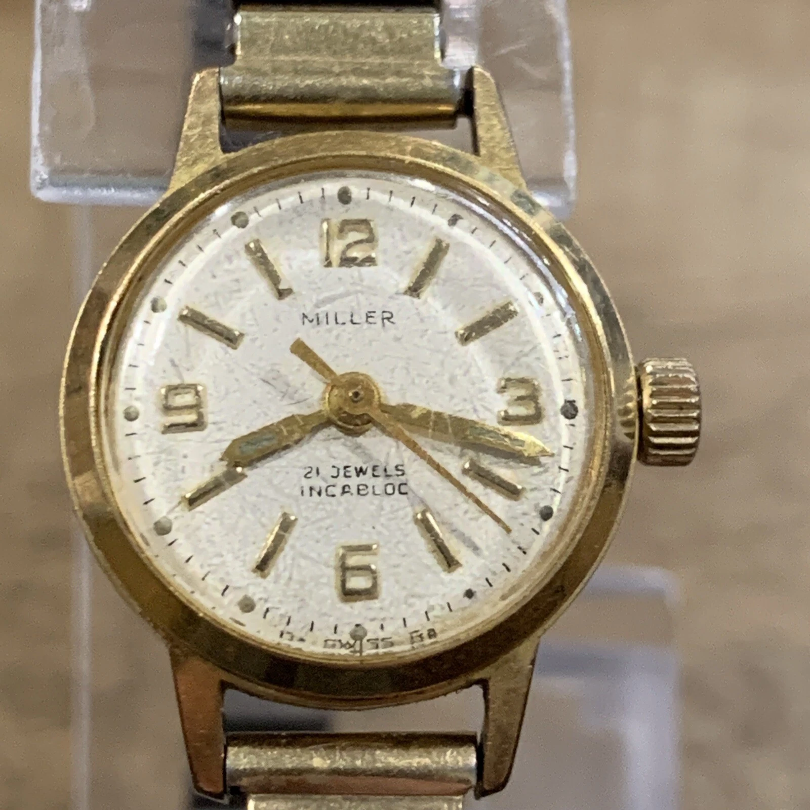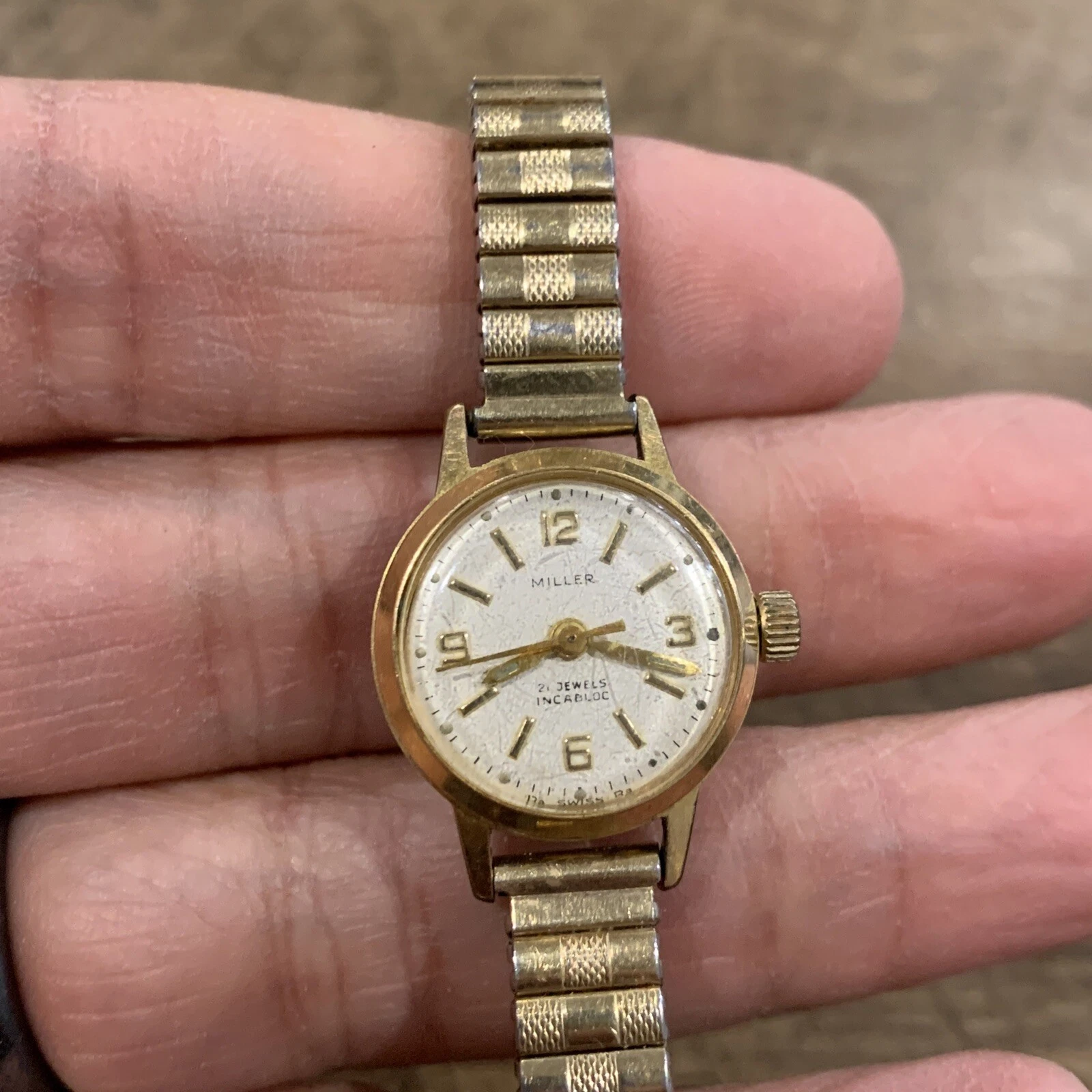 Vintage Miller 21 Jewel Ladies Hand Wind Watch Good Working Condition Gold Tone