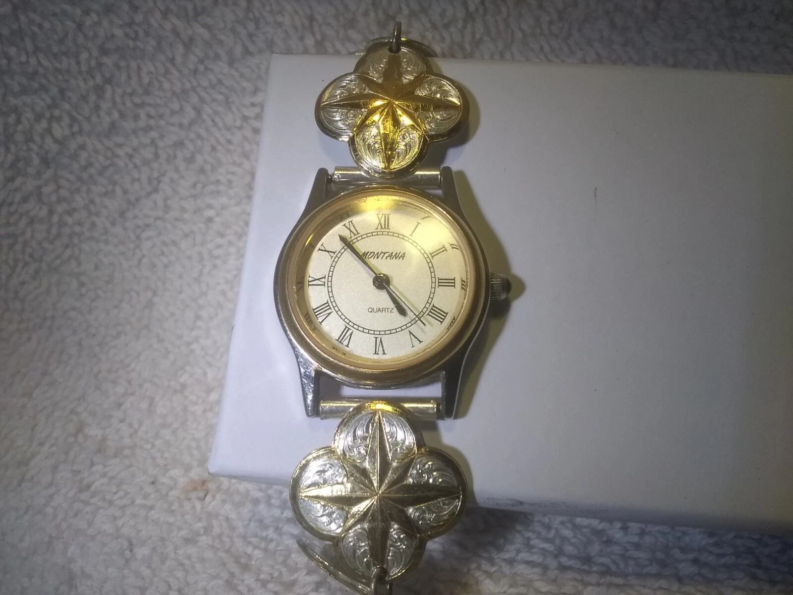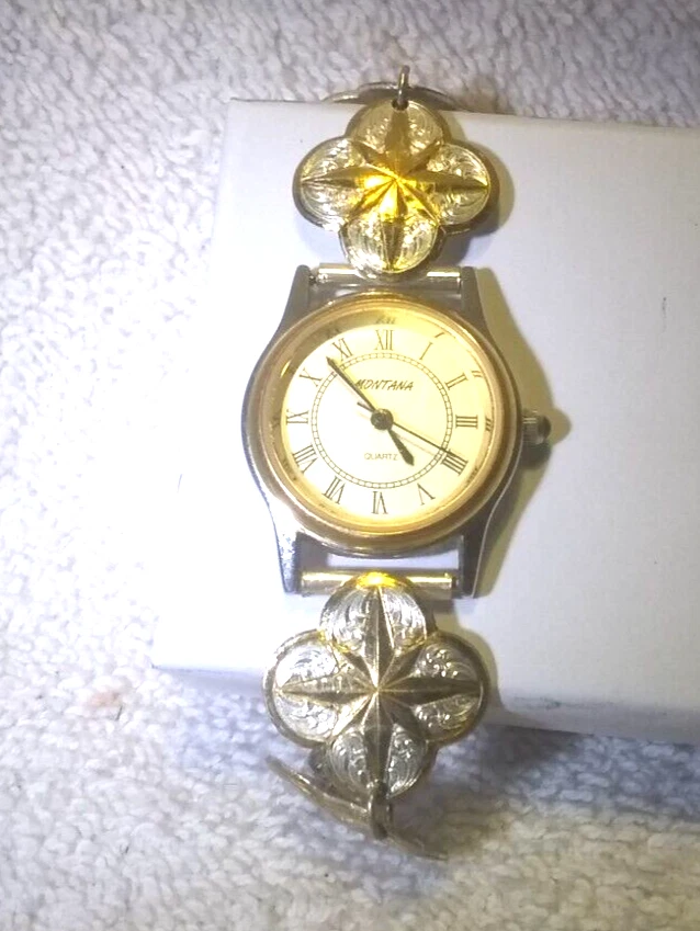 Montana Silversmiths Watch Silver Snowflake Gold Center Star Bracelet New Bat EC