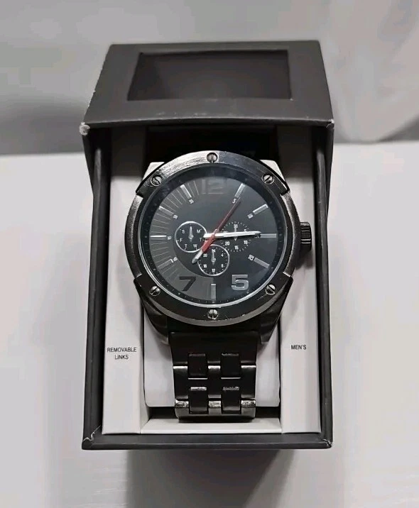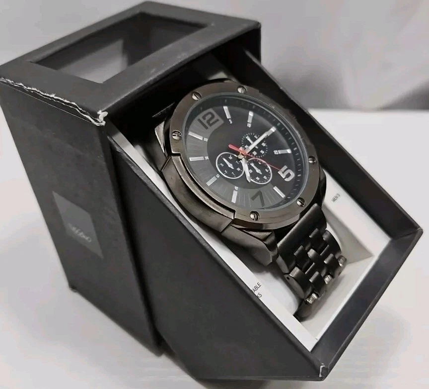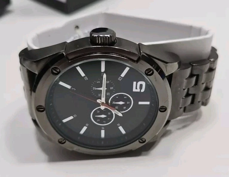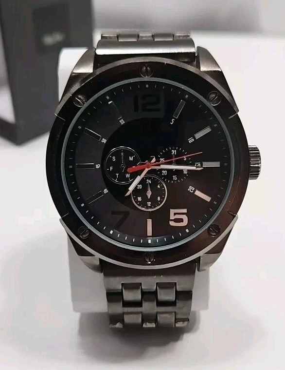 Mossimo Mens Gunmetal Gray Analog Chronograph Large Face Watch New Battery