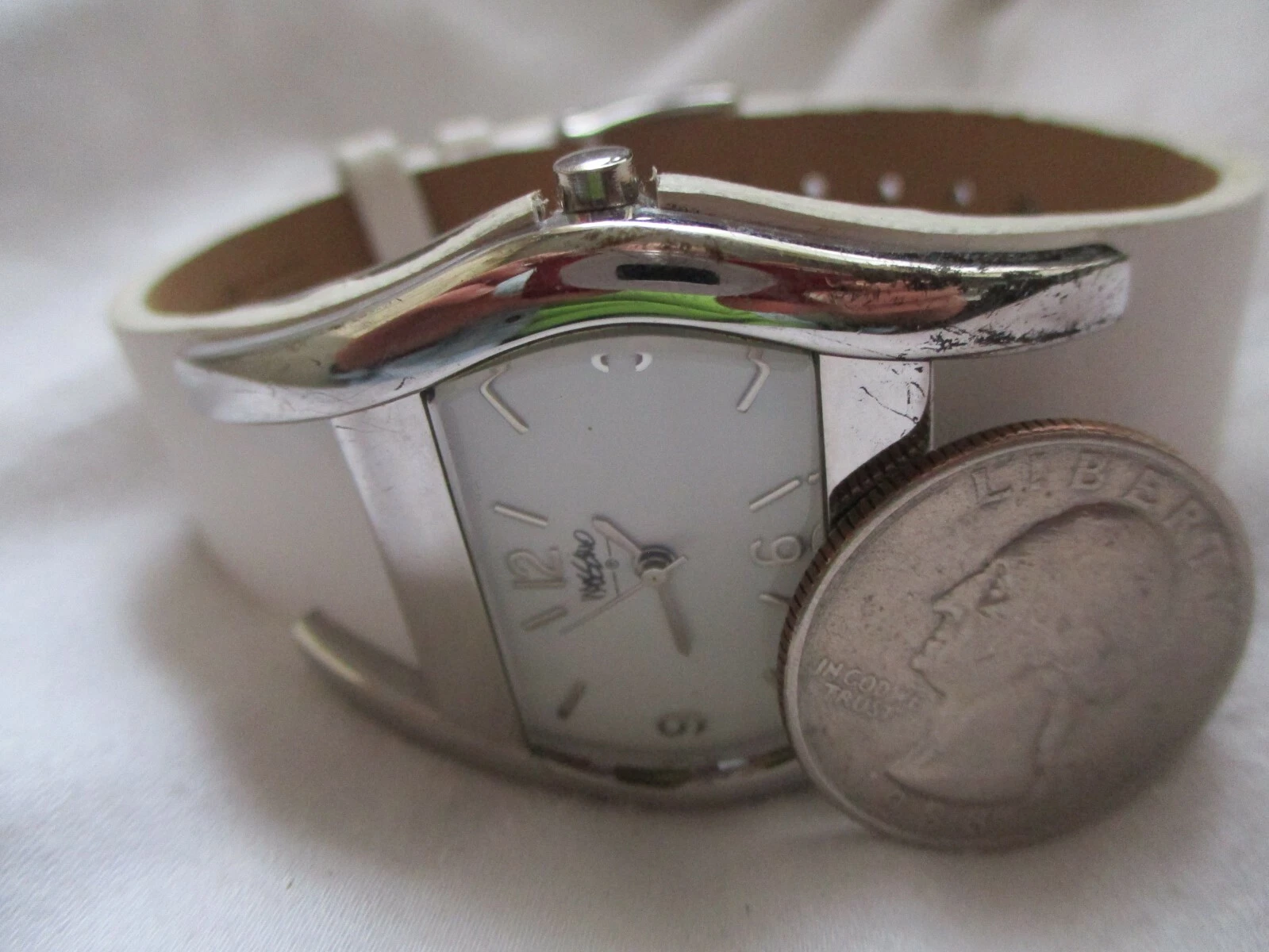 Mossimo White & Silver Toned Wristwatch w/ Adjustable Buckle Band
