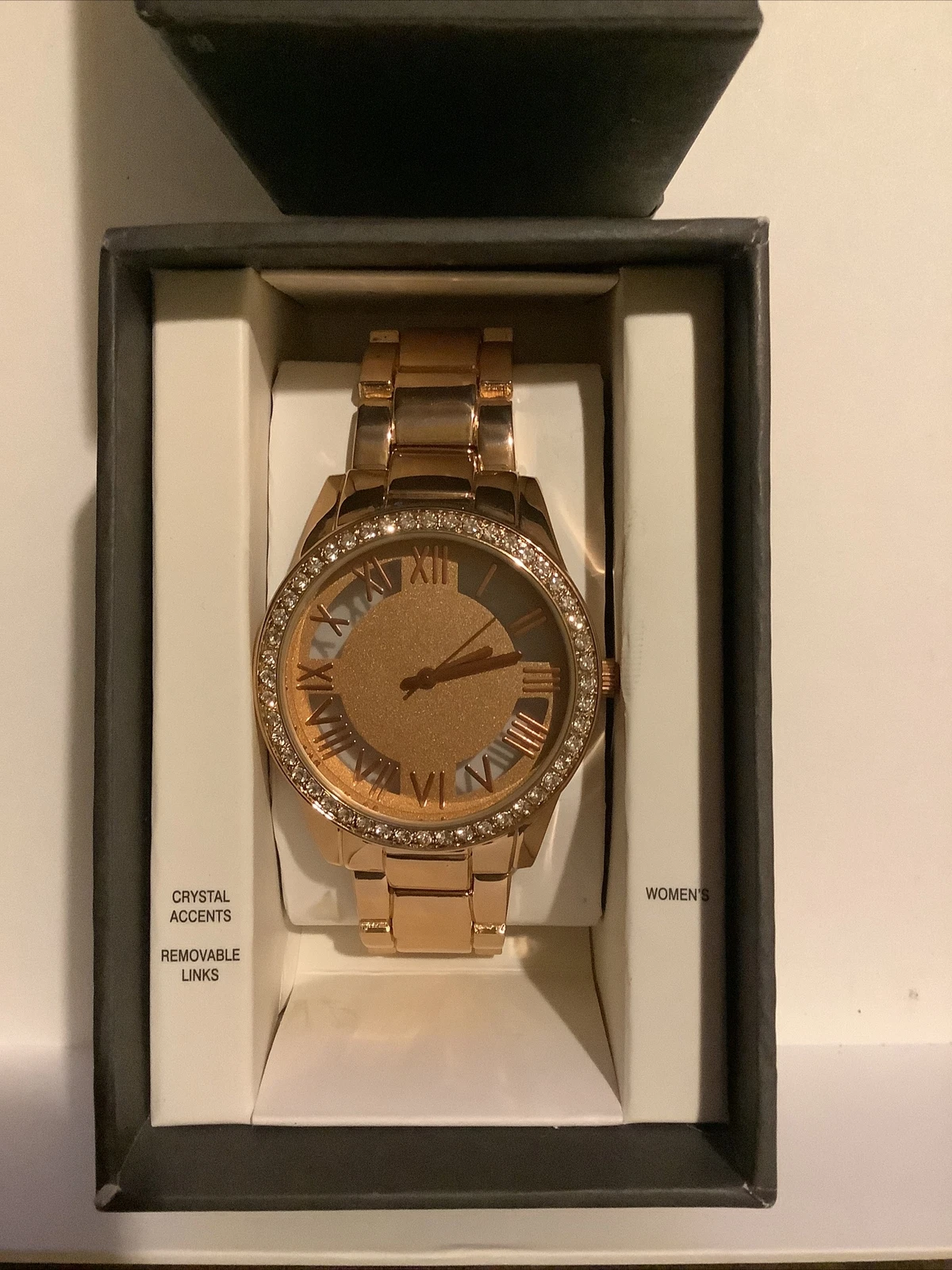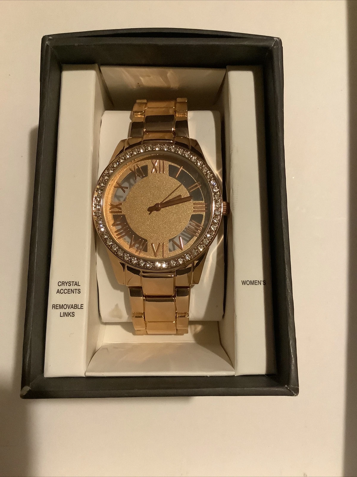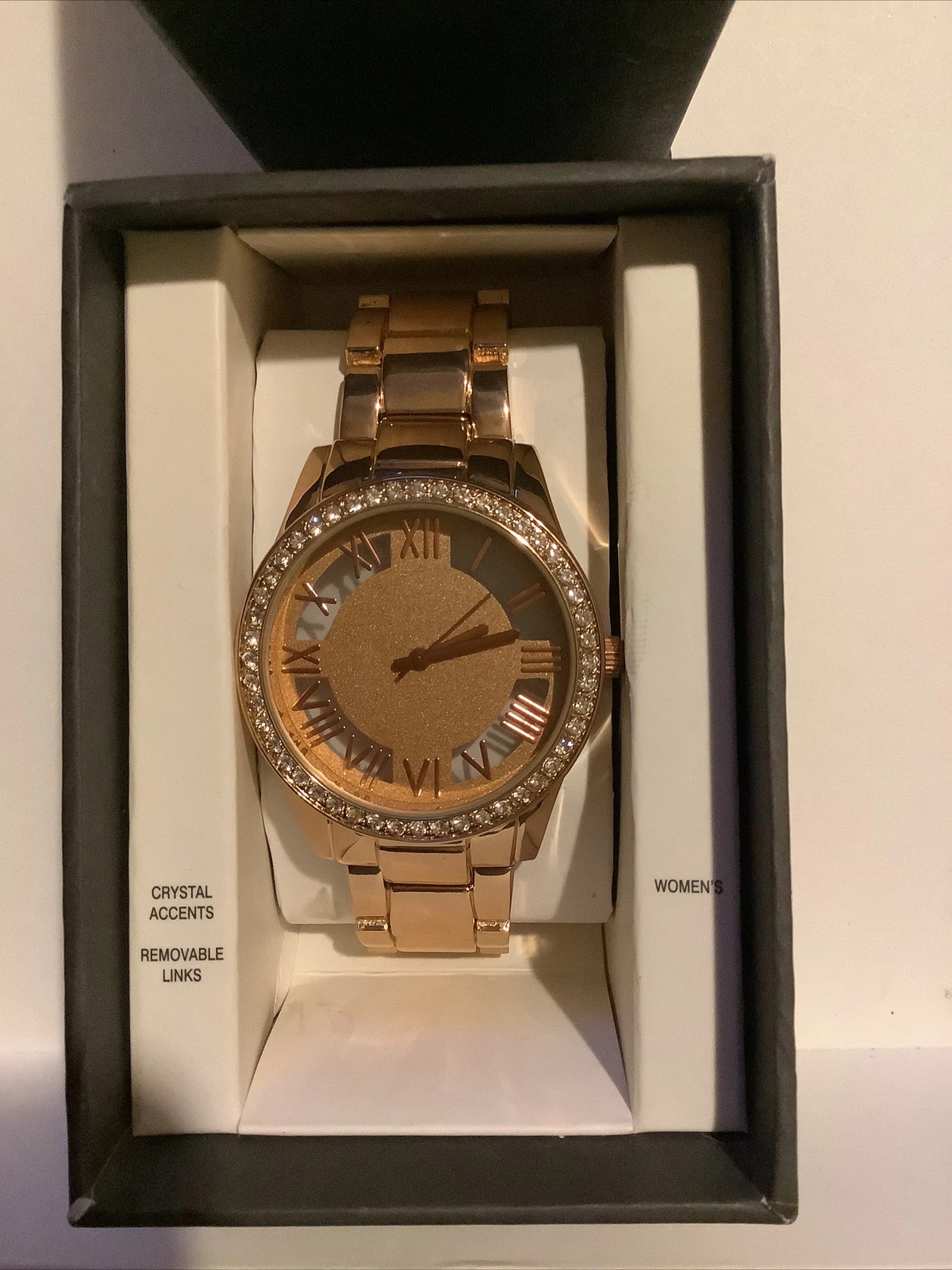 Mossimo Target Womens Rose Gold Plated Crystal Bezel Accent Roman Numeral Watch