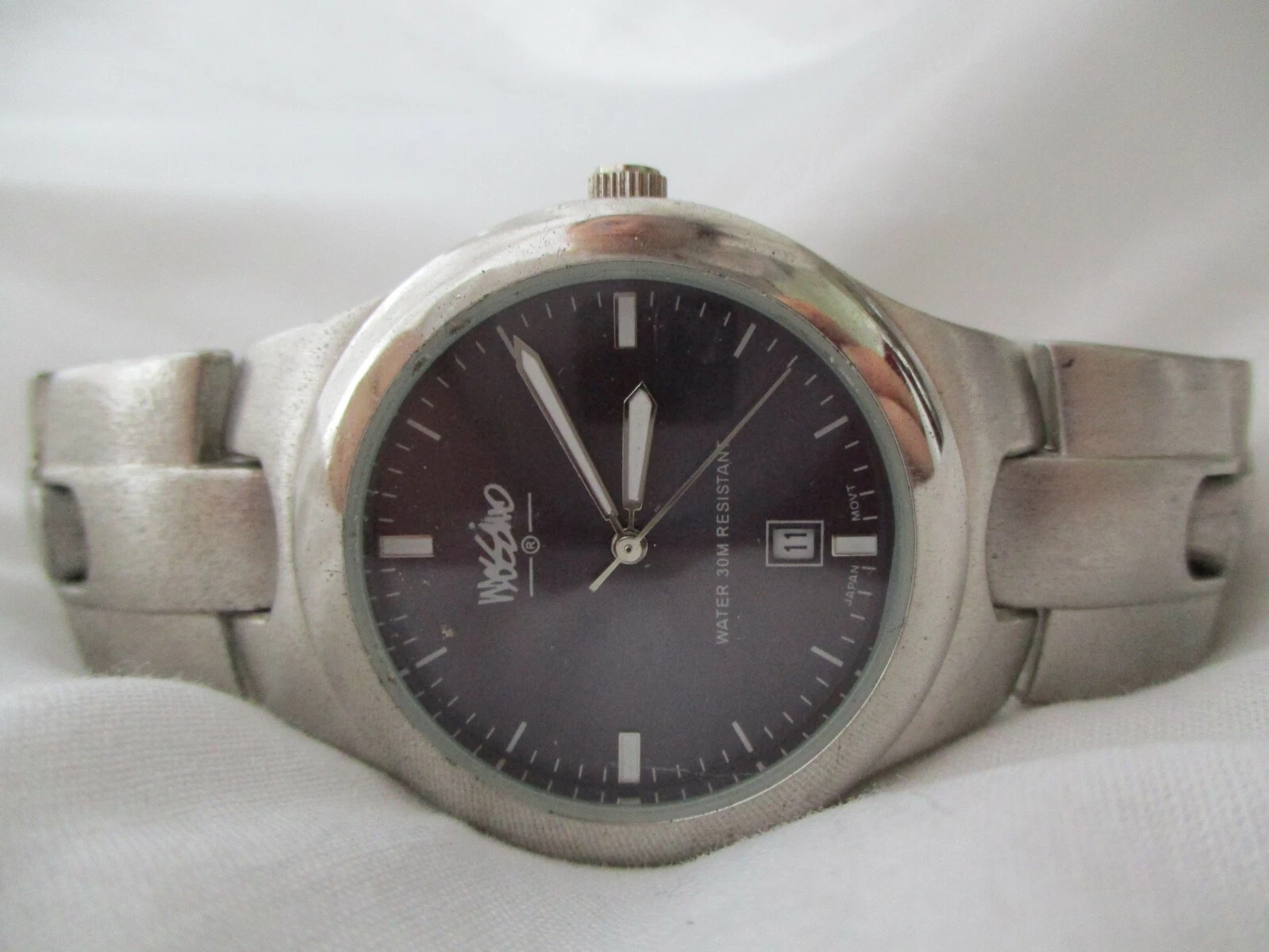 Mossimo Watch Silver Toned Stainless Steel Link Band Date Indicator WORKING!