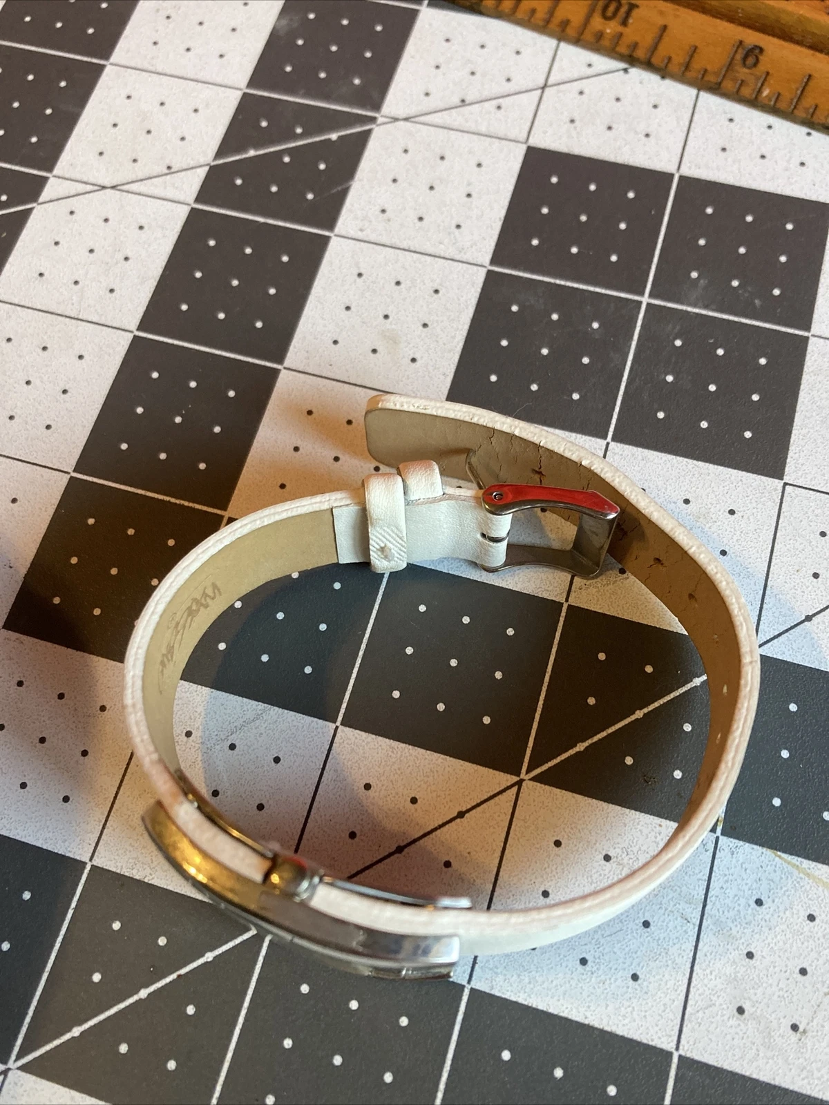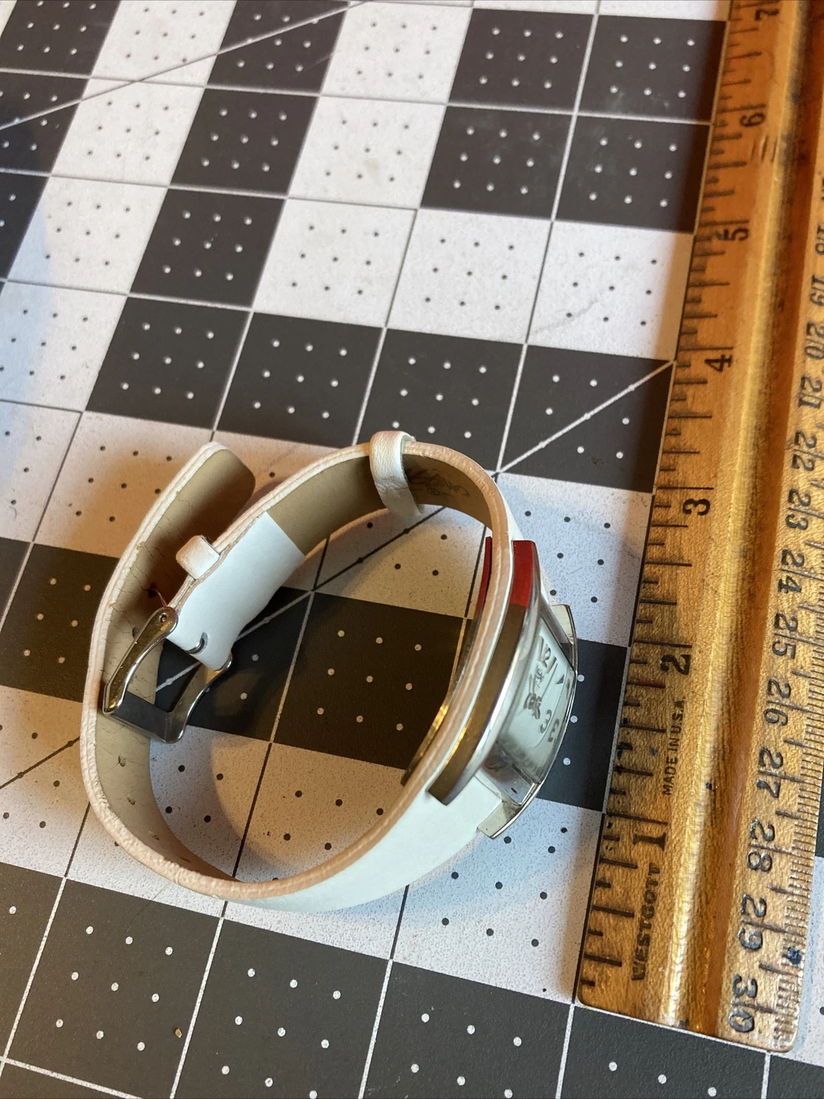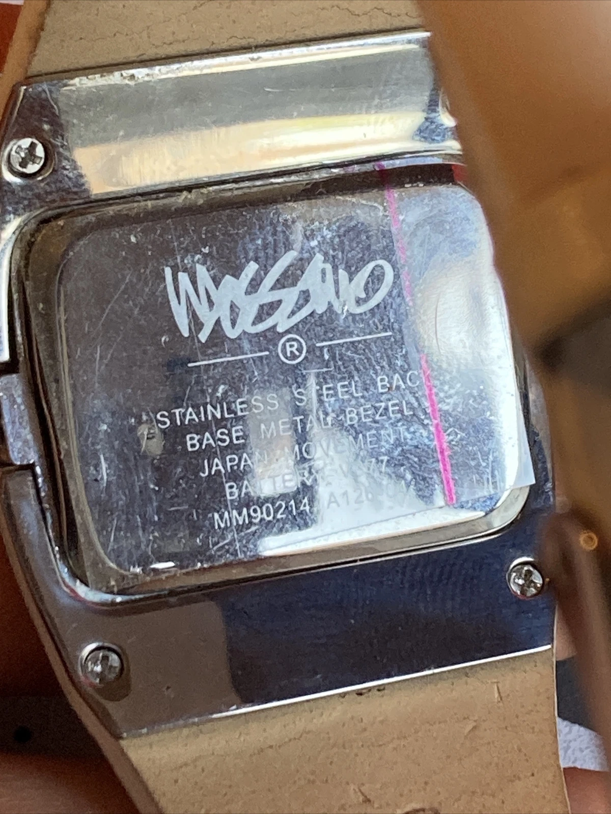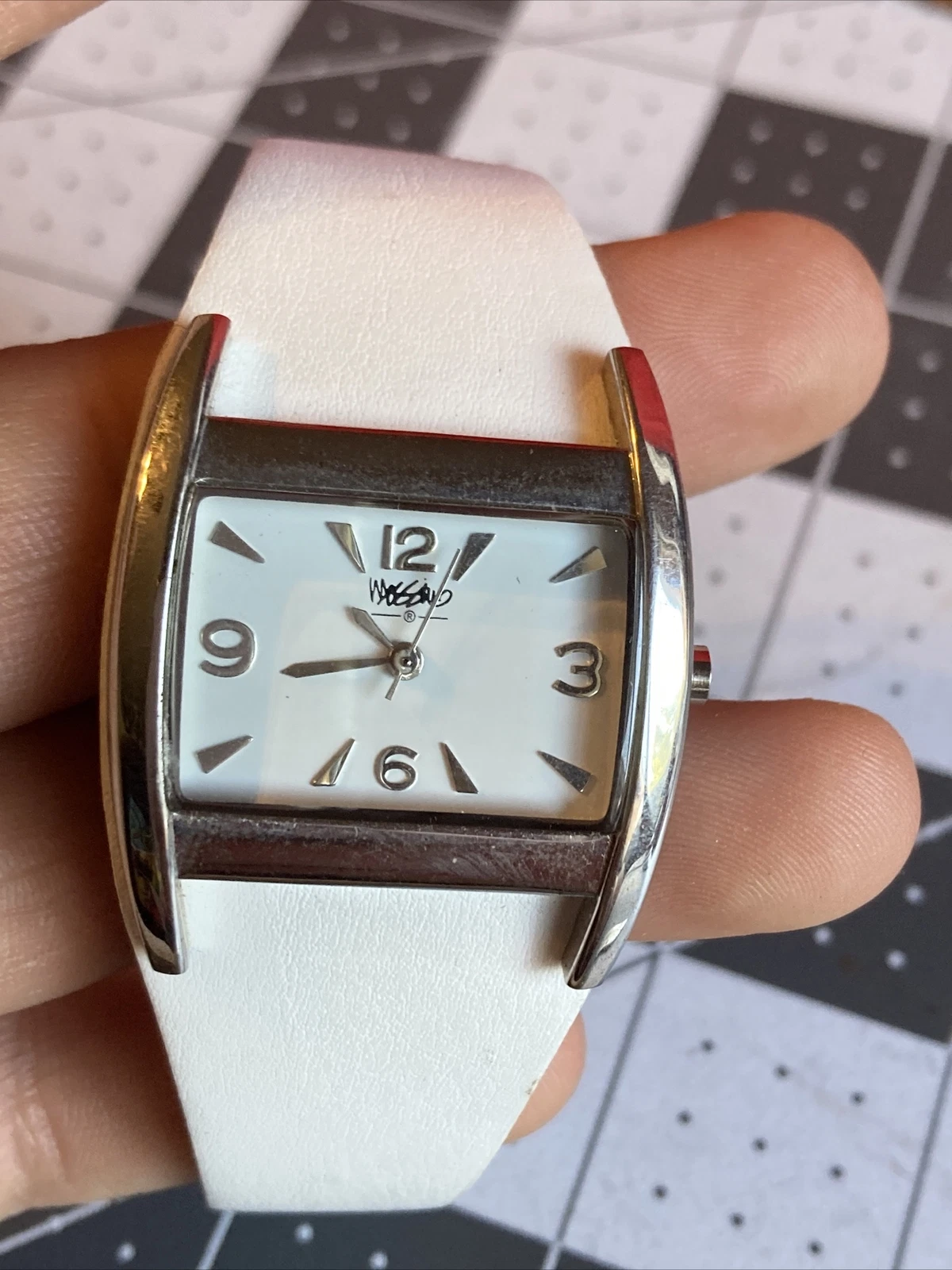 MOSSIMO Silvertone Case-Bezel/White Face/White Leather Band/Woman MM90214