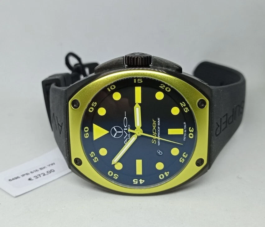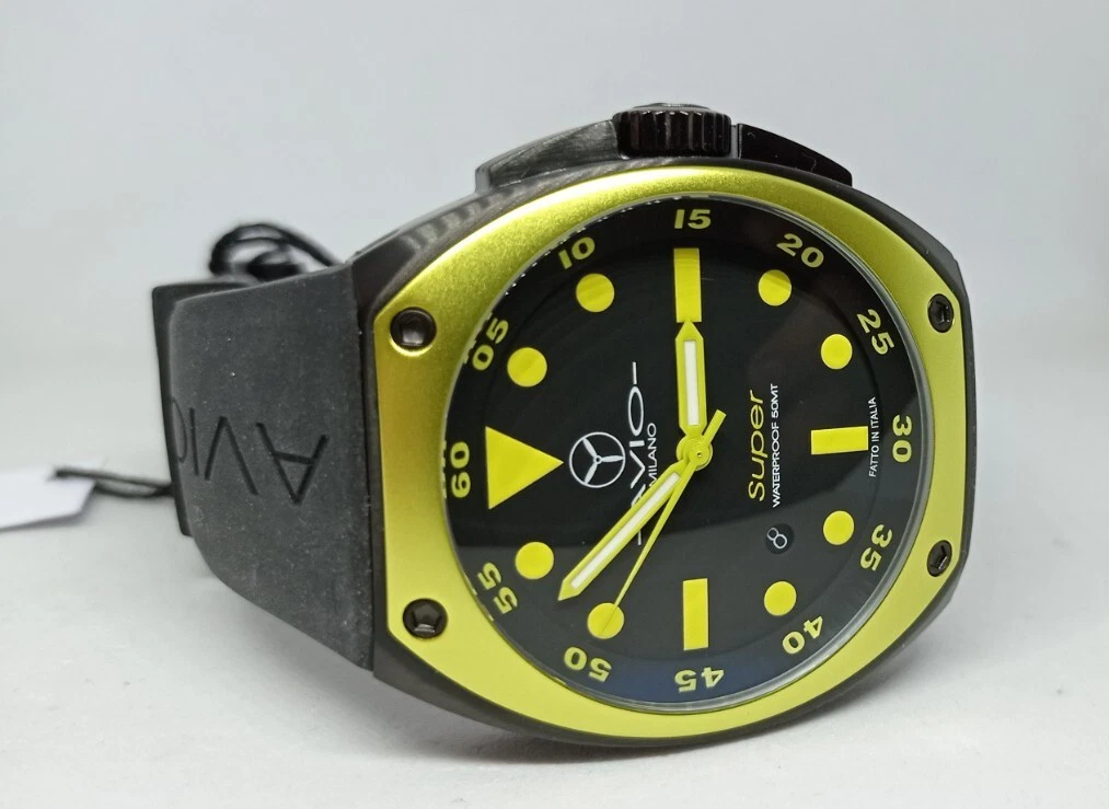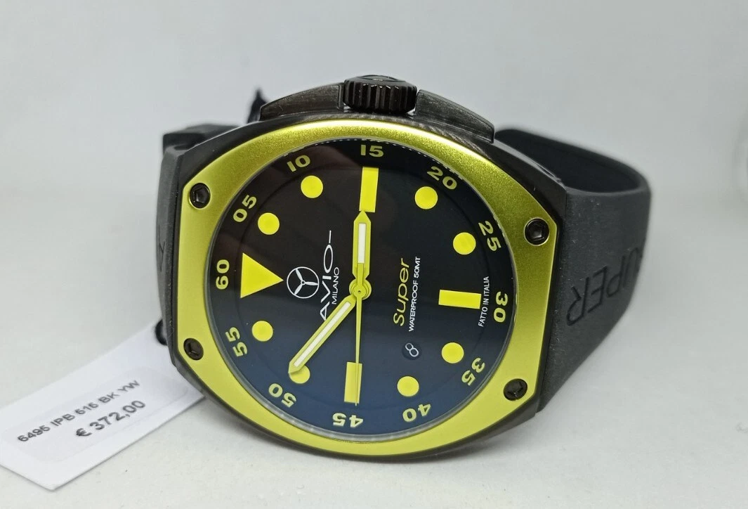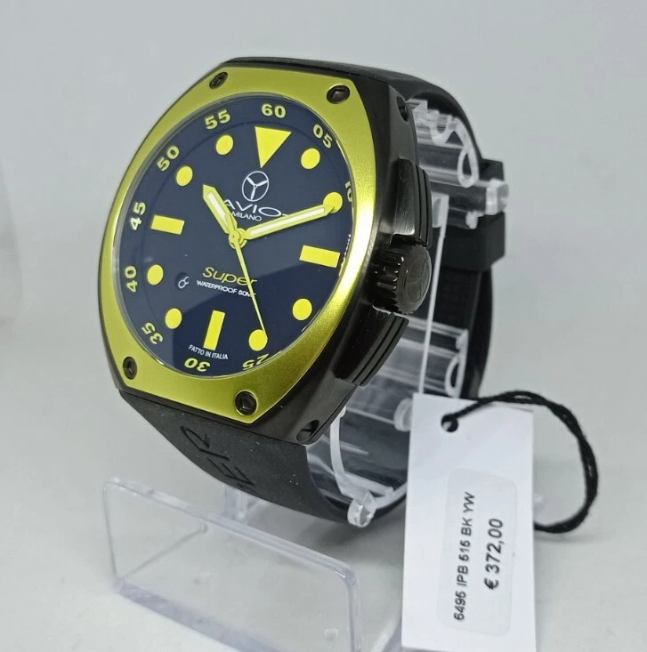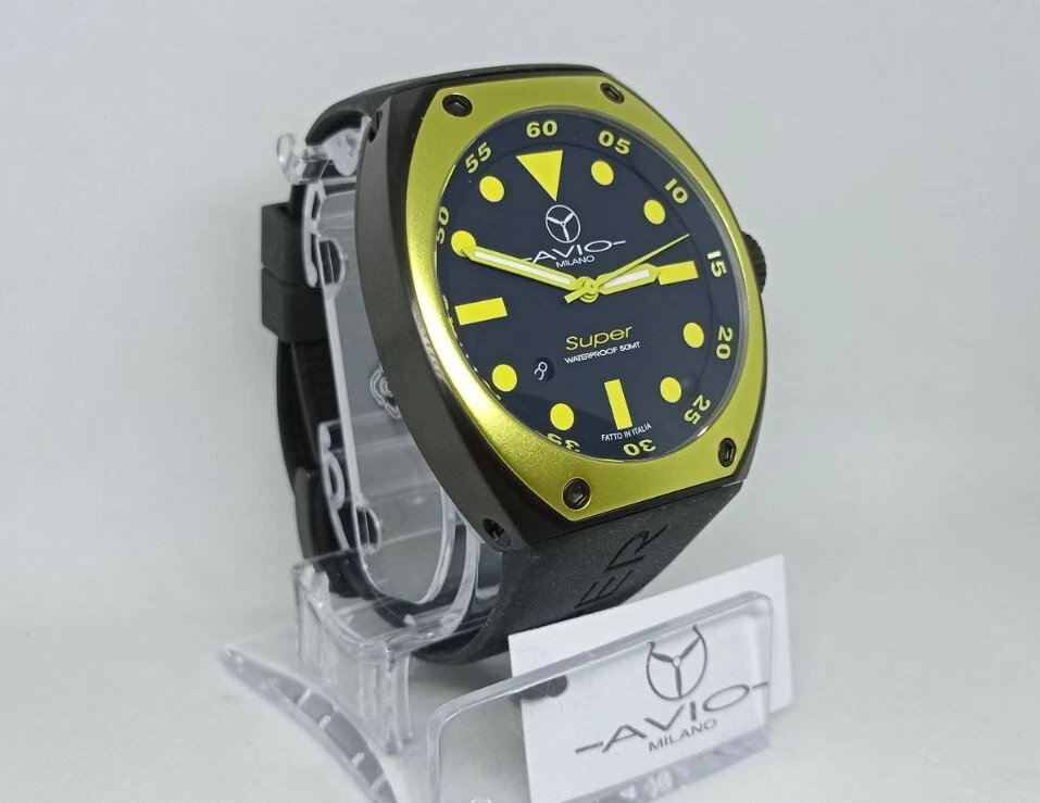 Men's Watch Super Avio Black And Yellow 46Mm Avio Milano Numbered Series