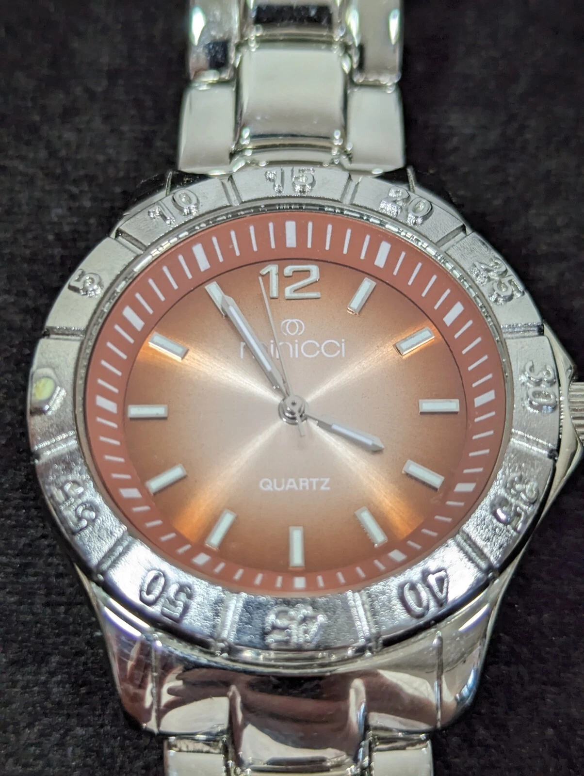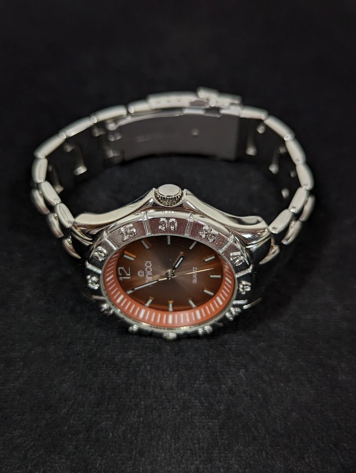 Minicci Mens Brown Dial Silver Tone Case Stainless Steel Link Band Watch 8 Inch