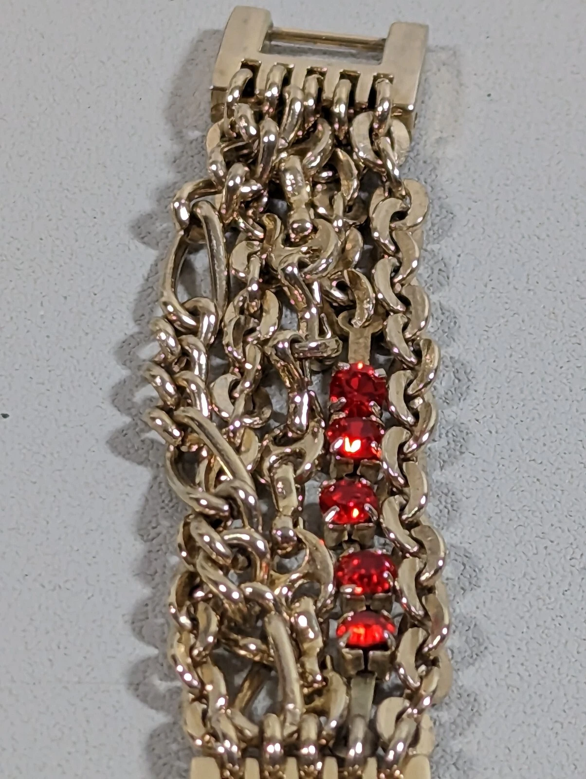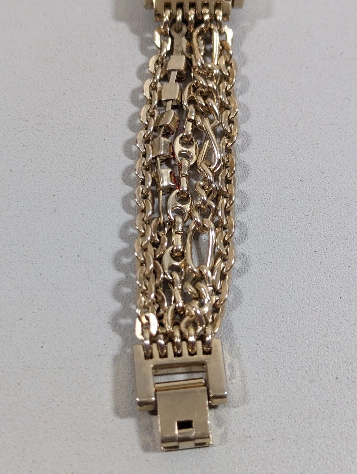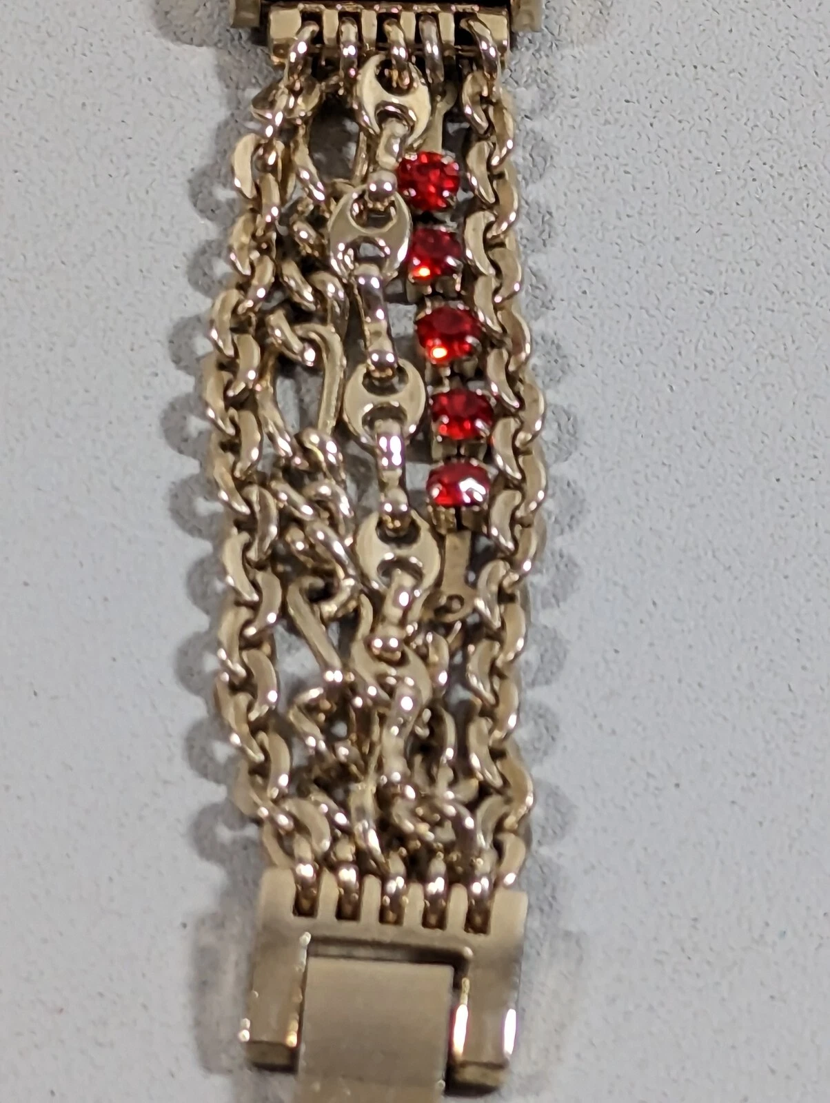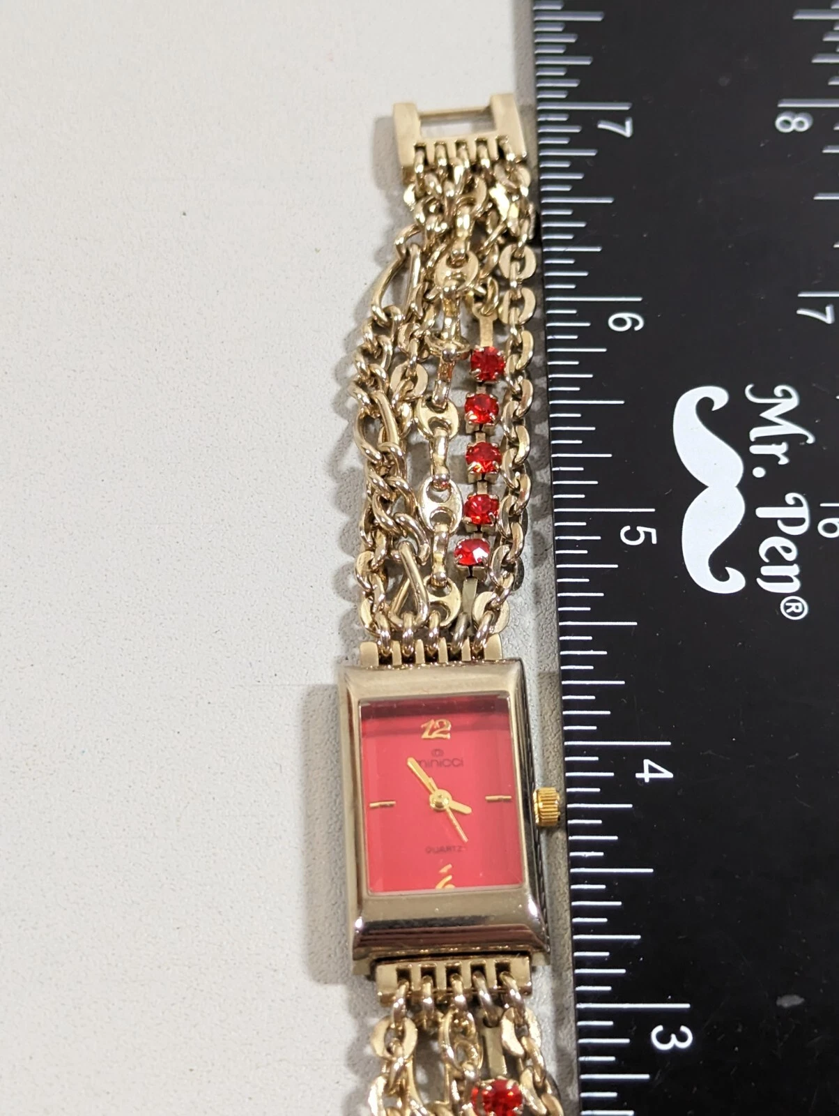 Minicci Red Dial Gold Tone Rectangle Case Red Crystal Accent Chain Band Watch
