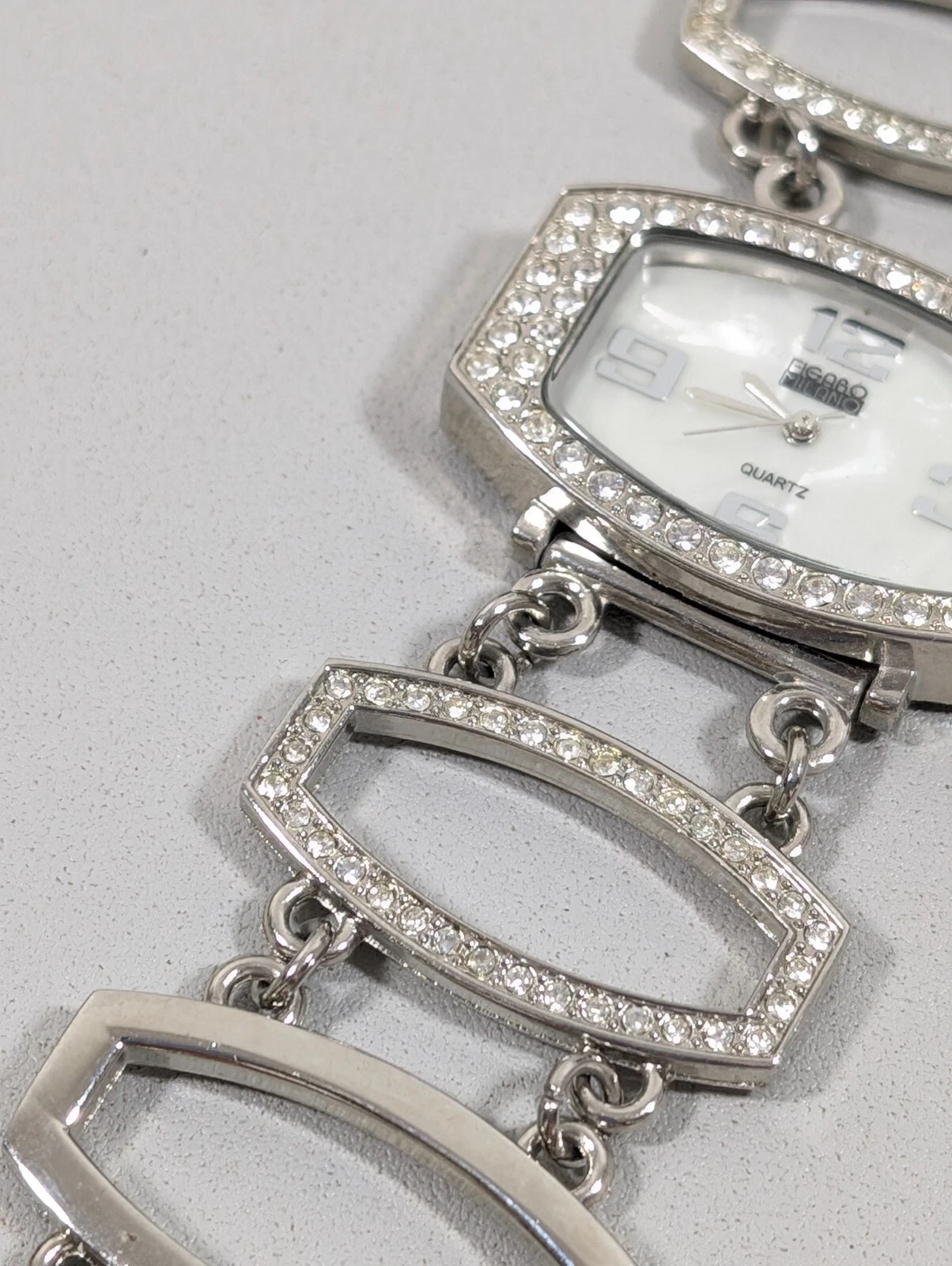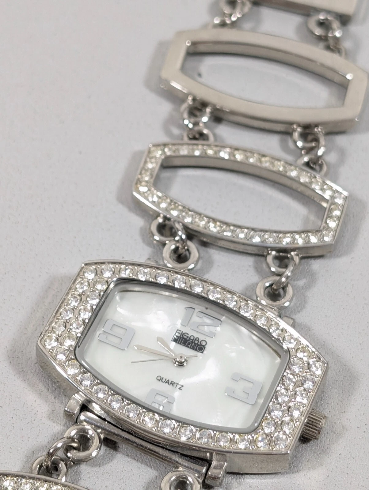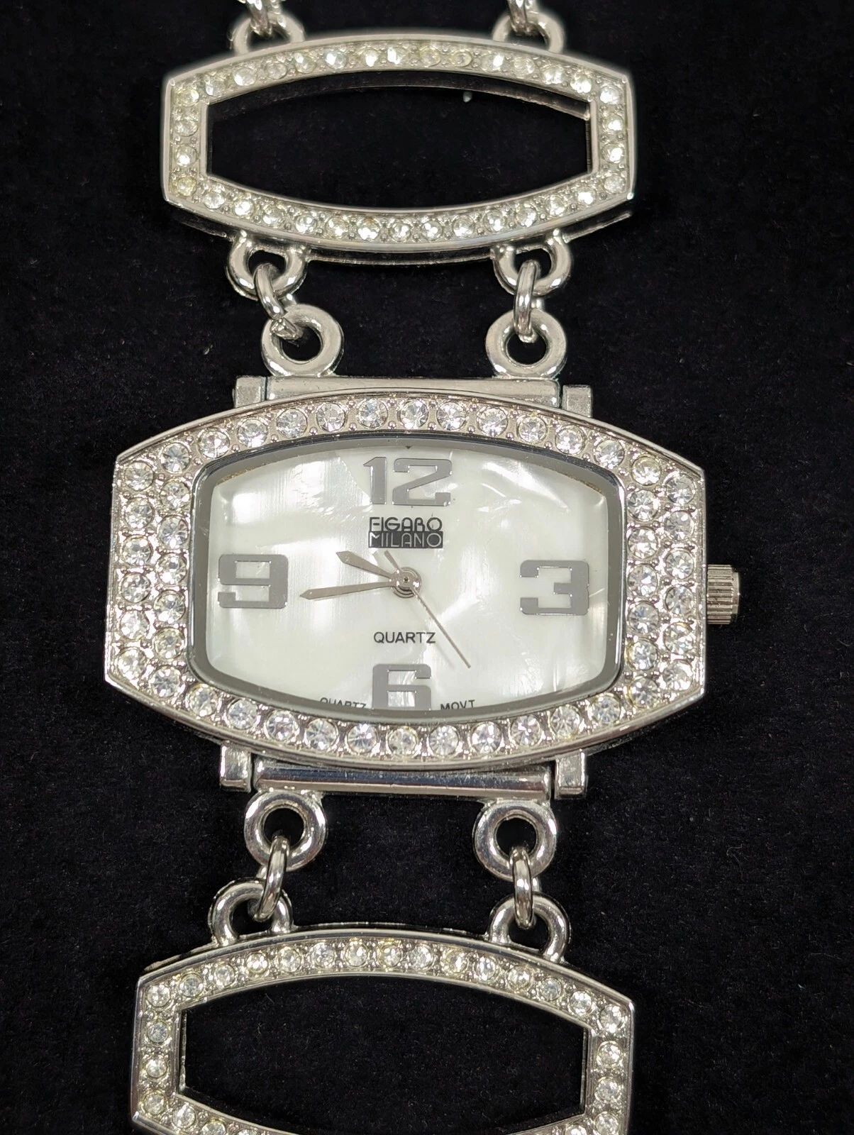 Figaro Milano Rhinestone Tennis Bracelet Watch Statement Bold Silver Tone 7 inch