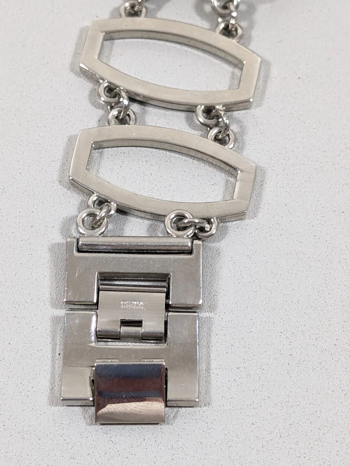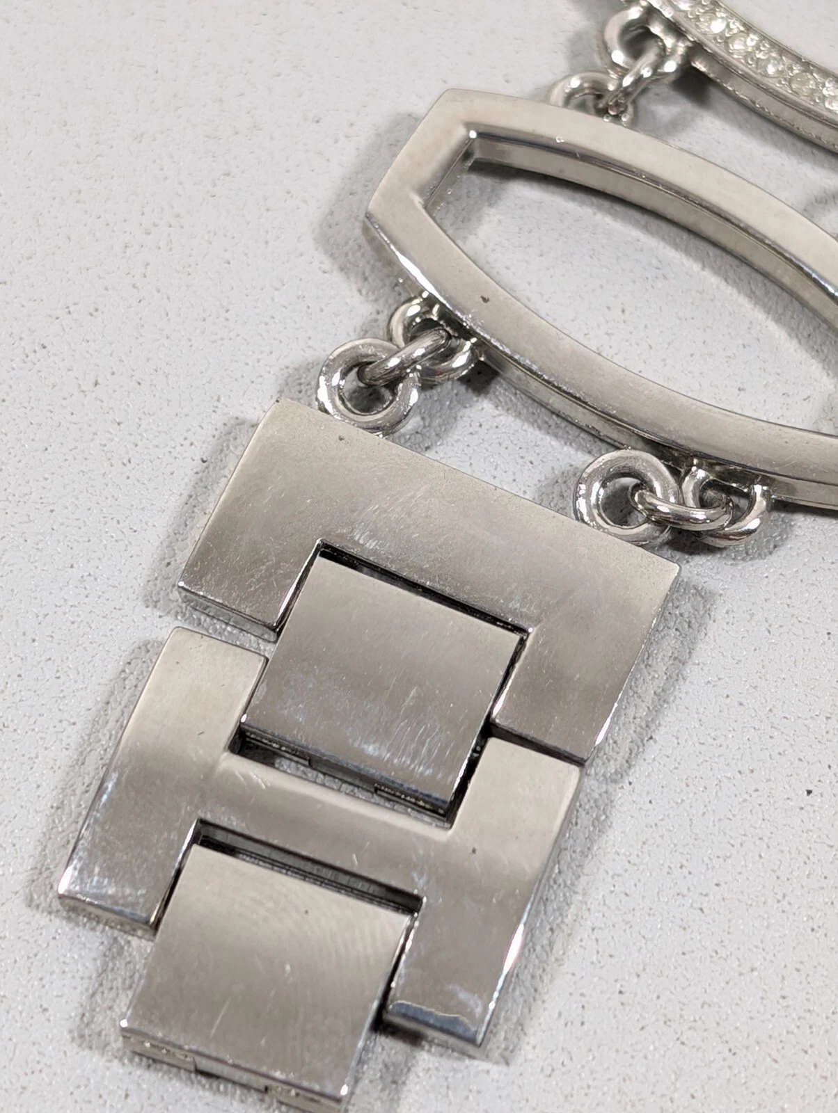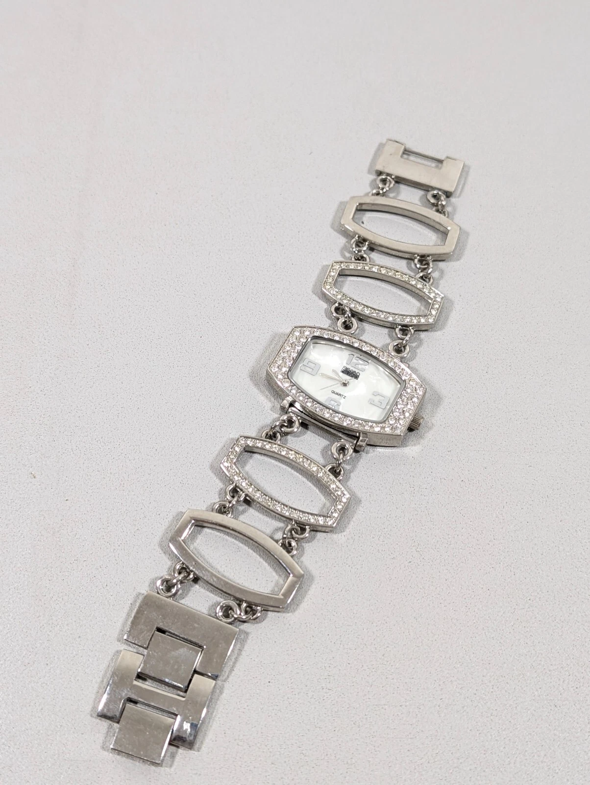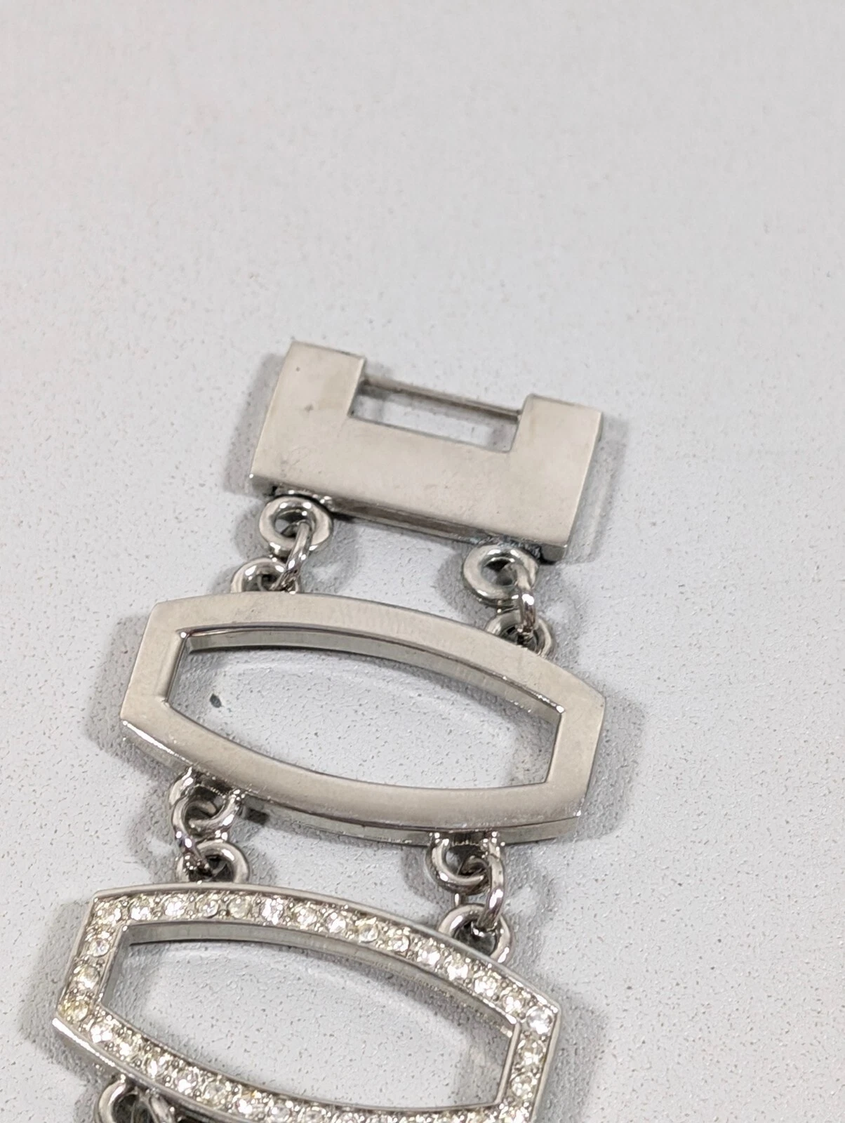 Figaro Milano Rhinestone Tennis Bracelet Watch Statement Bold Silver Tone 7 inch