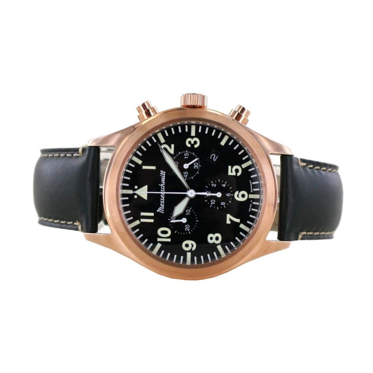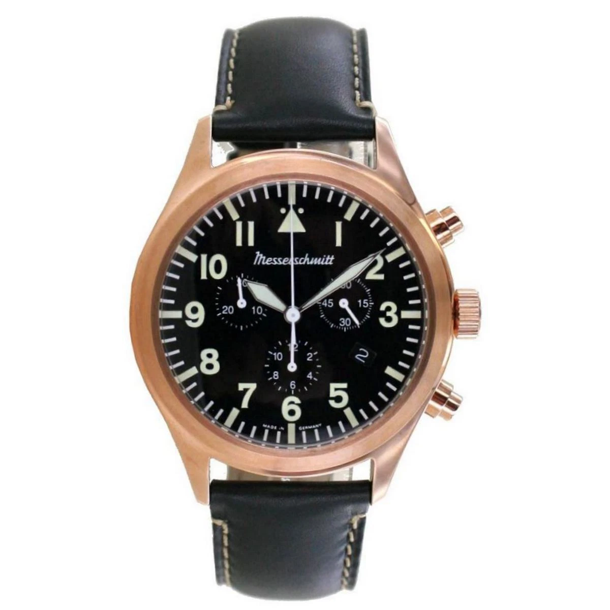 Aristo Men's Messerschmitt Watch Chronograph ME5030-44ROSE Leather Black