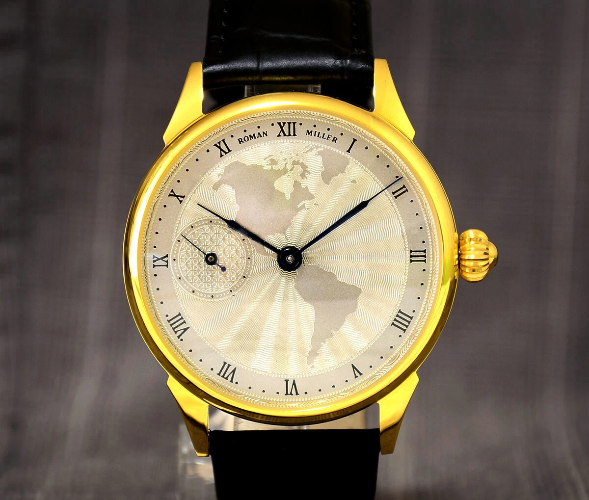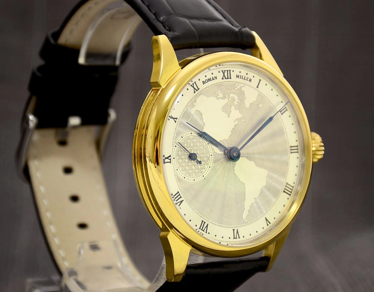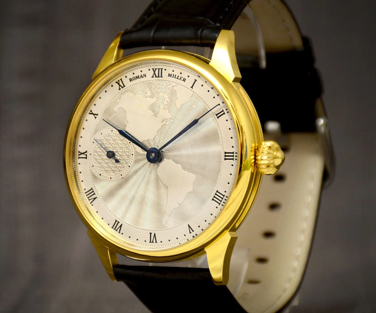 Gold wrist watch Vintage America Guilloche Dial Boyfriend Gift Leather Strap BOX