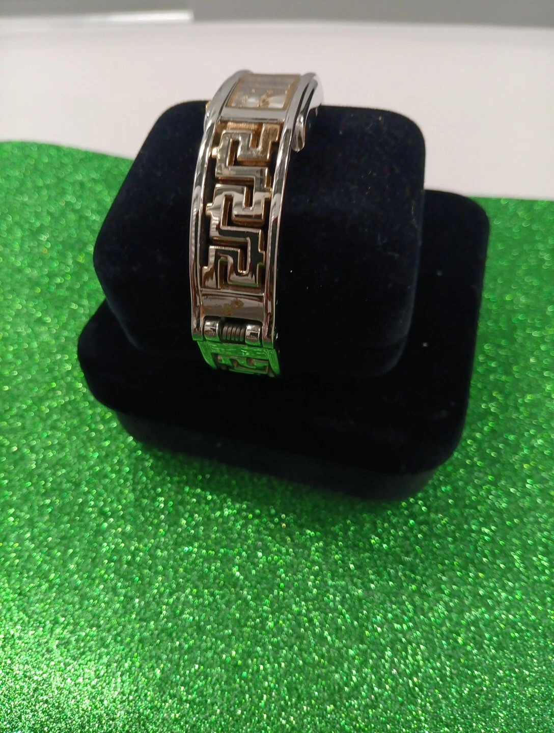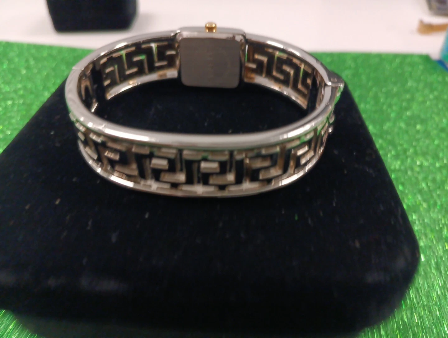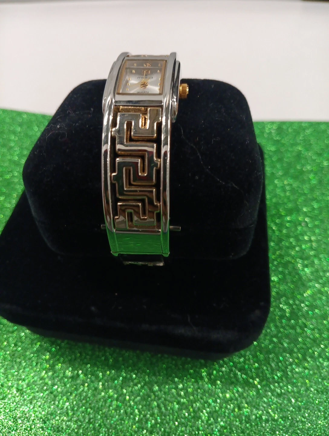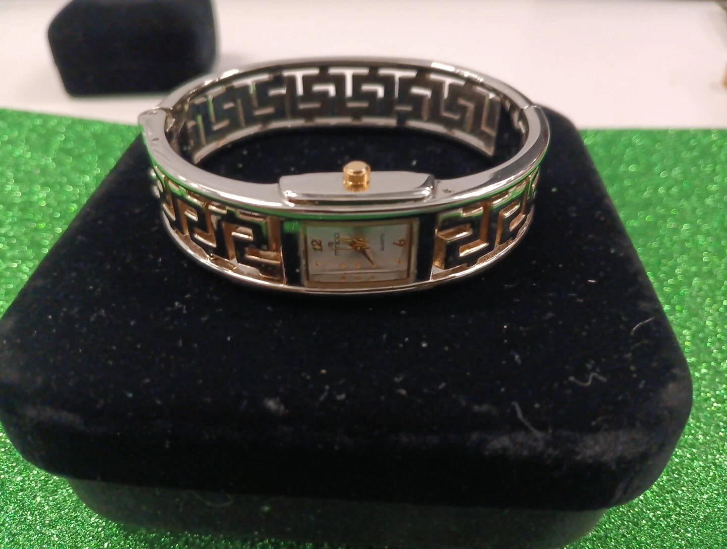 Minicci Silver Tone Rectangle Face Scribe Style Hinge Bracelet Band Watch 7 In