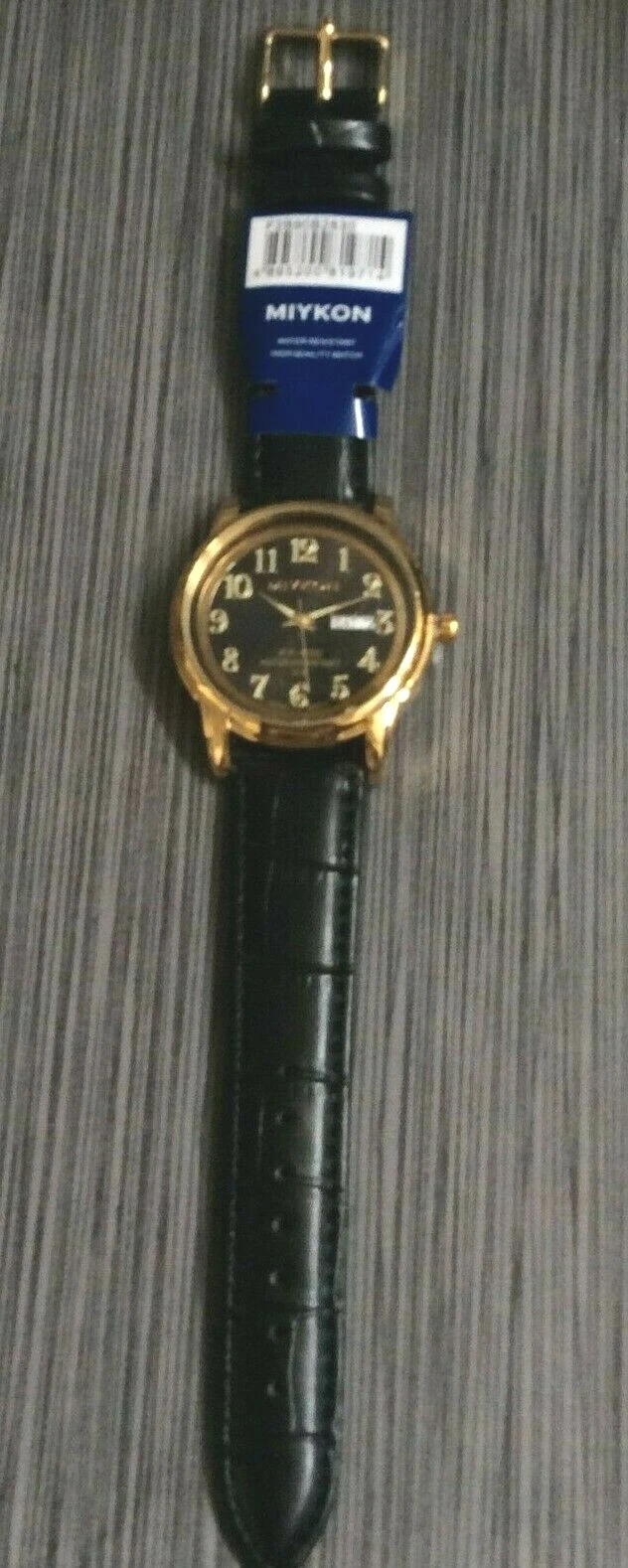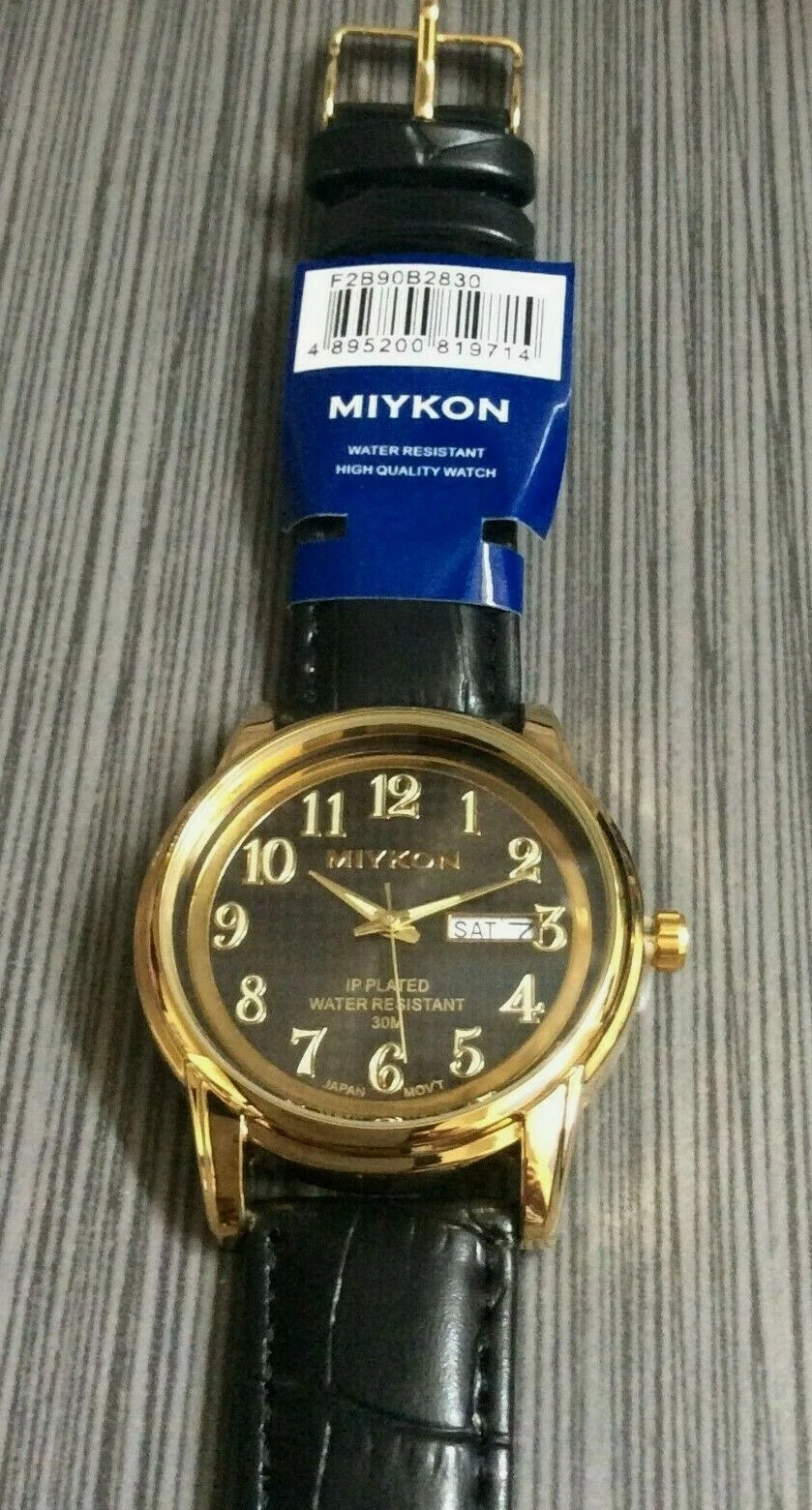Miykon Men's Watch Black Round Date Dial on a Black Leather Band Waterproof New!