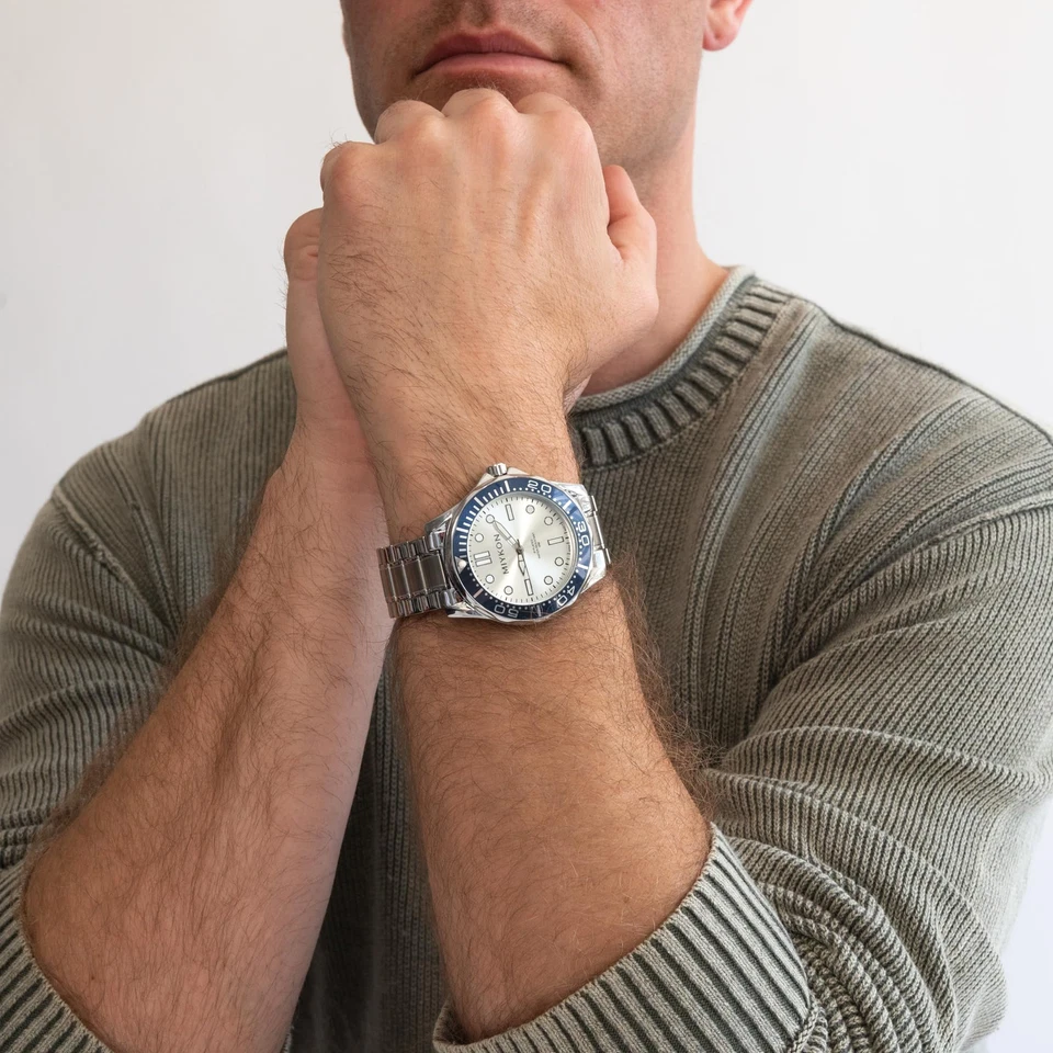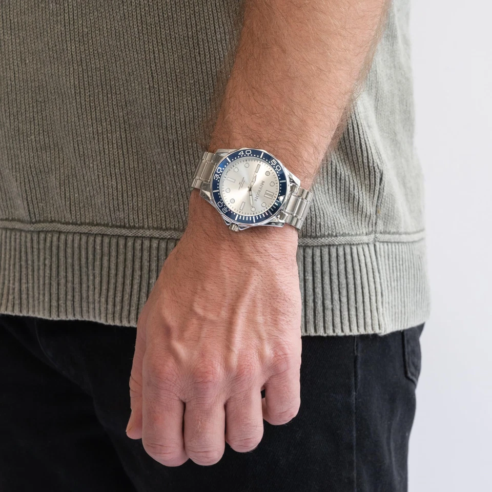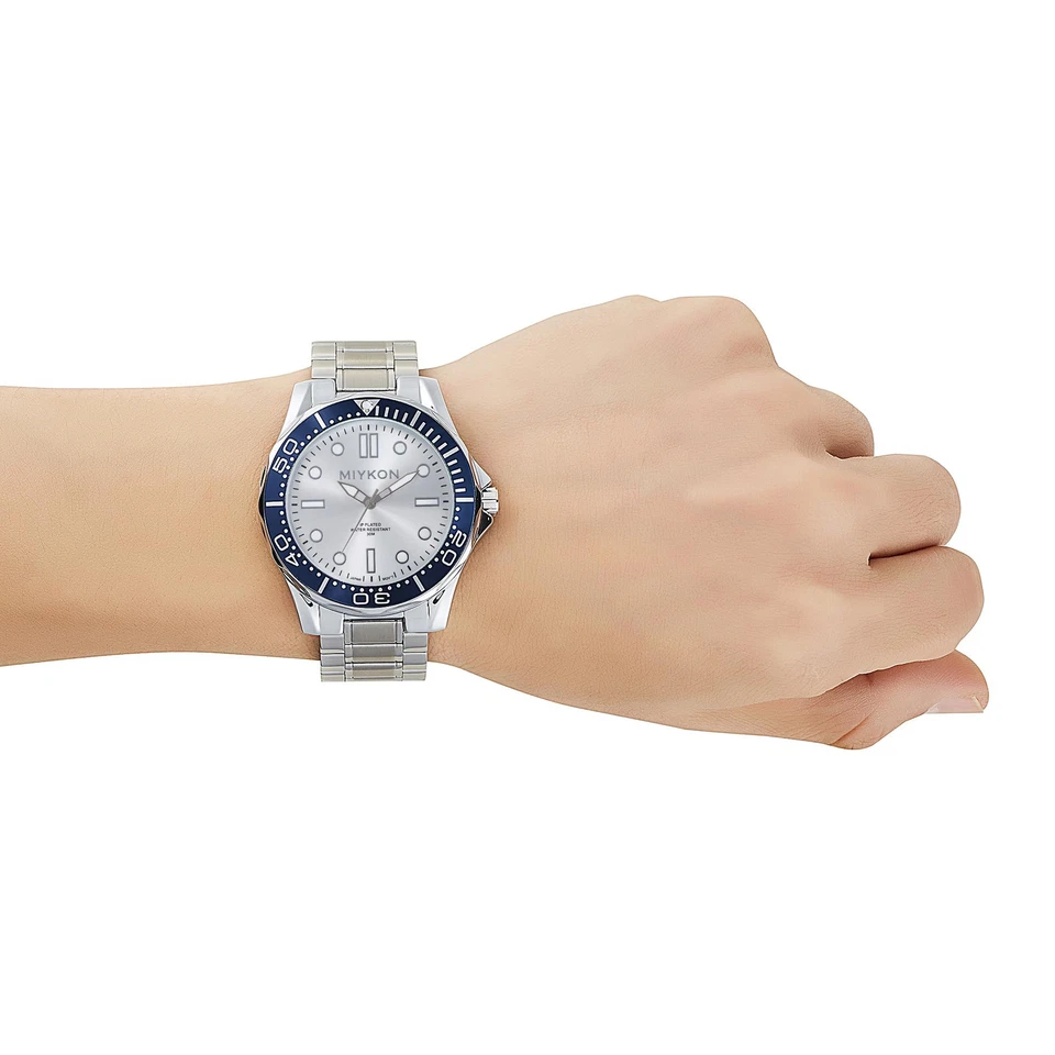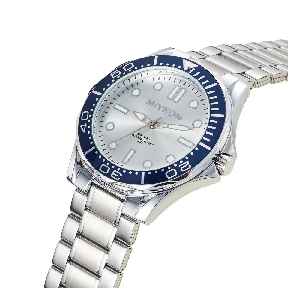Miykon Men's Watch Japanese Quartz Scratch Resistant, Silver Blue Silver, Superb