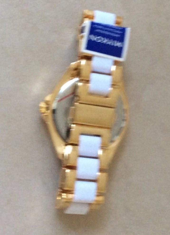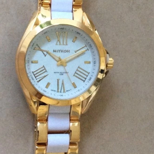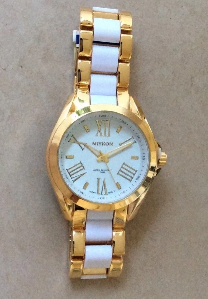 Miykon Women's Watch Round White Dial Roman Numerals Hours on Gold & White Band!