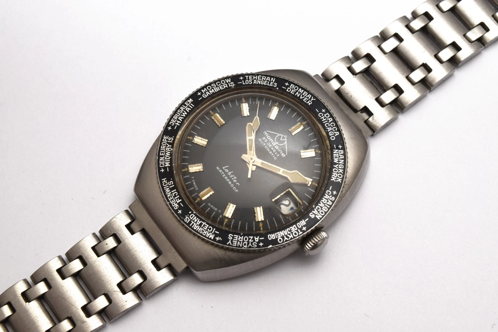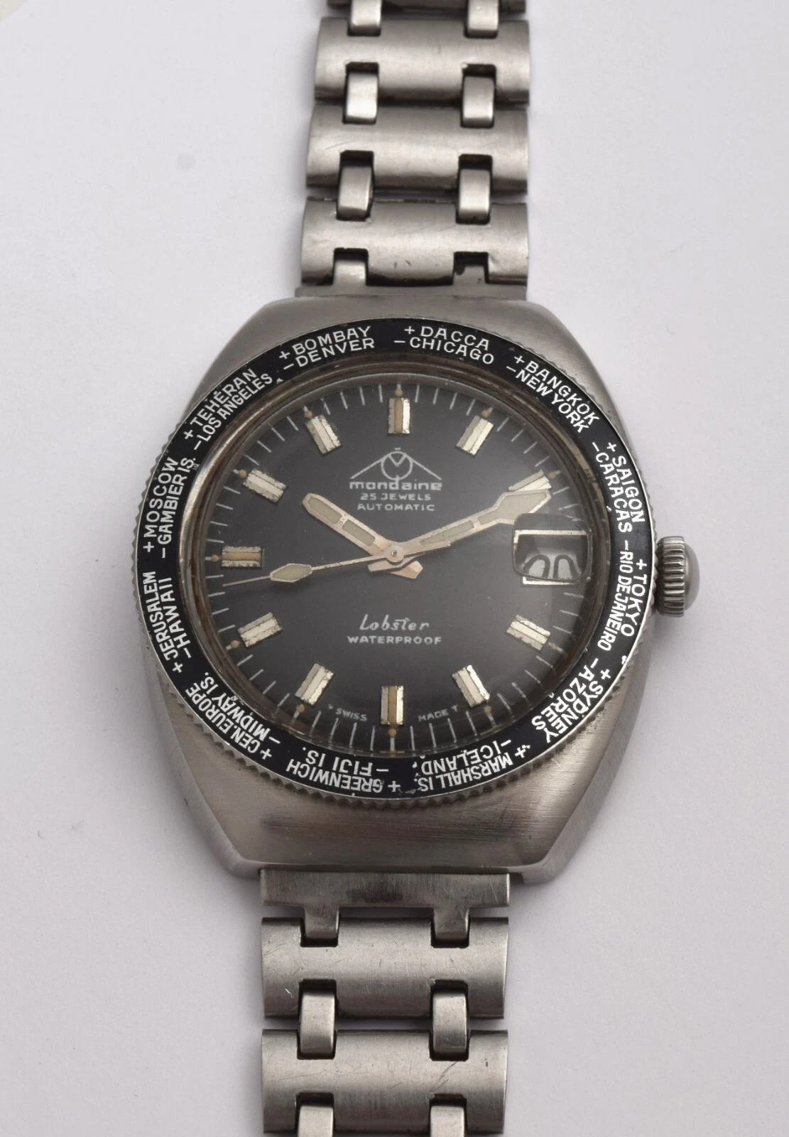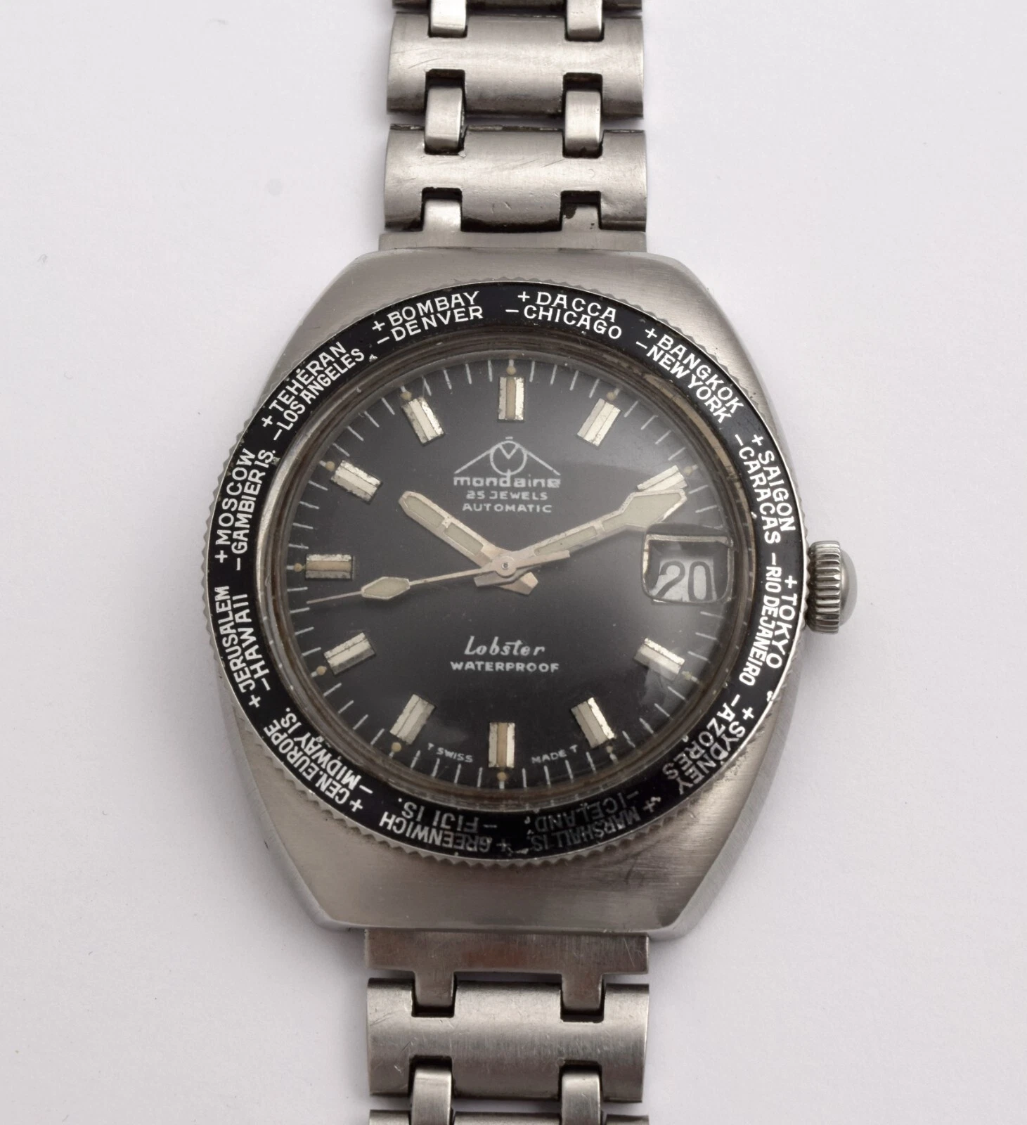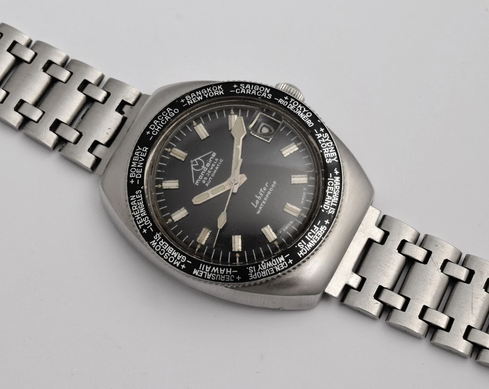 VINTAGE DIVER MONDAINE LOBSTER AUTOMATIC CALENDAR 25 JEWELS MADE IN SWISS
