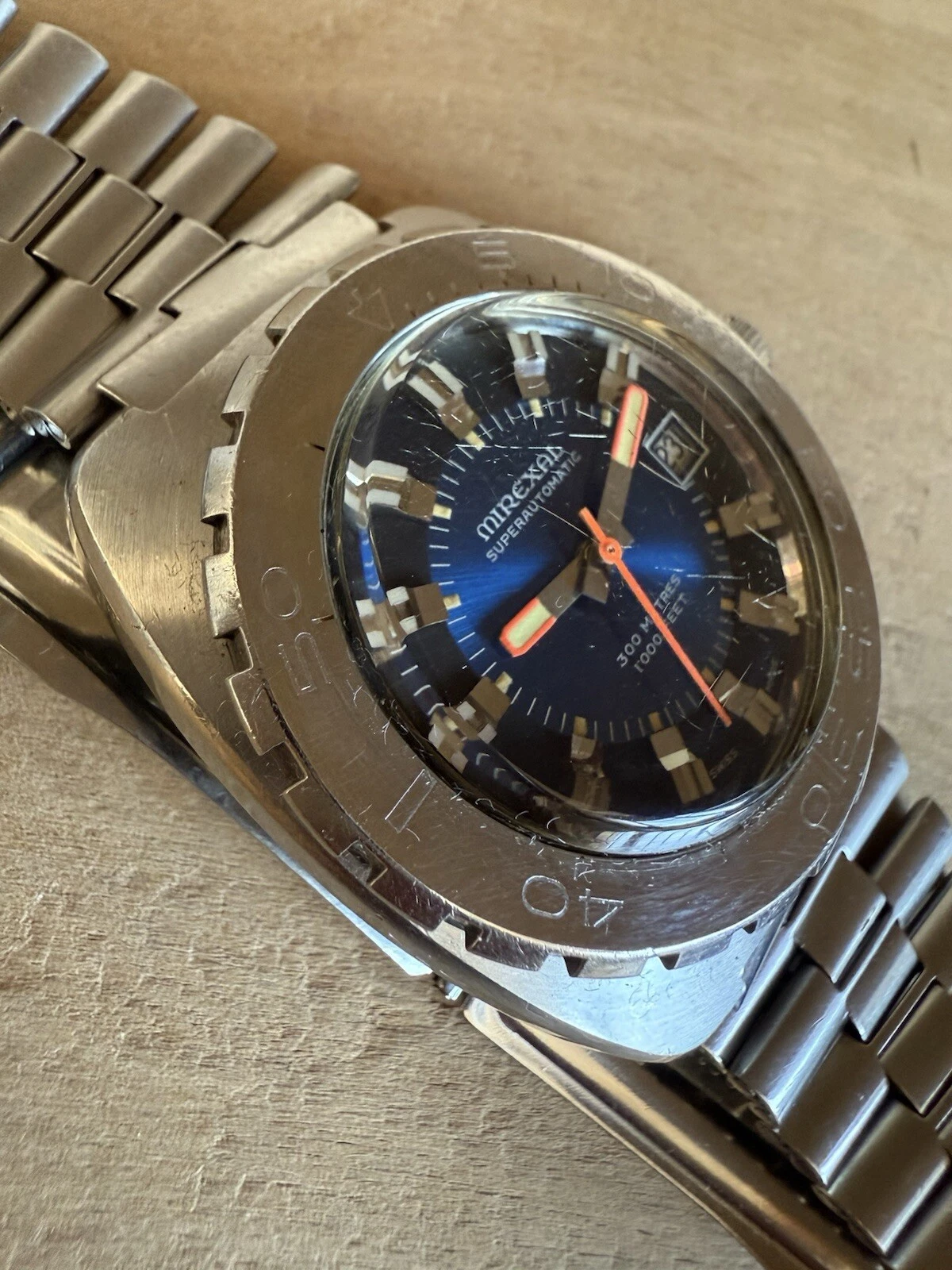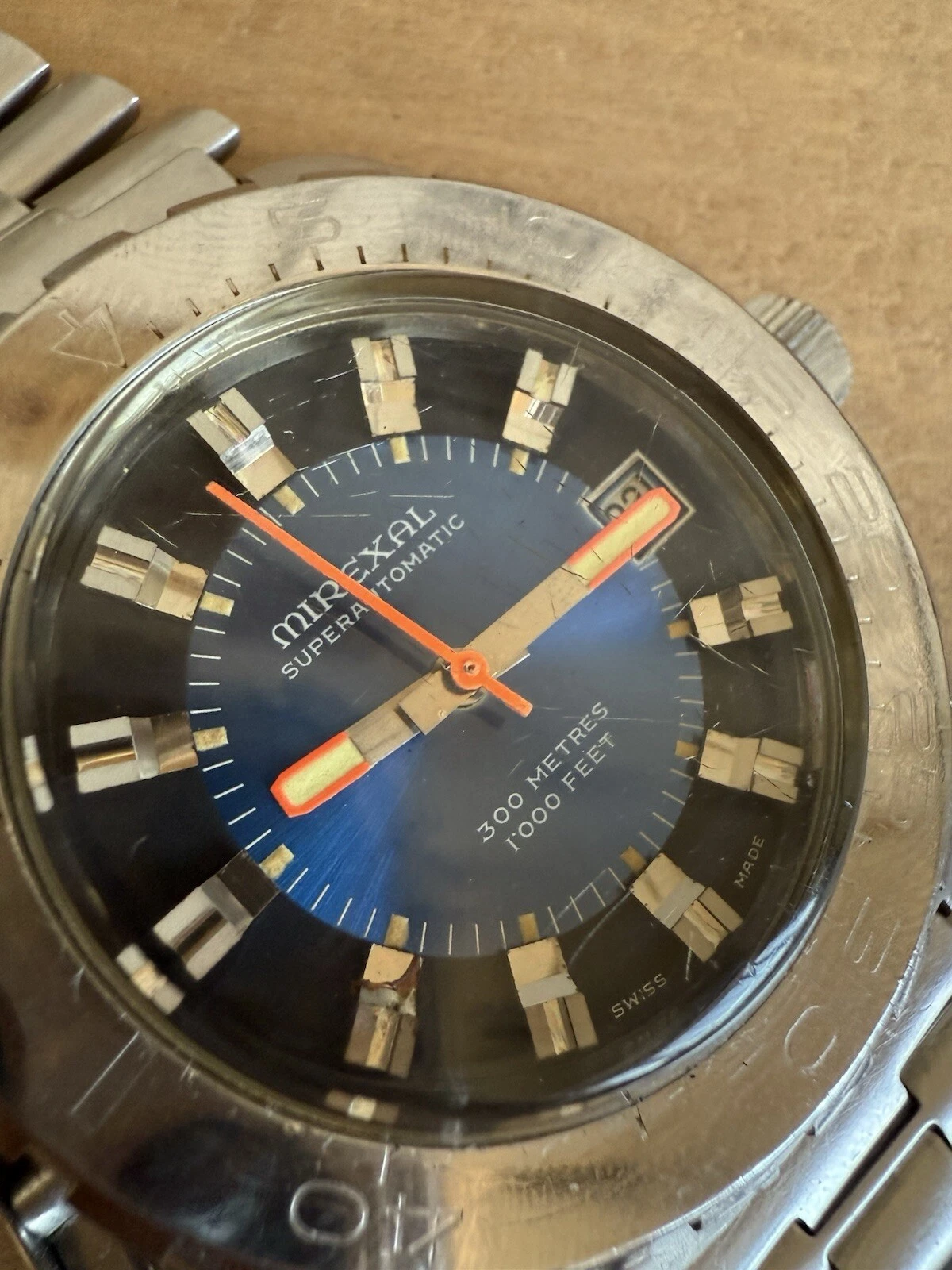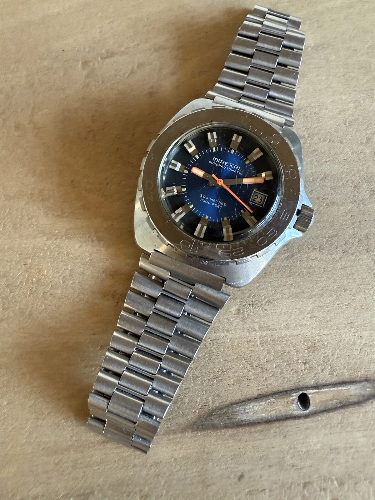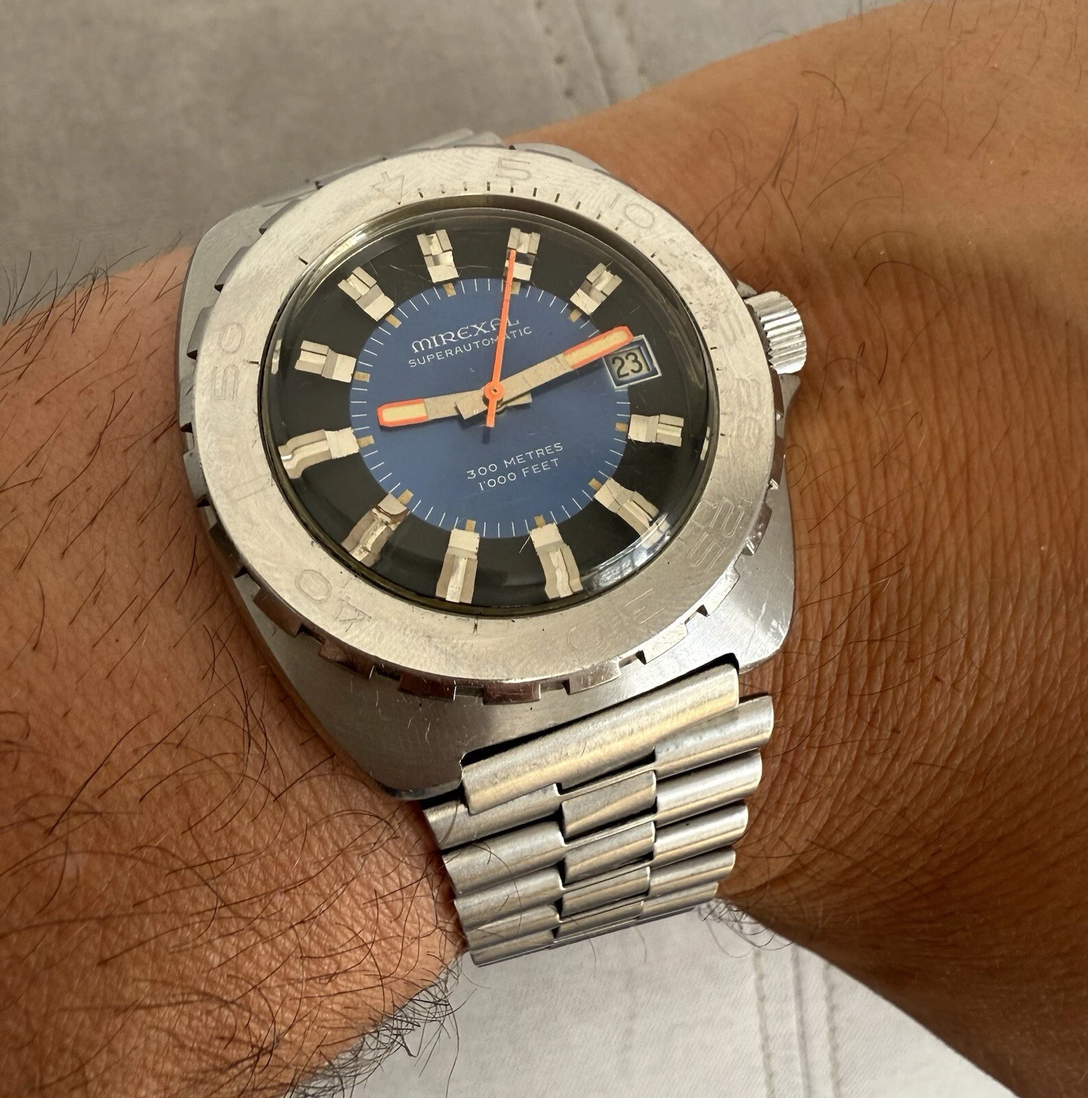 Vintage Mirexal Superautomatic 300 Meters 1000 Feets Diver S.steel Watch Blue