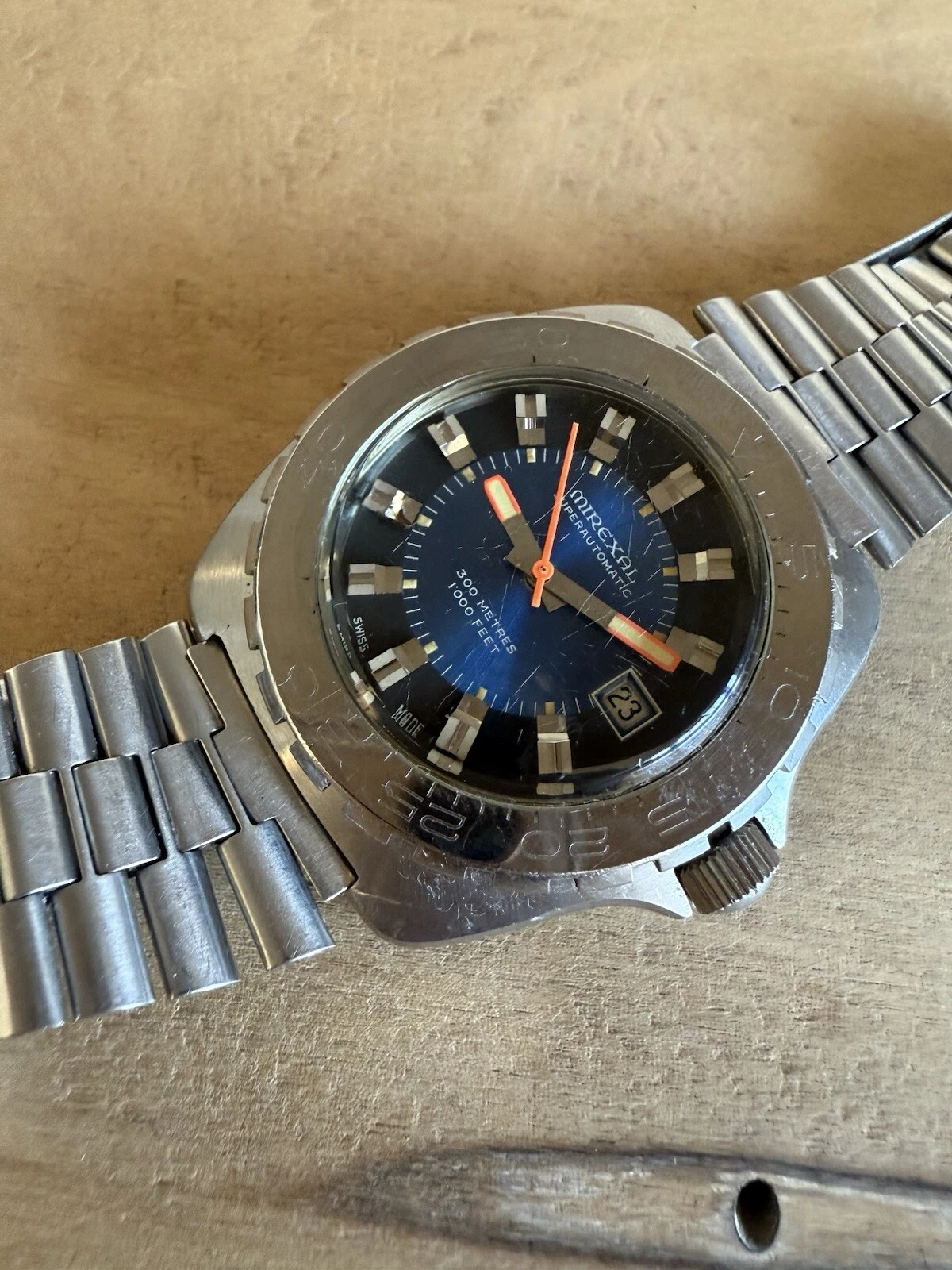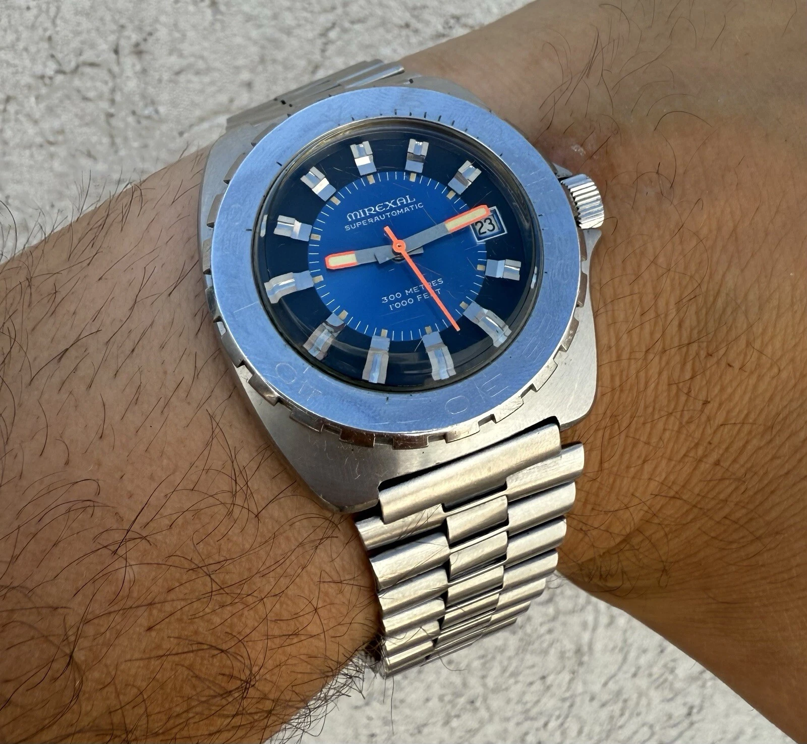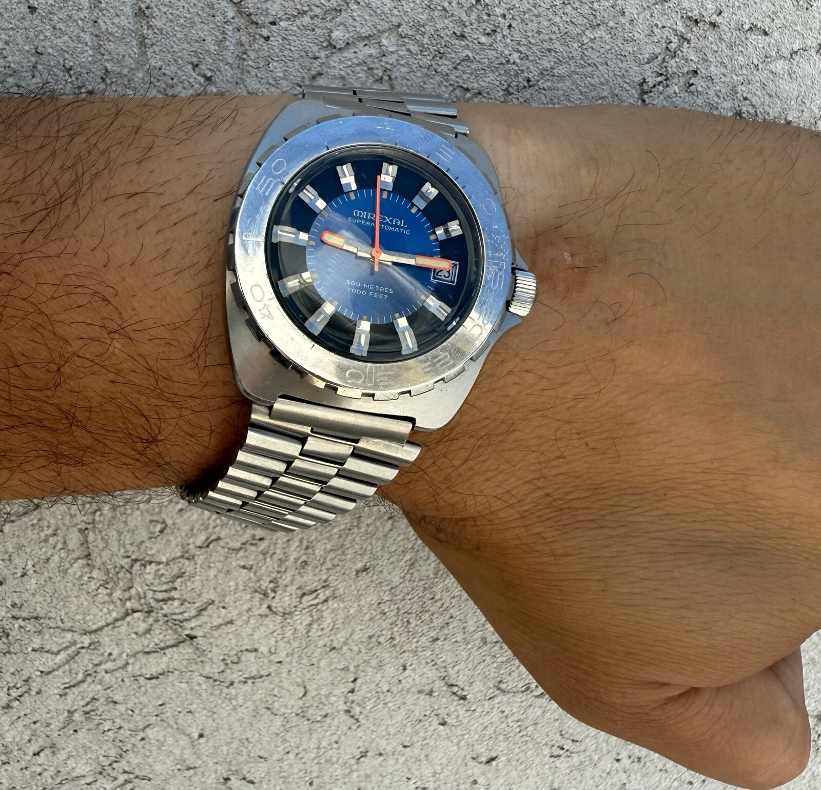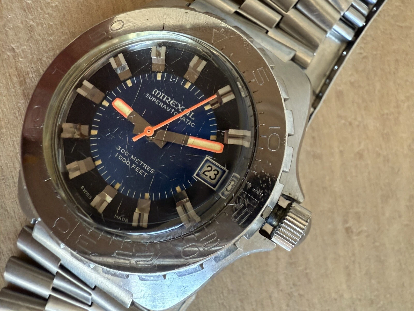 Vintage Mirexal Superautomatic 300 Meters 1000 Feets Diver S.steel Watch Blue