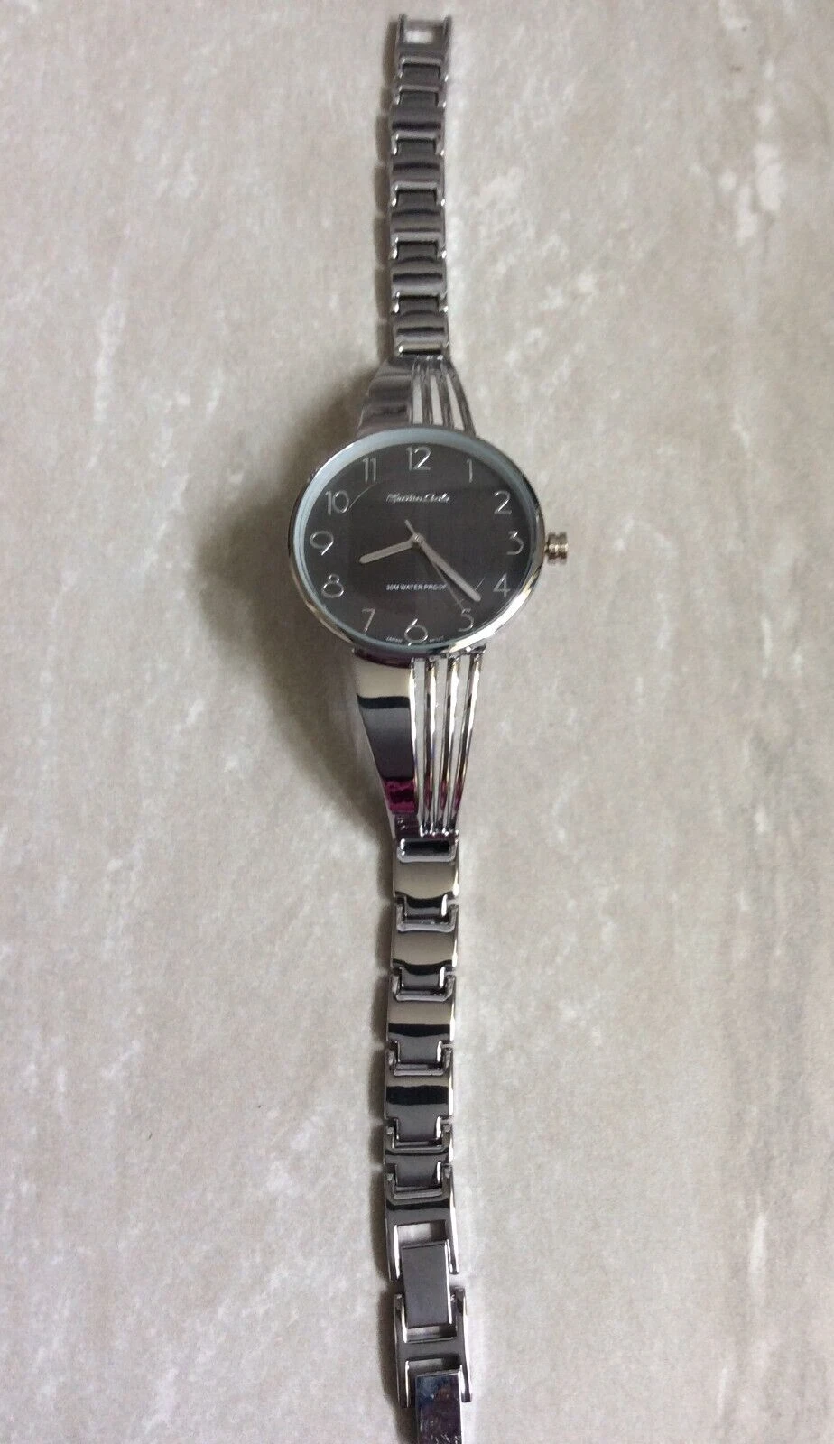 Montres Carlo Women Watch Silver WP 3ATM IP Round Black Dial on Silver Band NIB