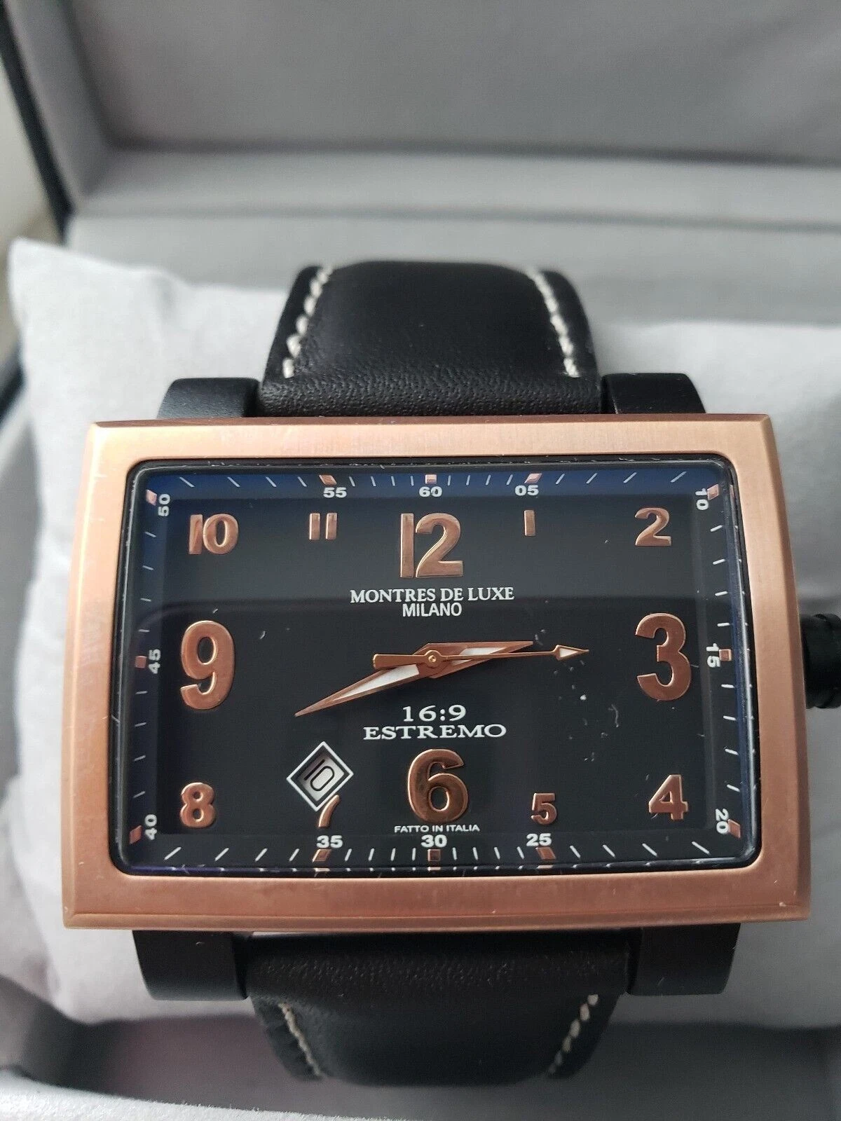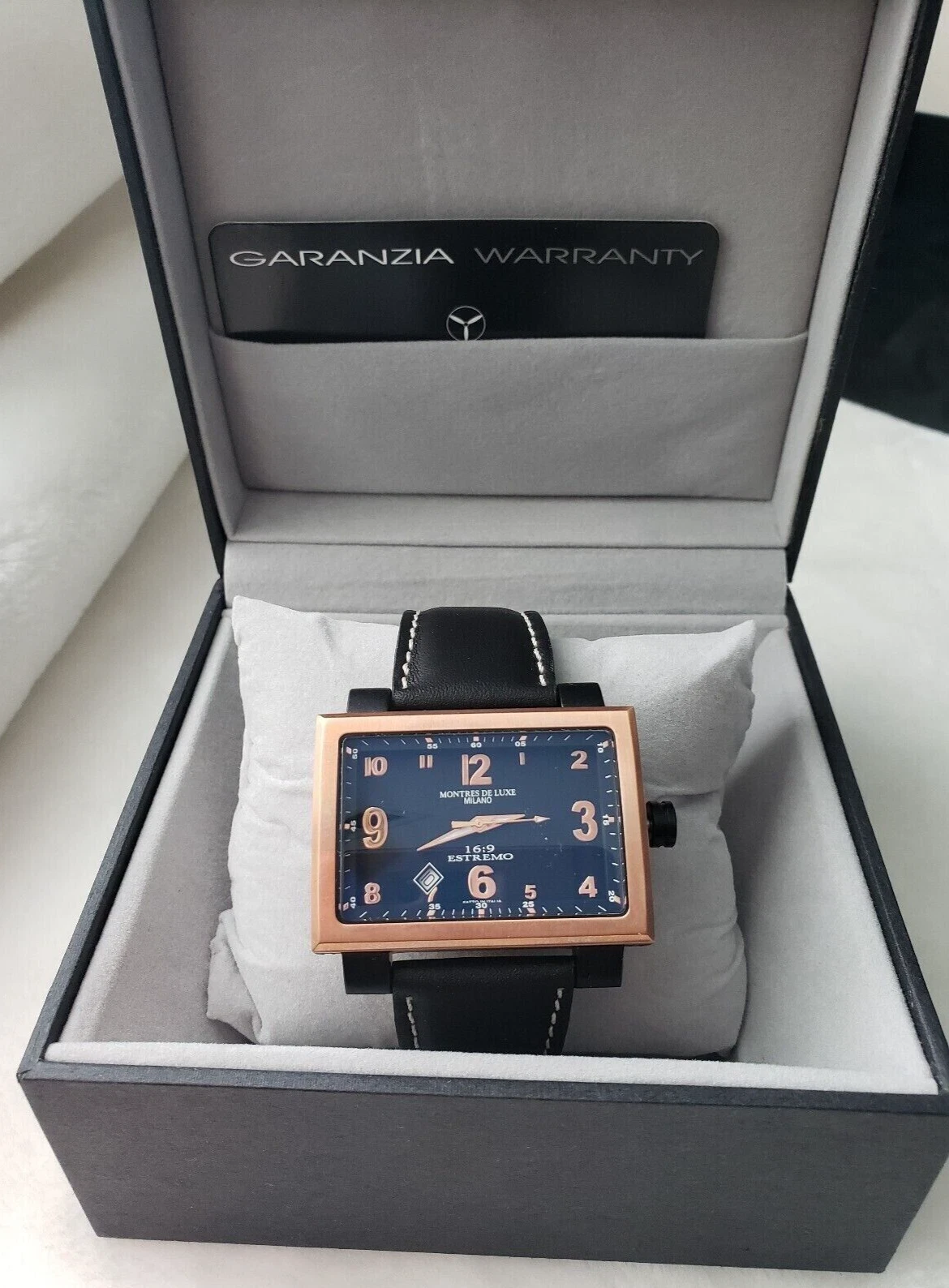 Montres De Luxe 16:9 estremo Black Rose Gold Quartz Dial Watch NEW in  Box