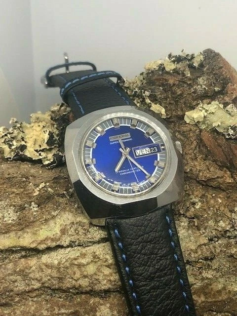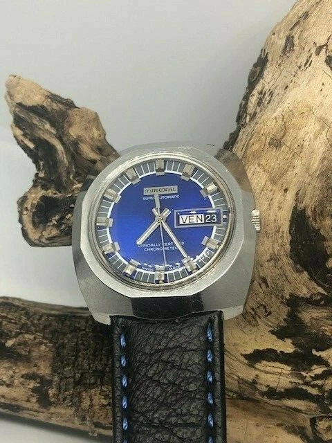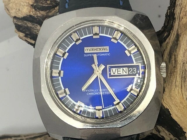 MIREXAL WATCH OFFICIALLY CERTIFIED CHRONOMETER BRIGHT BLUE DIAL LEATHER BAND