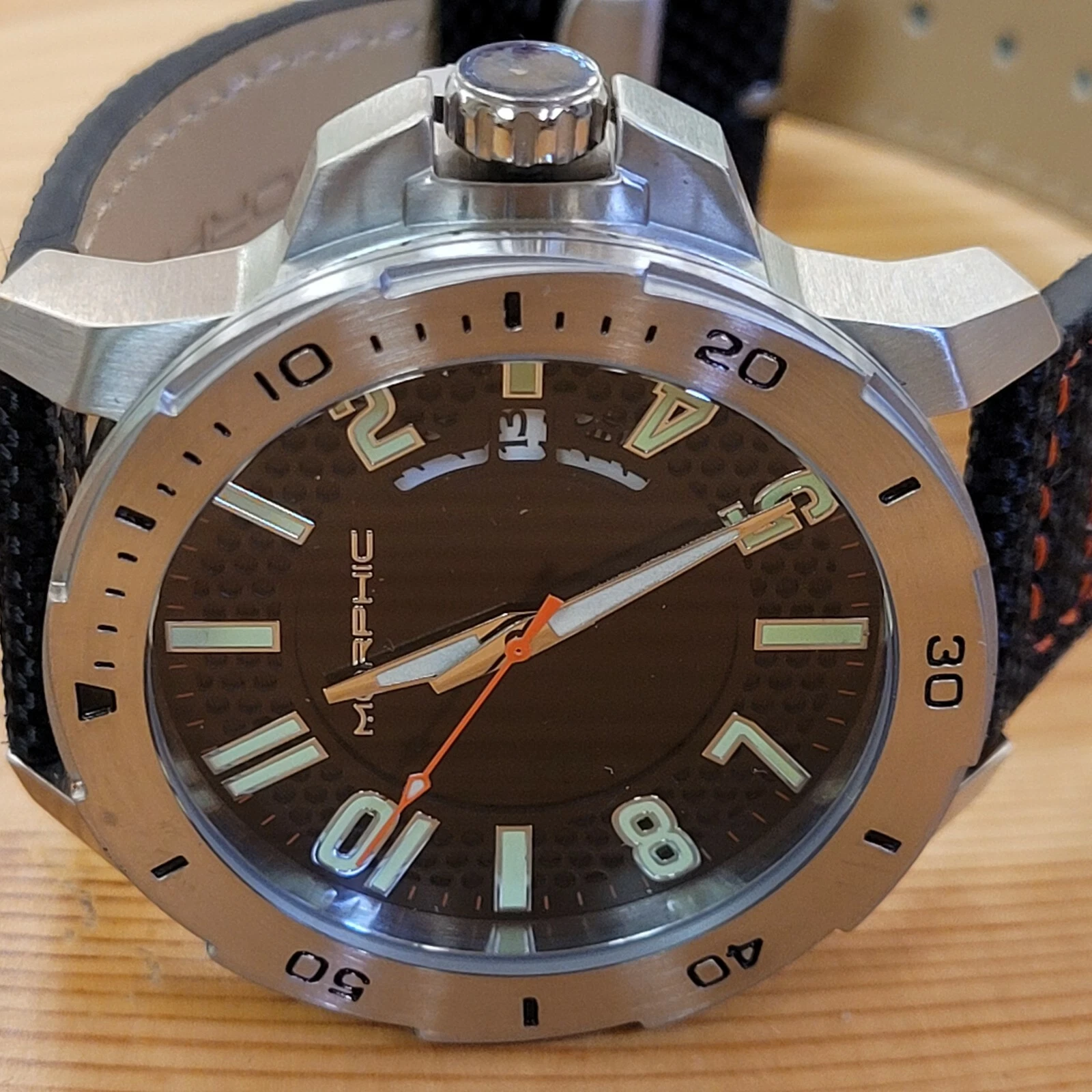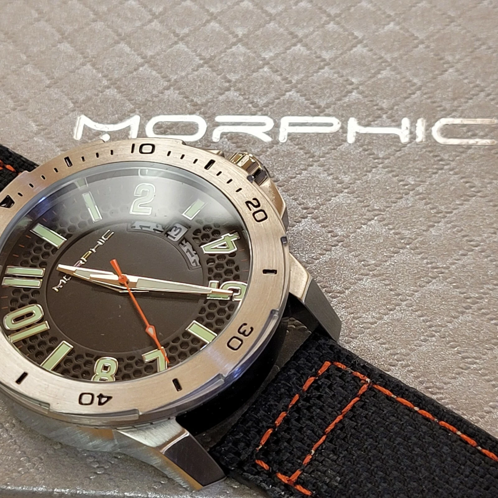 Morphic M70 Series Canvas Overlaid Leather Band Watch with Date - MSRP $480