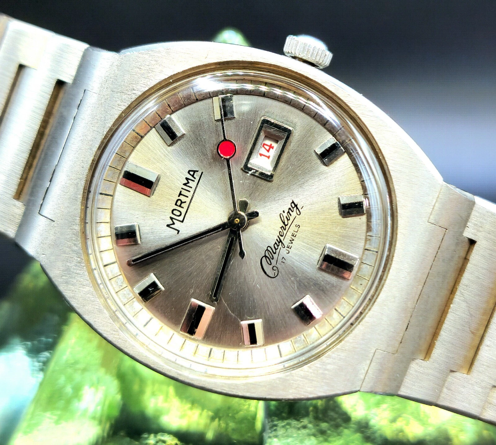 Vintage MORTIMA "Mayerling" 17 Jewels Date French Men's Watch W/ Superb Design !