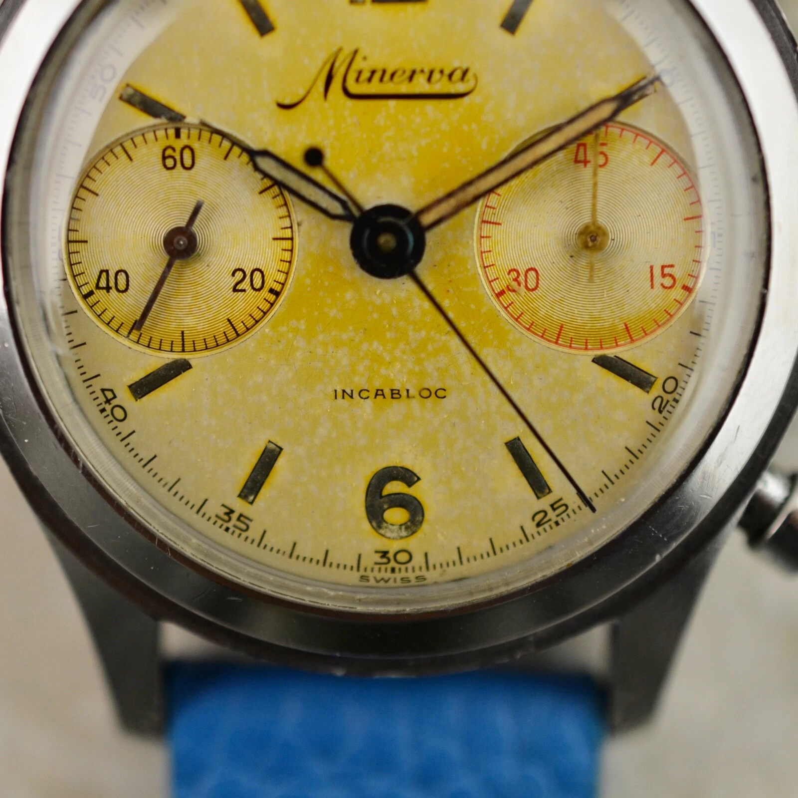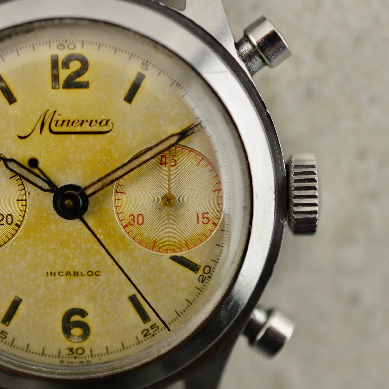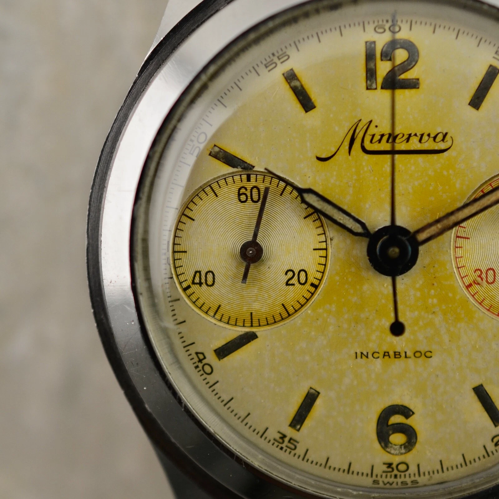 C.1940 Vintage Minerva WaterProof Chronograph ref. 1335 cal. 13-20CH steel watch