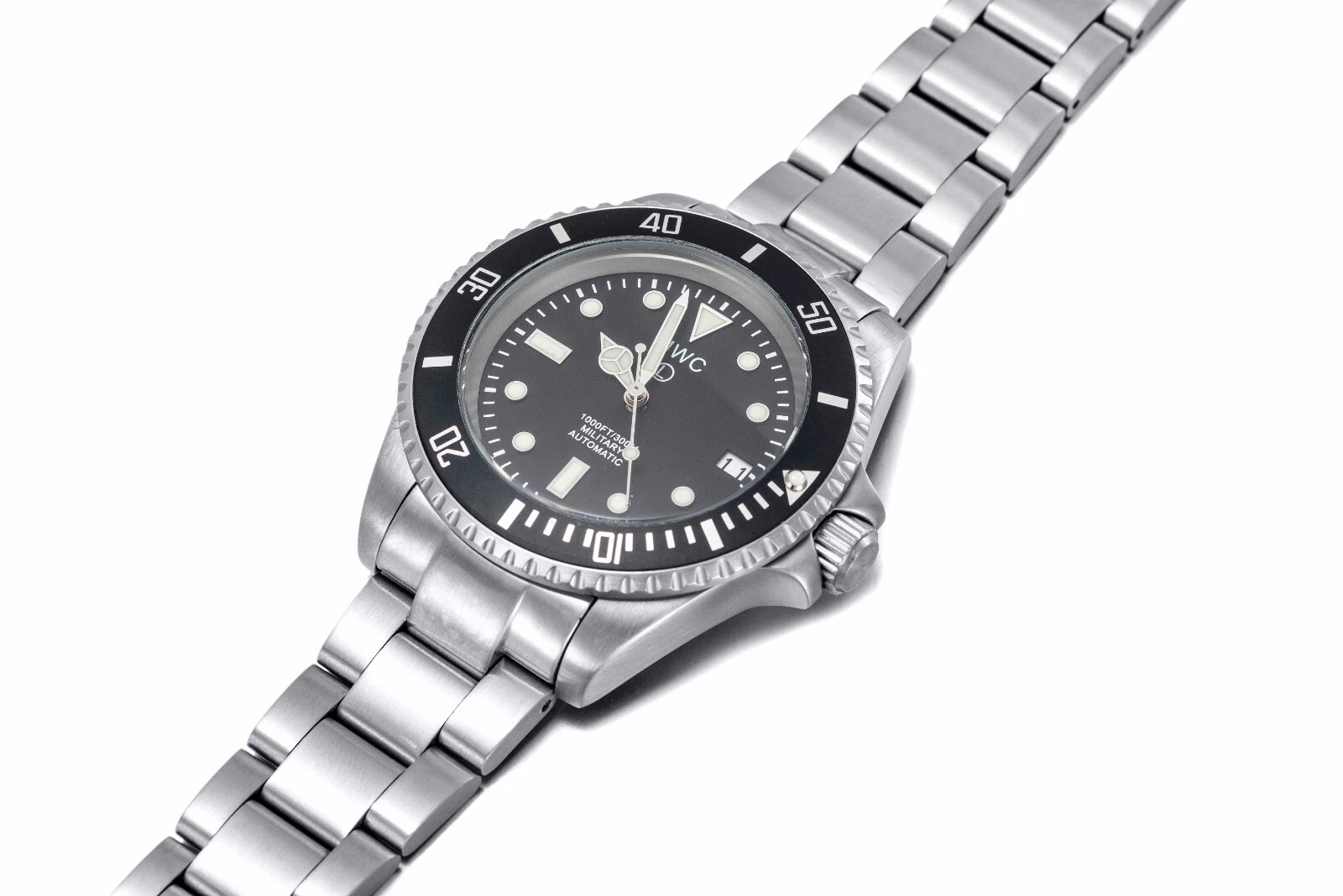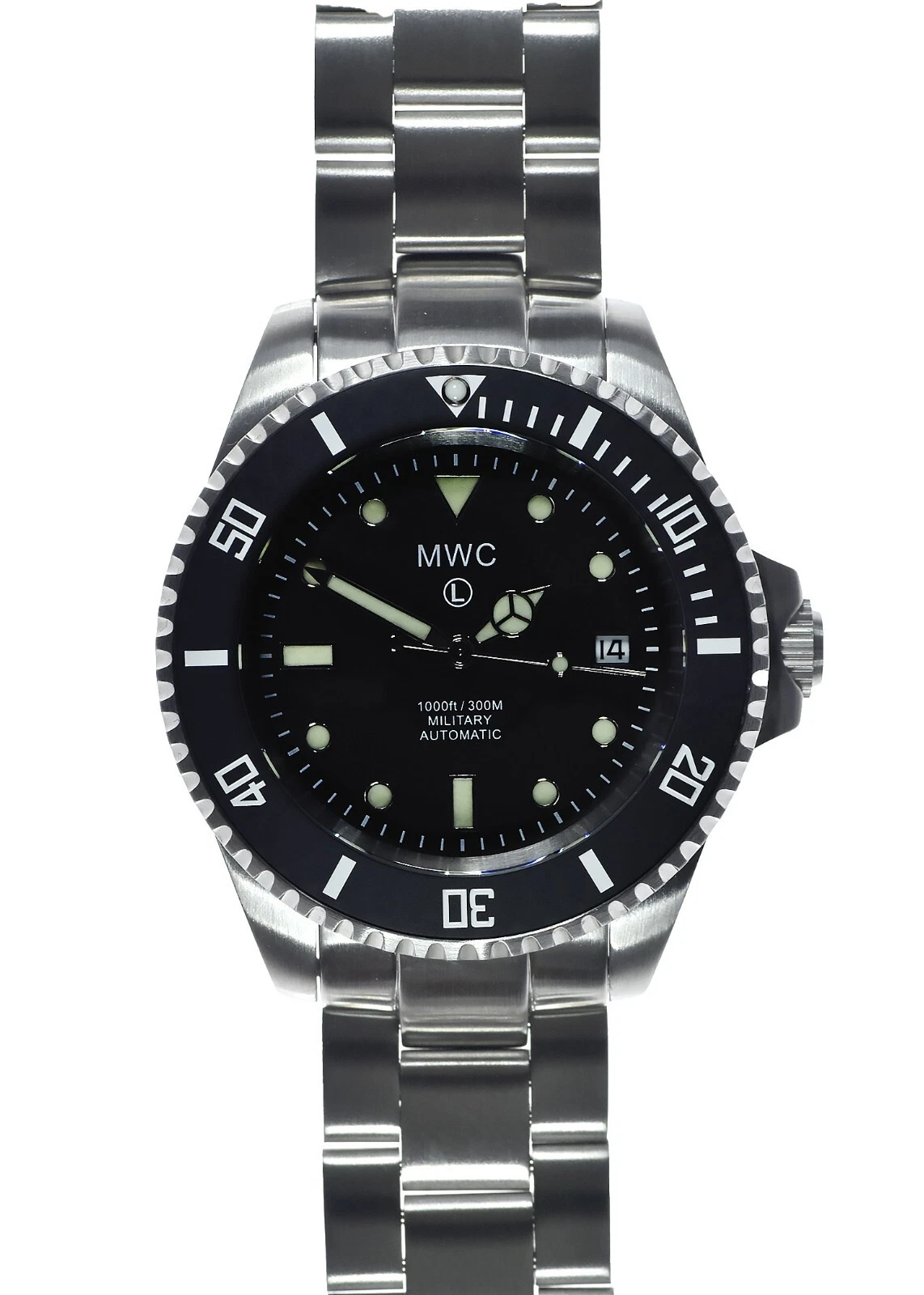 MWC 300m Water Resistant 24 Jewel Auto Military Divers Watch on Steel Bracelet
