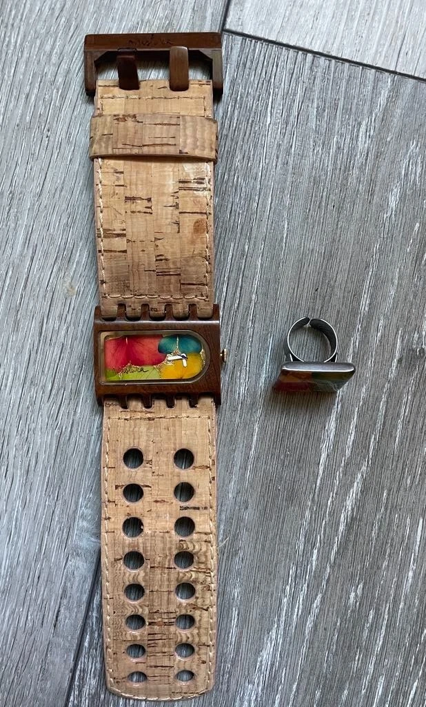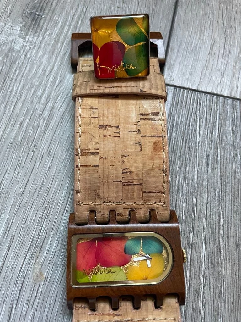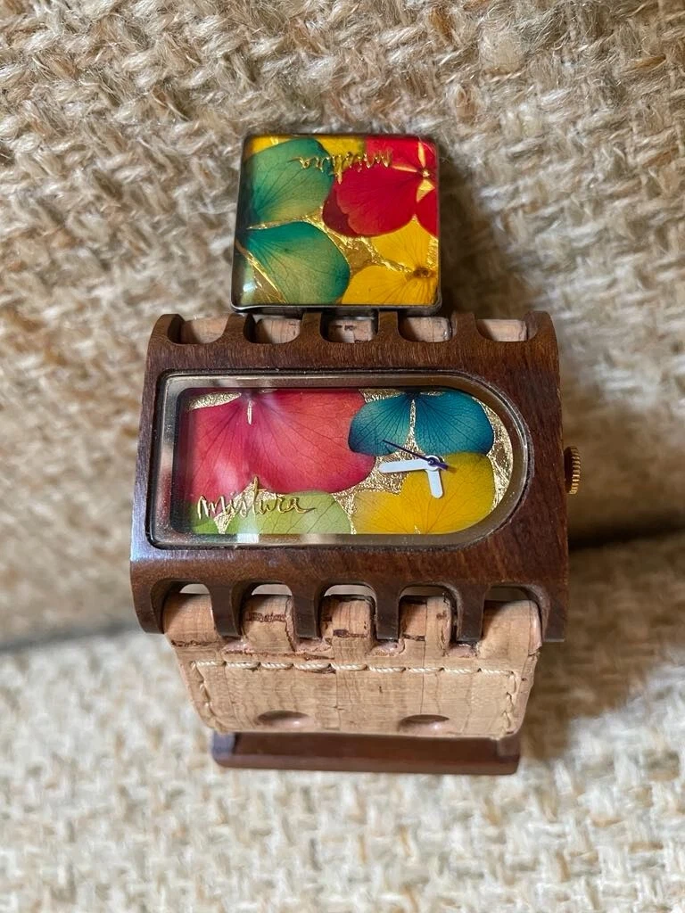 Mistura Ferro Santa Elena Watch – Teak Wood, Hydrangea Dial, Cork Strap + Ring
