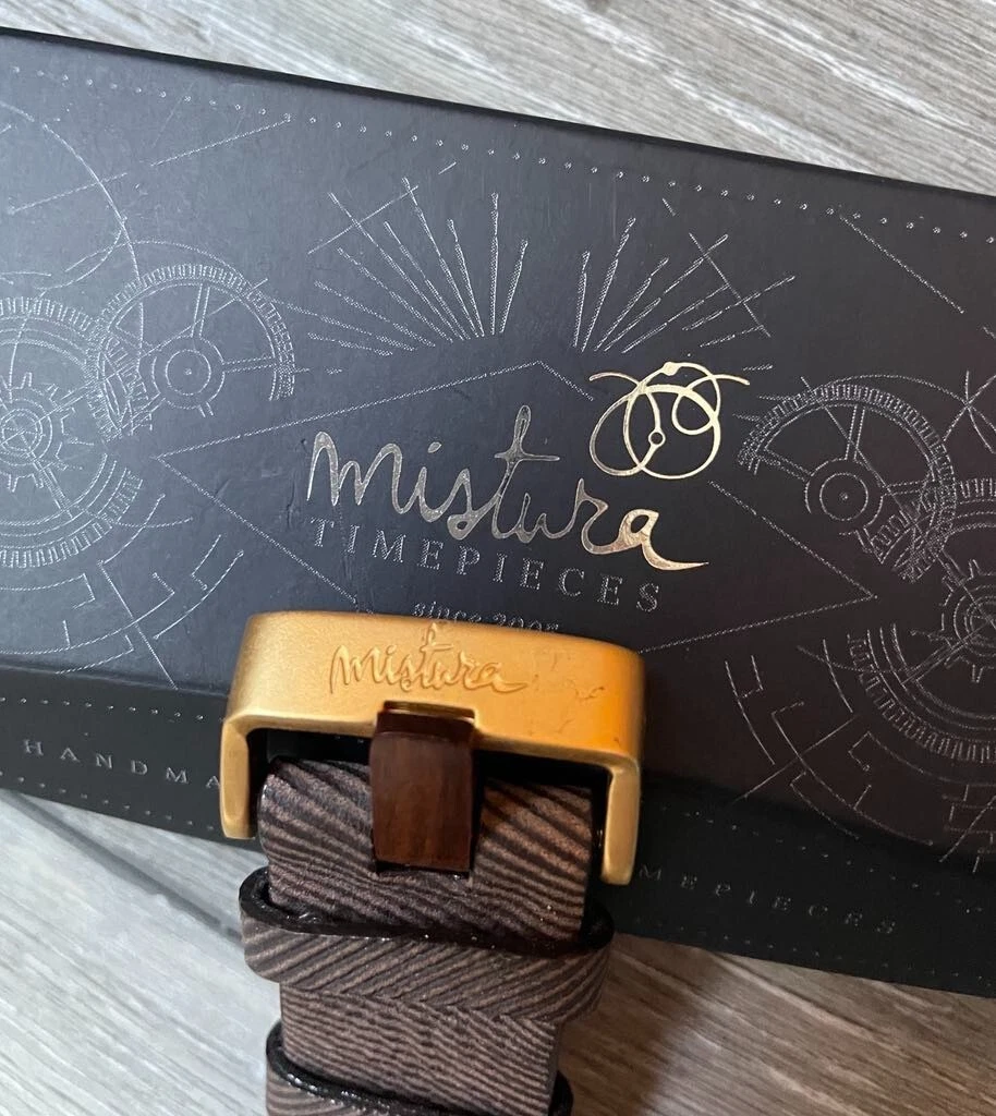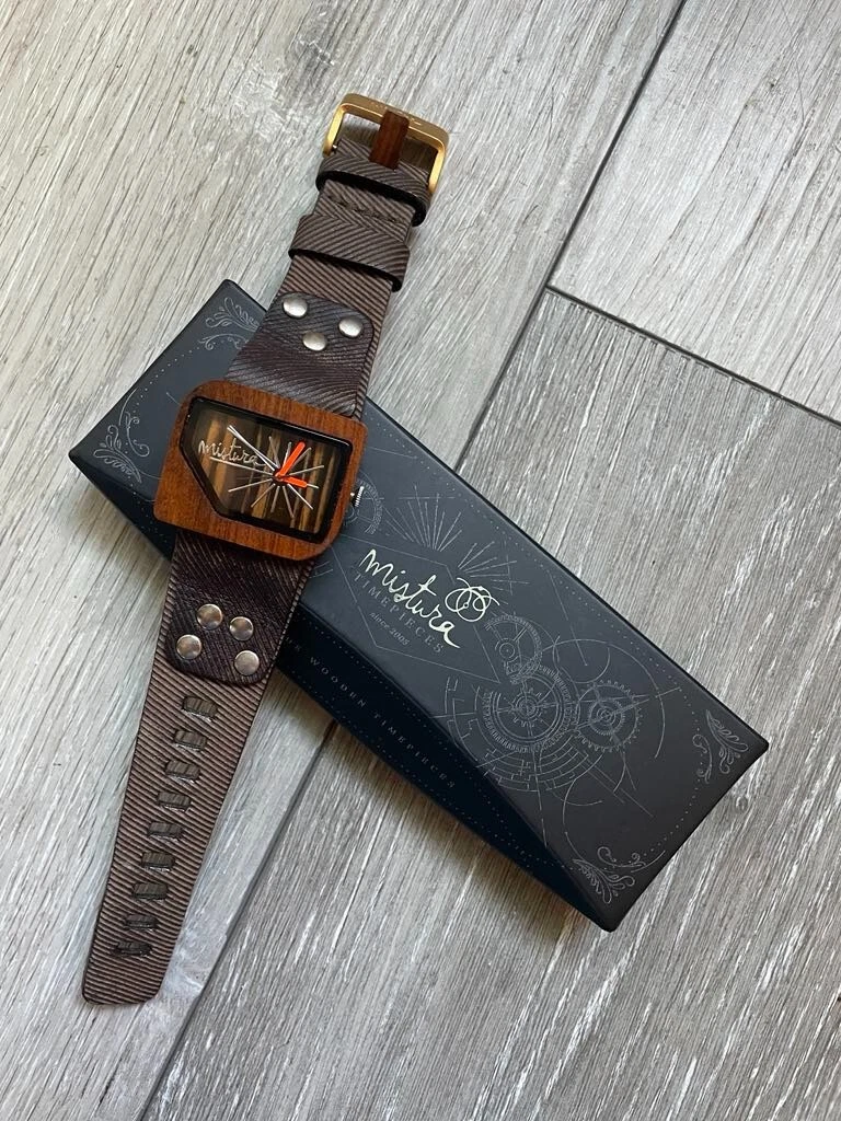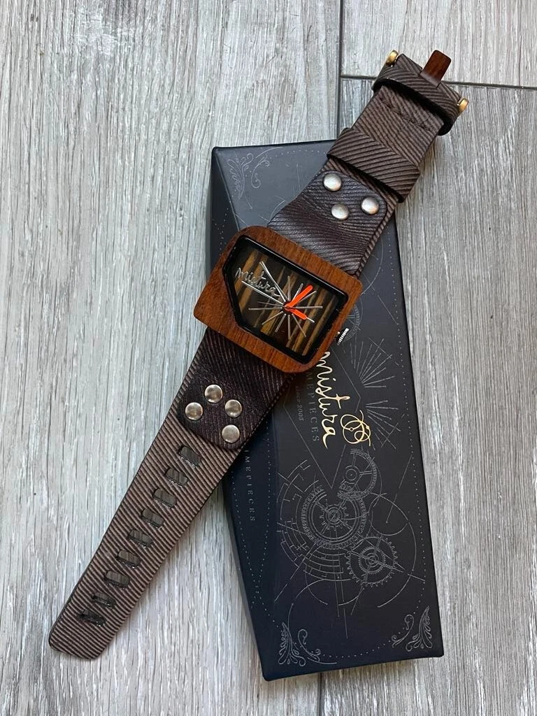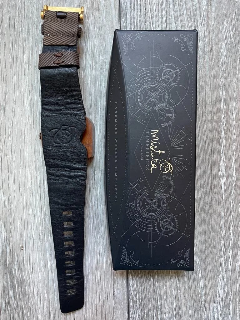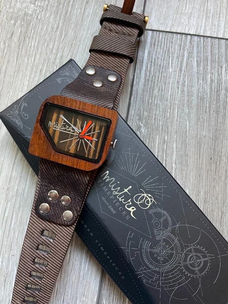 Mistura Pellicano Handmade Watch Teak Wood Pui/Ebony Dial Black Leather Strap