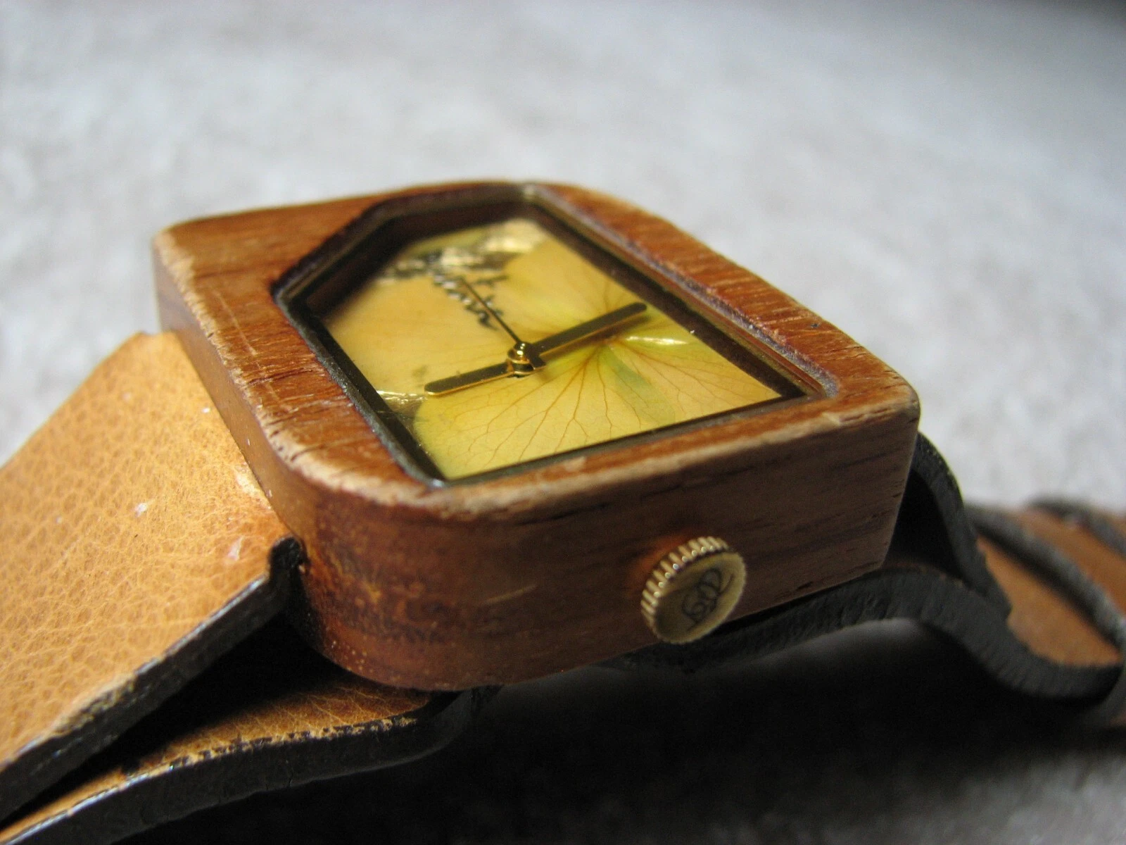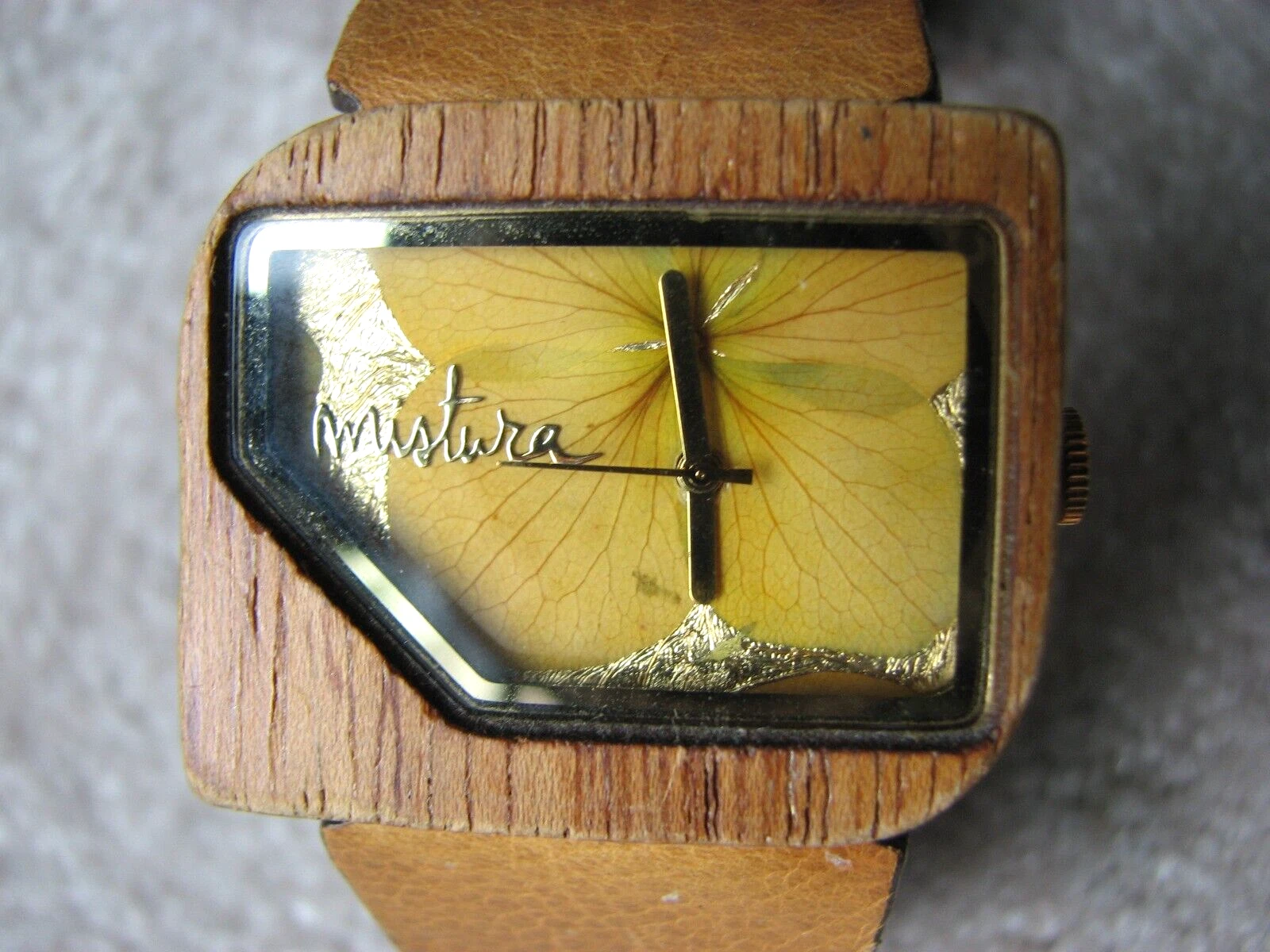 Mistura Timepieces Fine Woods Gold Branches Design Watch Tan Leather Band