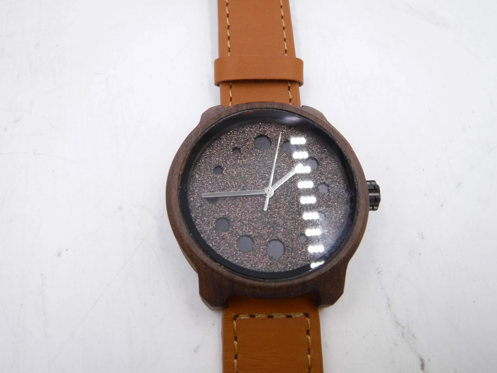 Mistura Marco Silicio Watch with Dark Wood Face and Light Tan Strap