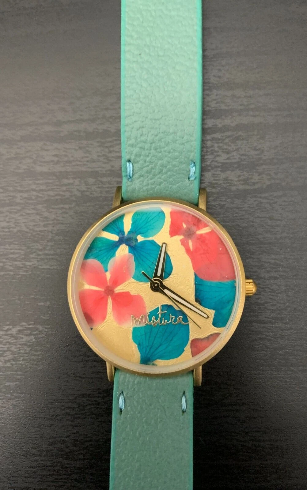Mistura Menta Floral Watch in Turquoise Gold Hawaii Flowers U, Needs New Battery