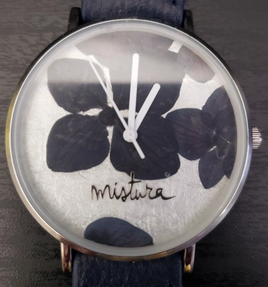 Mistura Timepieces Manta Floral Watch With Blue Leather Strap