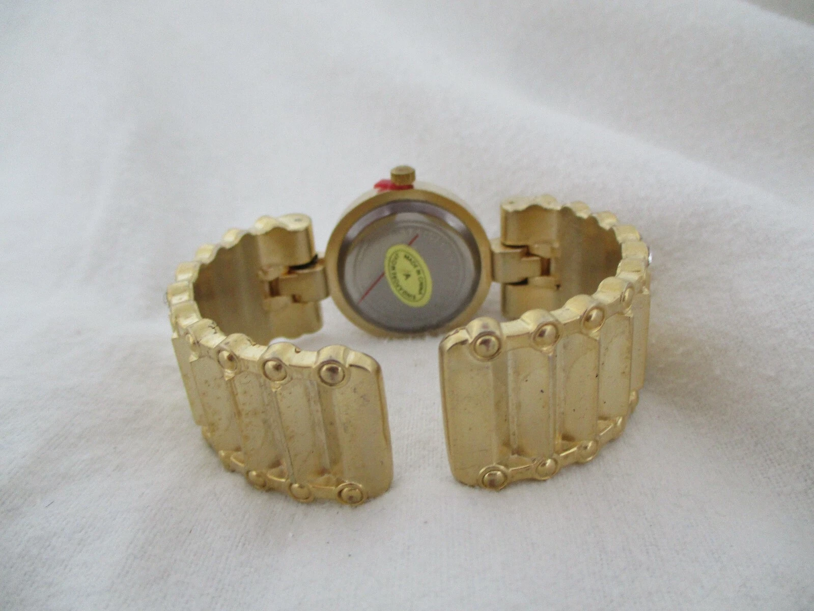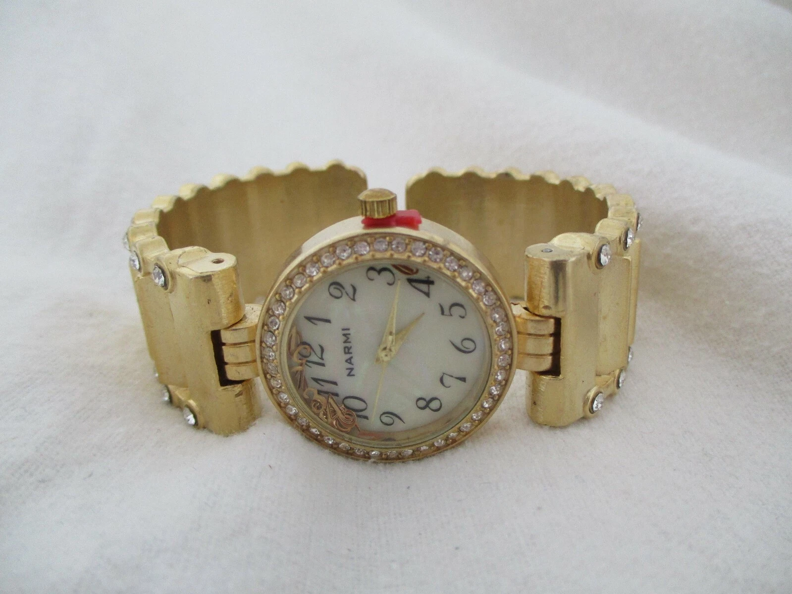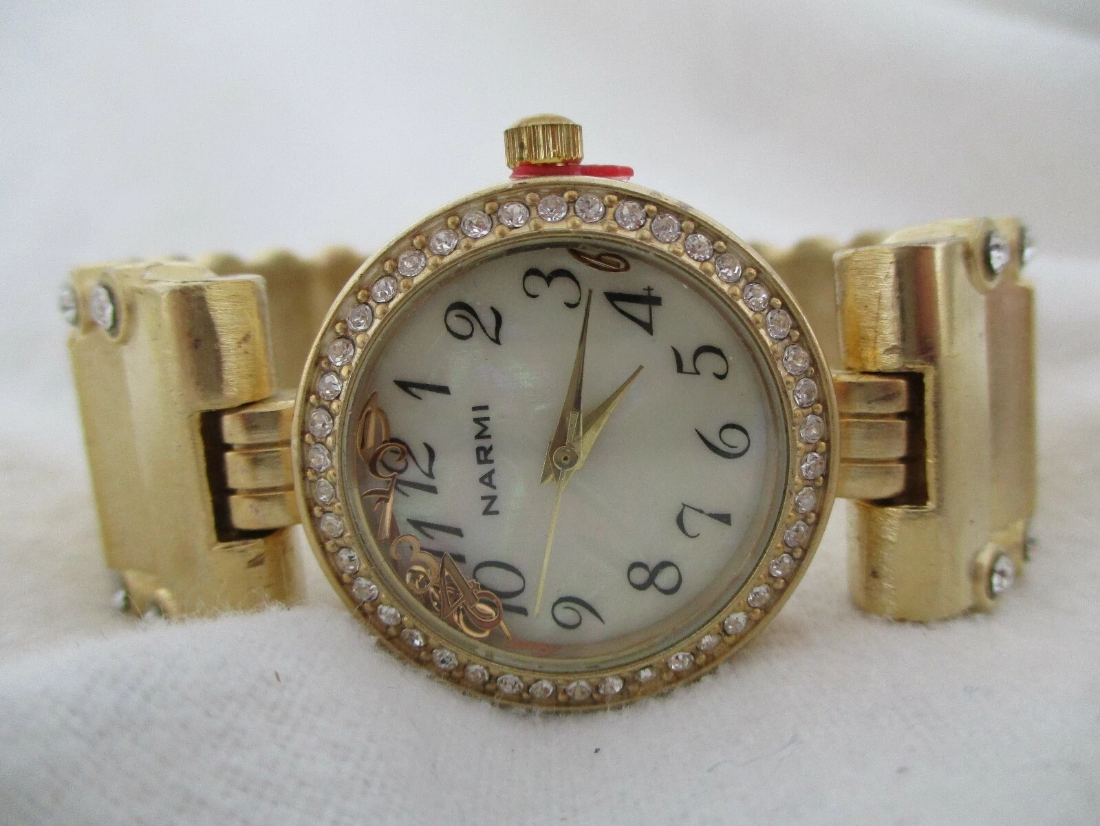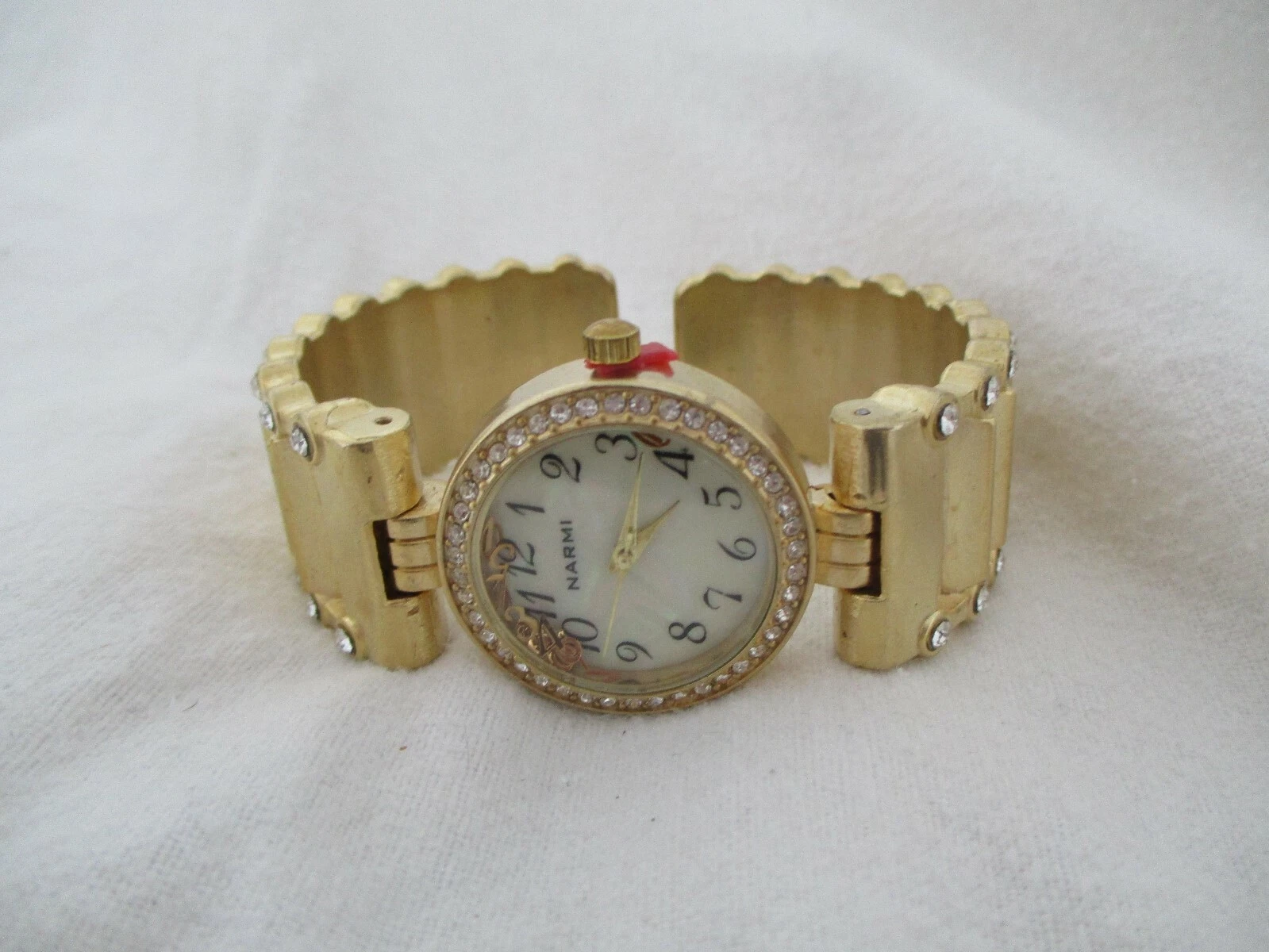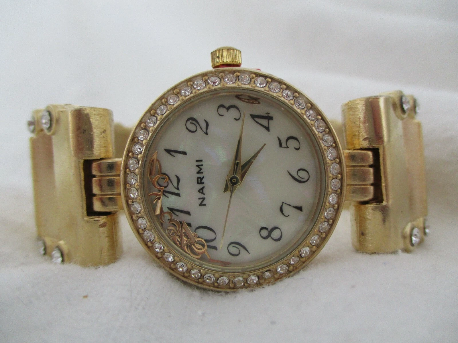 Narmi Goldtone Rhinestone Cuff Watch, Metal Band