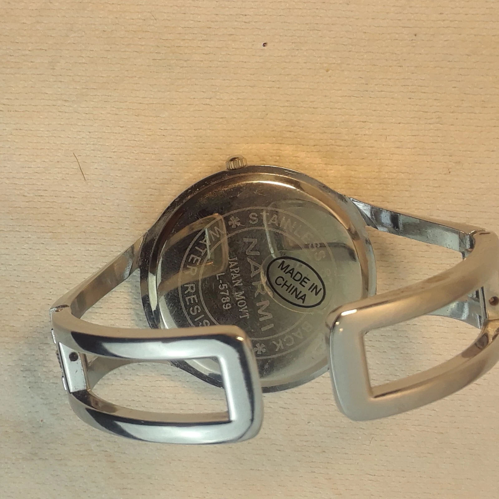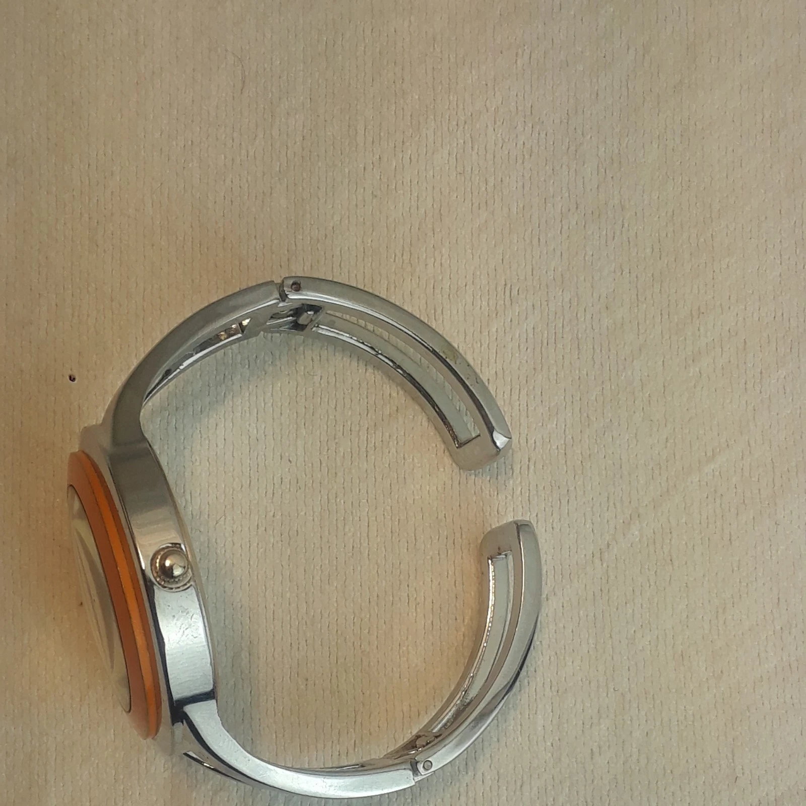 Narmi watch Women's Orange Dial & trim cuff moveable  silver tone L-5789 z5a