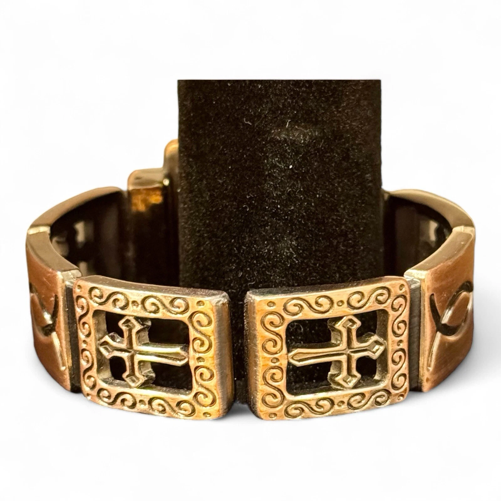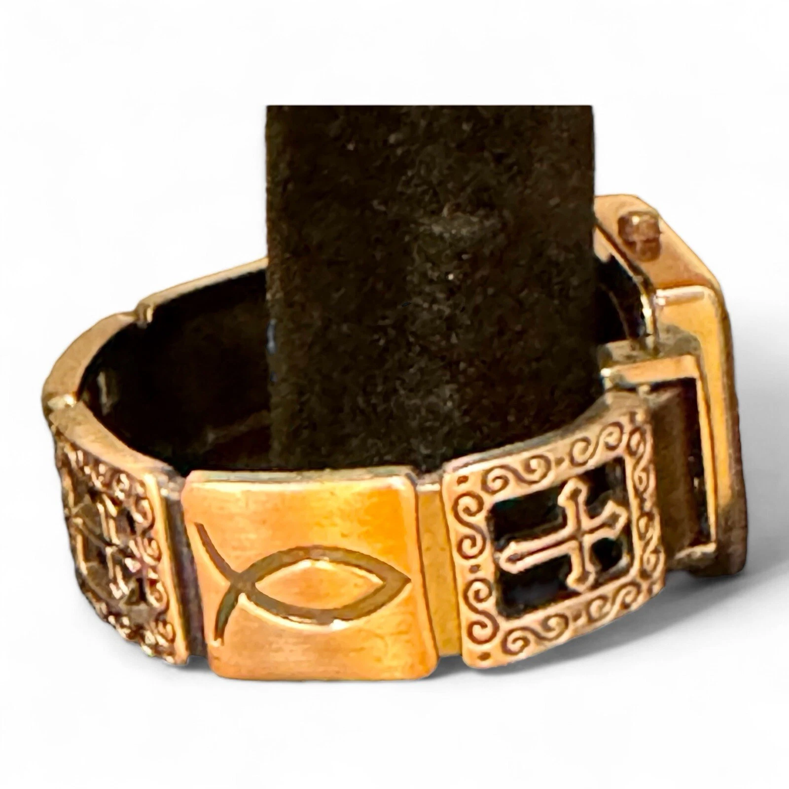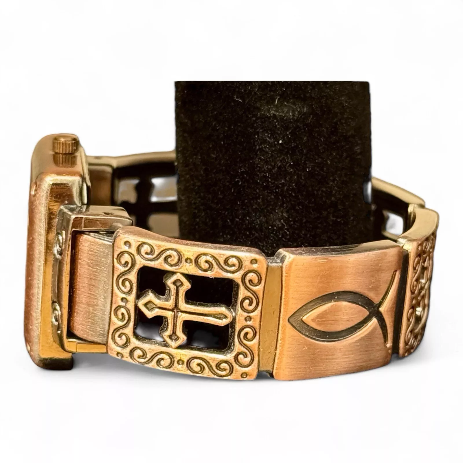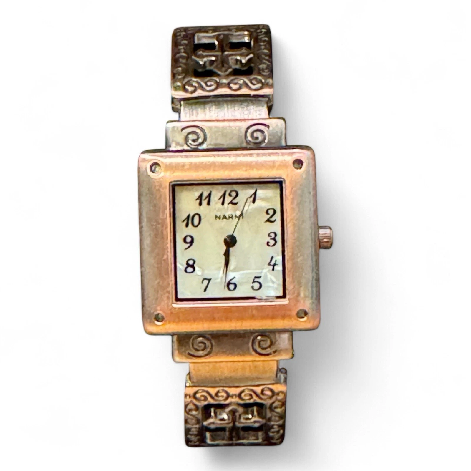 Narmi Bronze Tone Analog Faith Themed Hinged Cuff Watch—New Battery