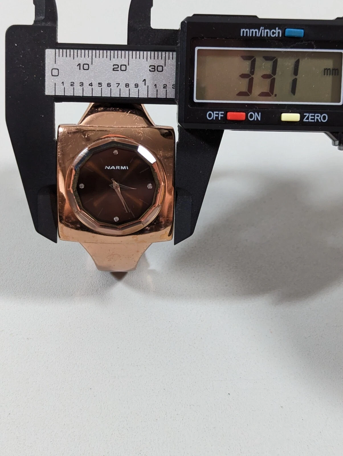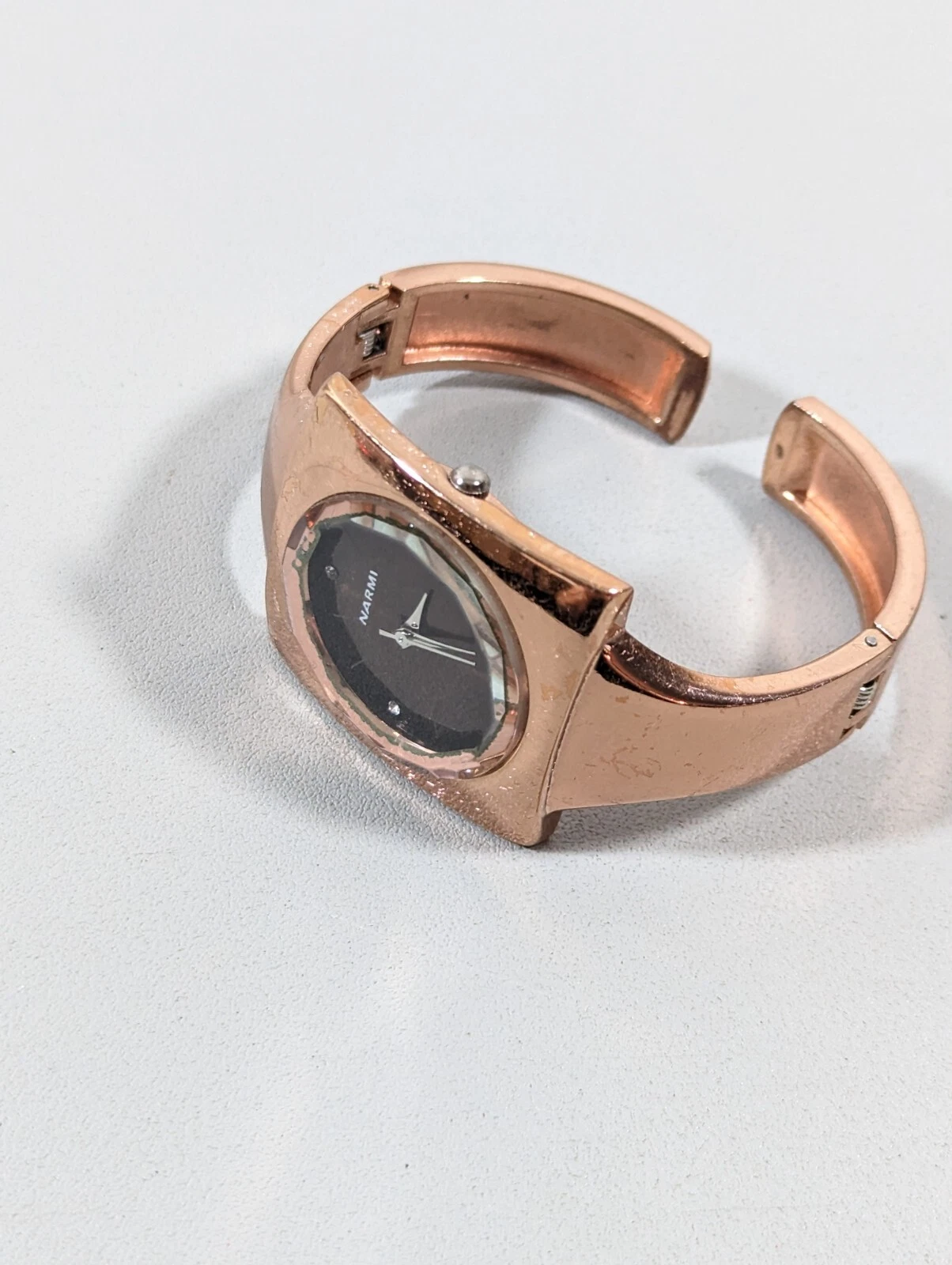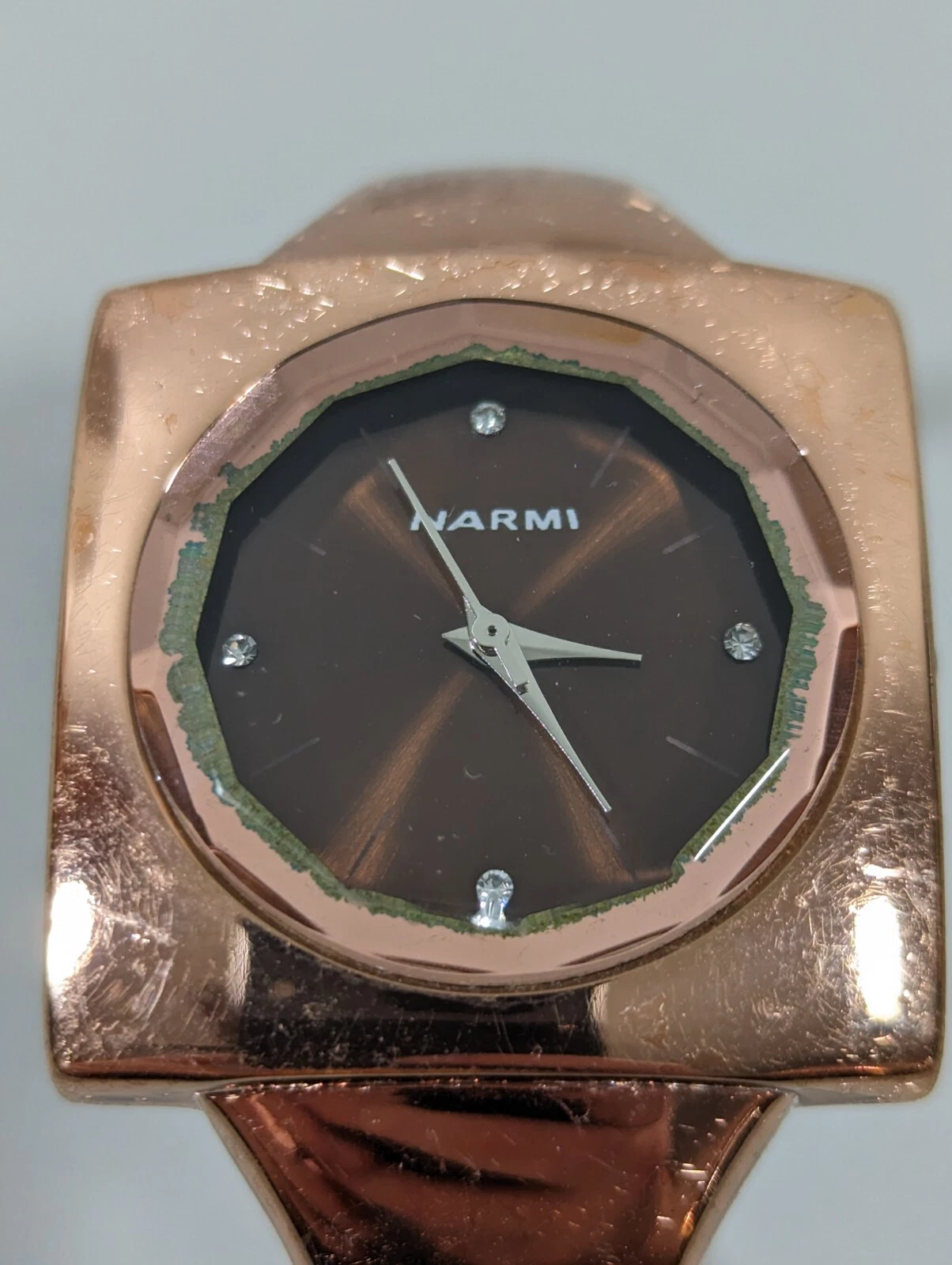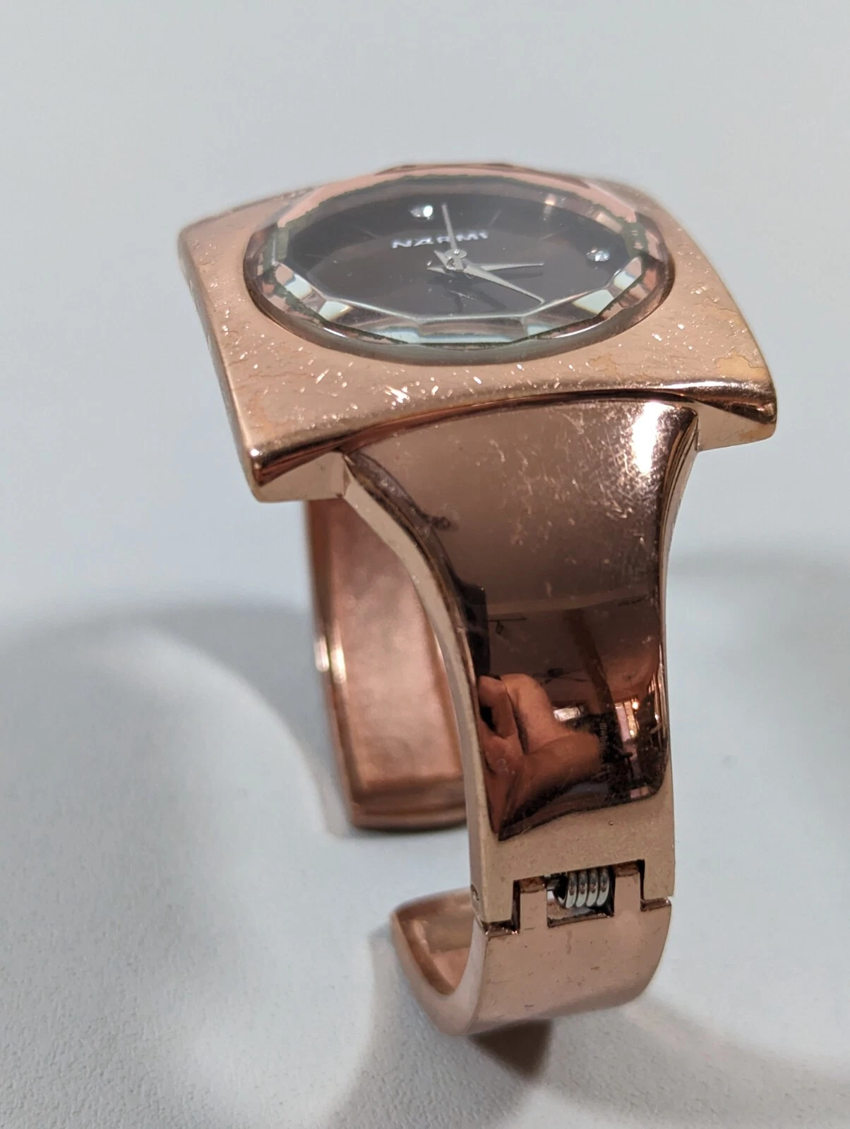 Narmi Brown Dial Square Gold Tone Case Hinge Open Cuff Bangle Band Watch