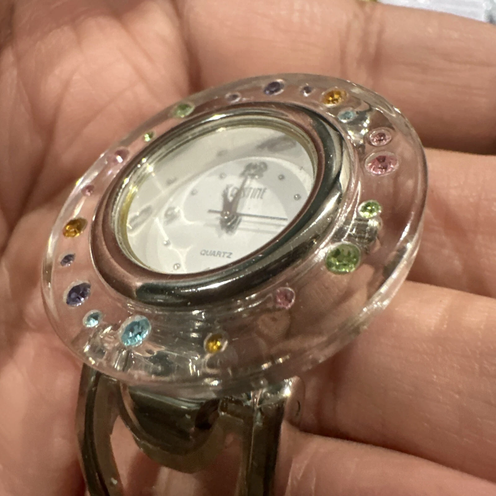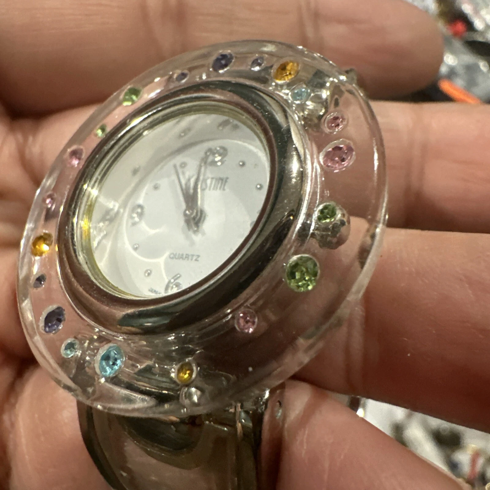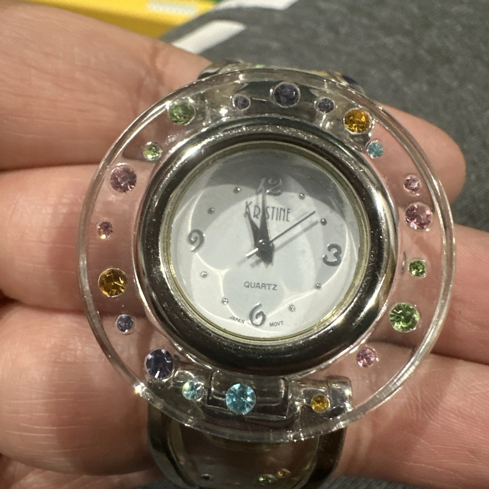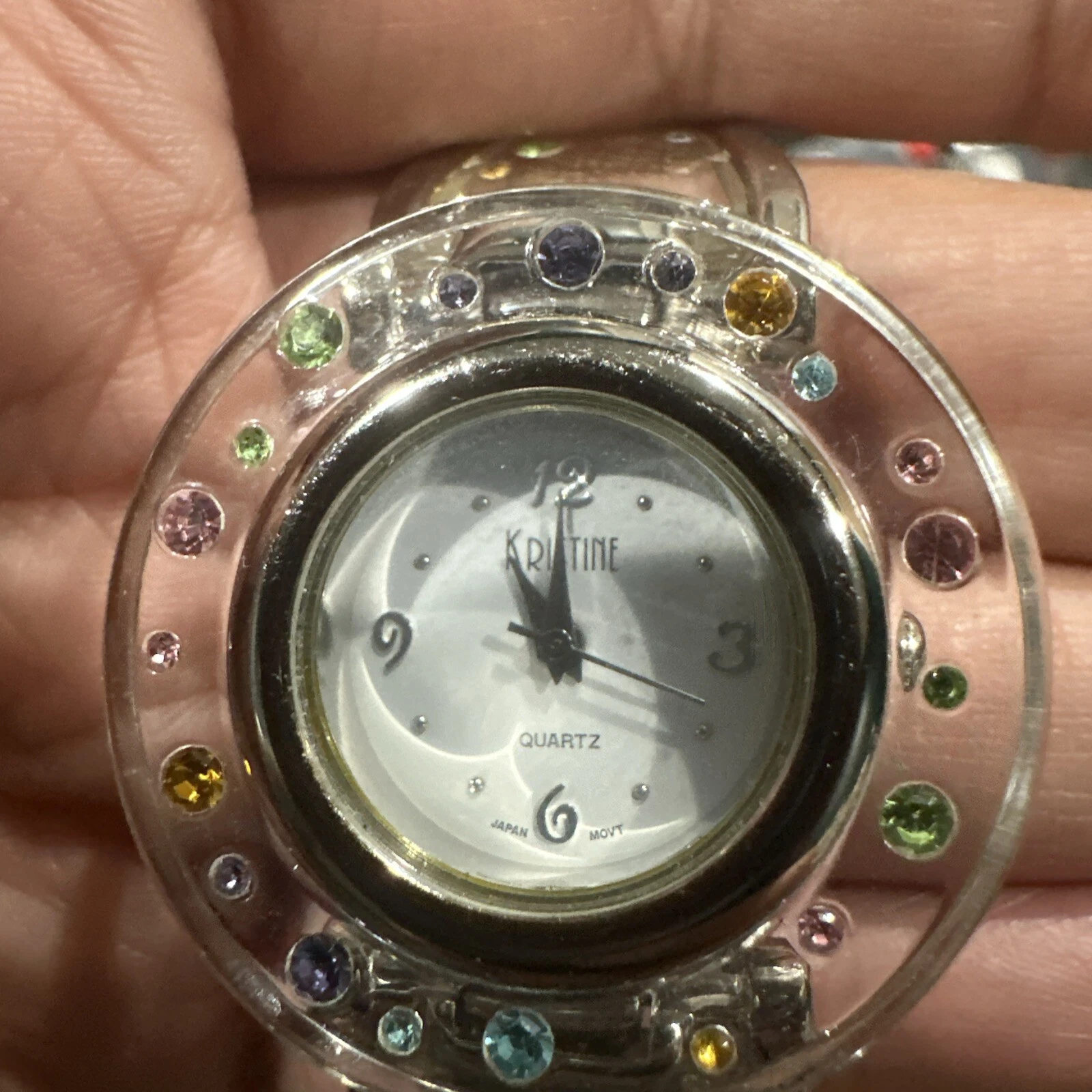 Runs Vintage Antique Kristine Multi Color Transparent Cuff Classic Womens Watch