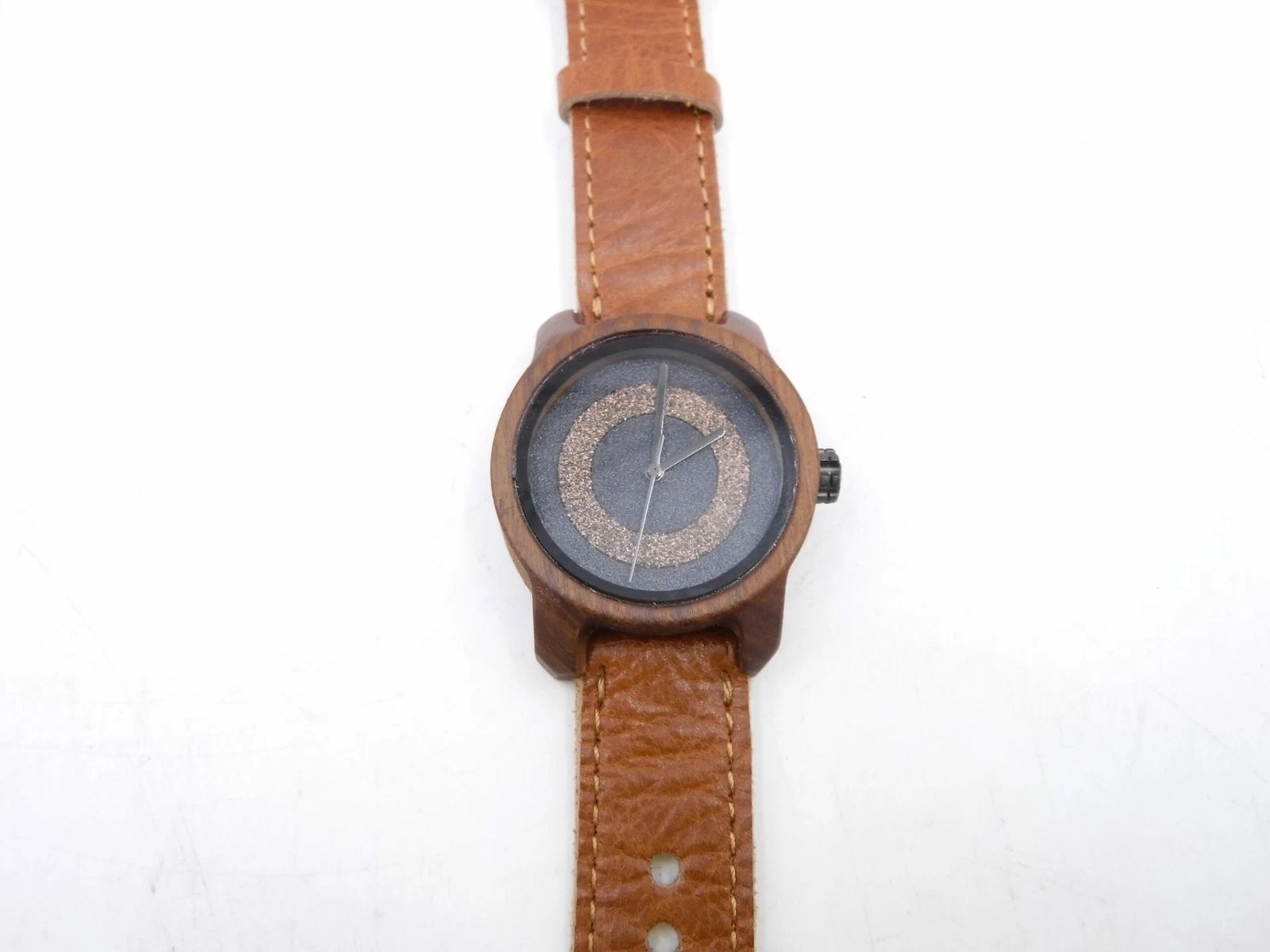 Mistura Marco Silicio Watch with Dark Wood, Tan Leather Strap and Circle Silicon
