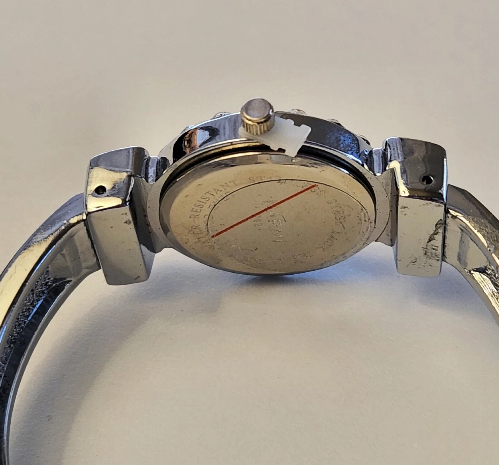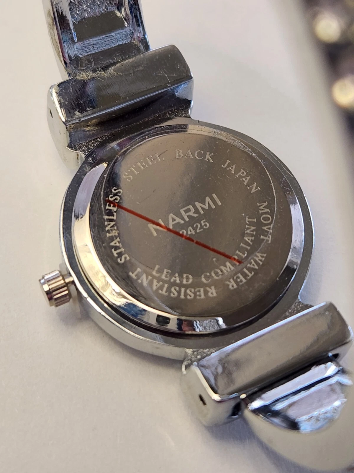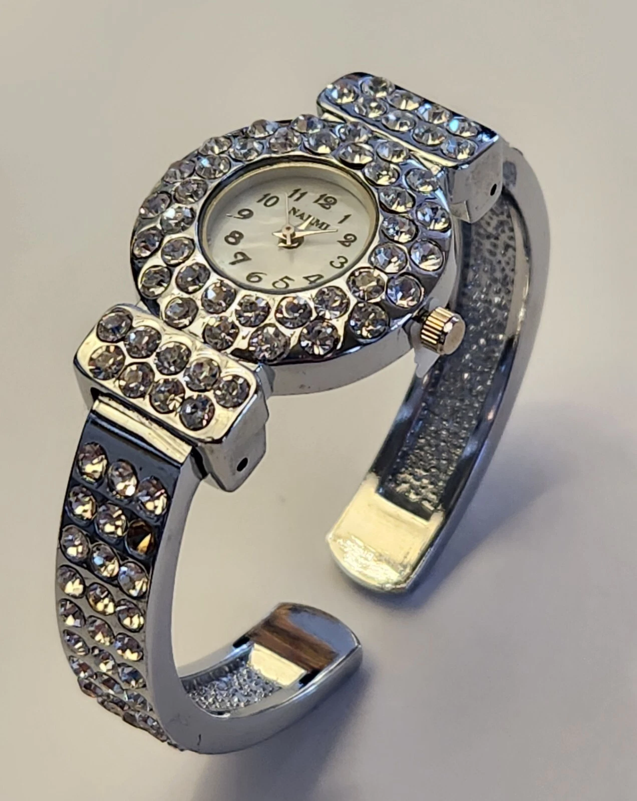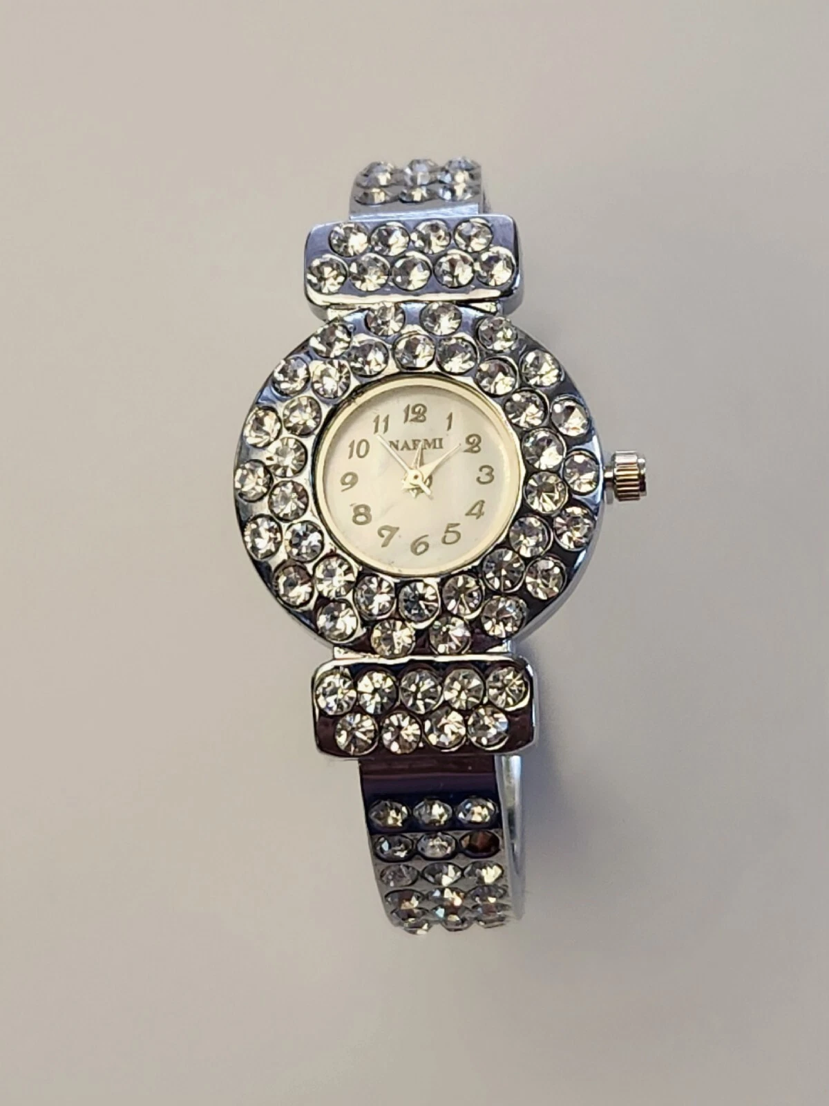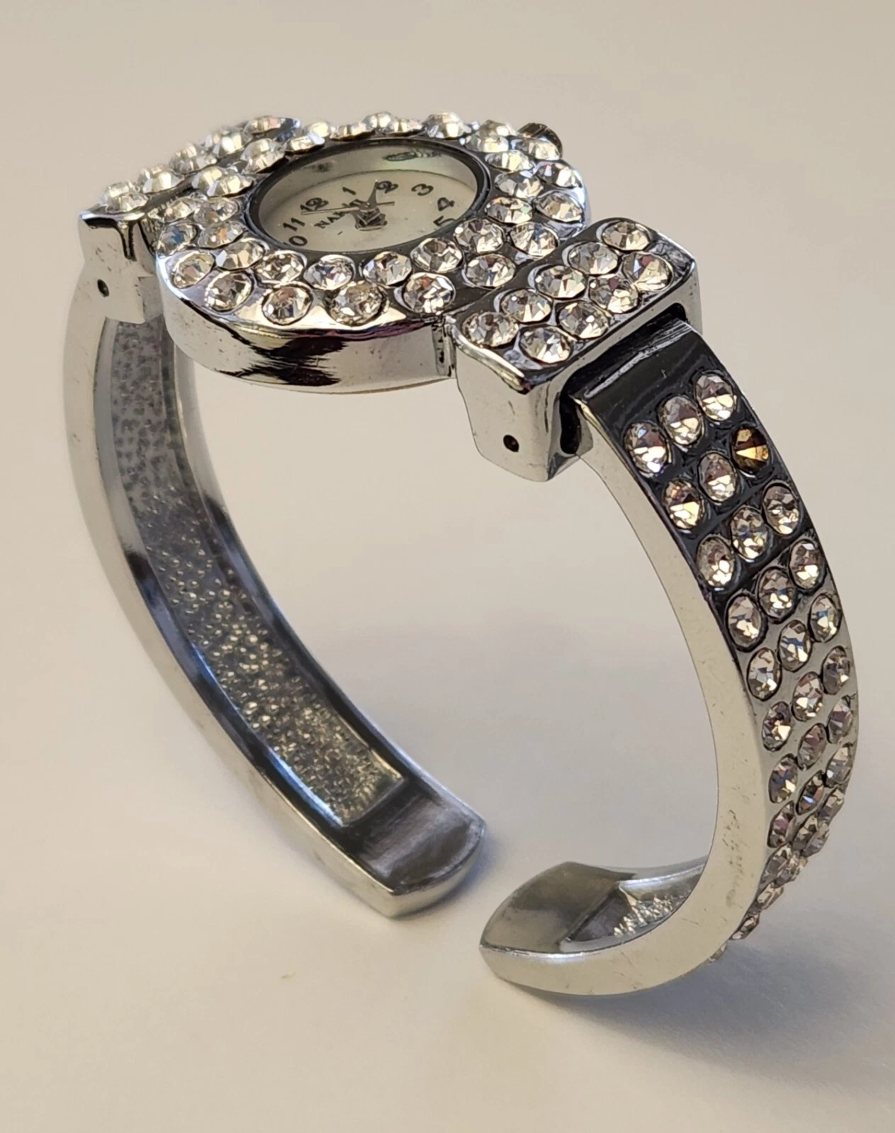 Narmi Bracelet Watch, NEW Rhinestone & Silvertone  Clear Bead Crystals. Stem Tag
