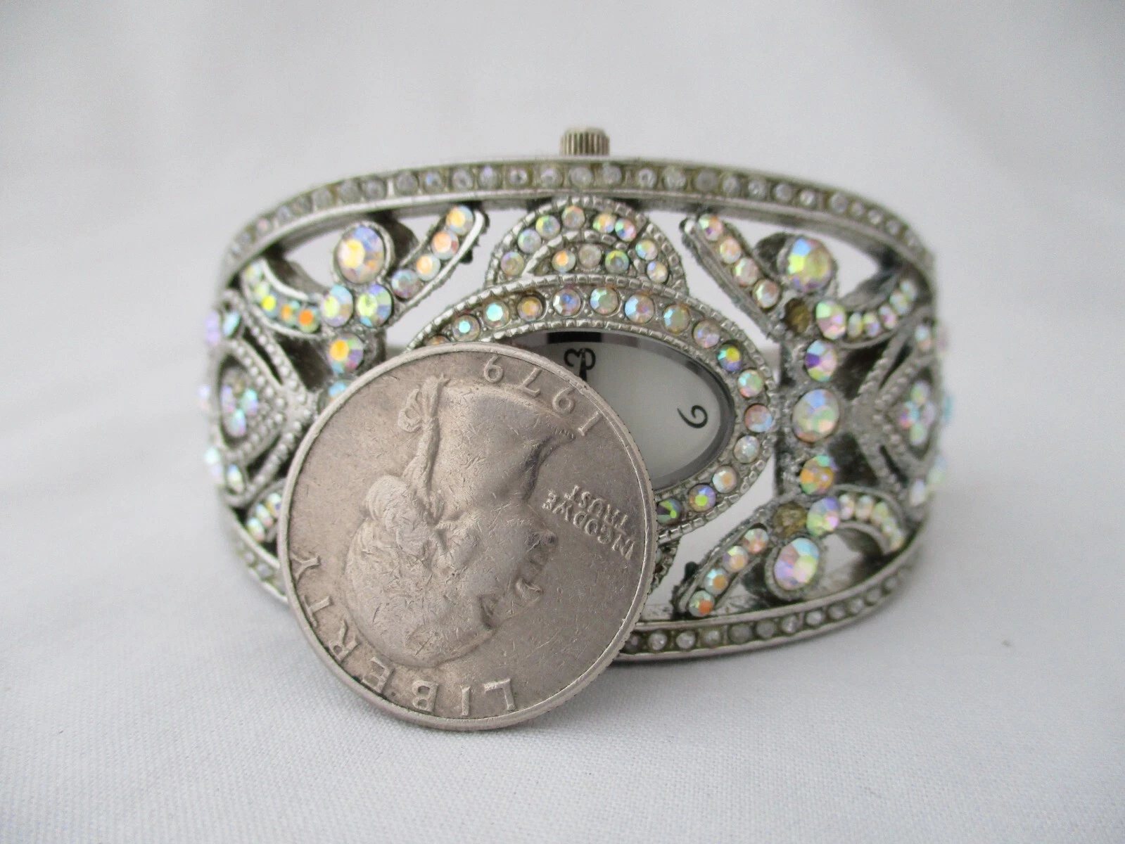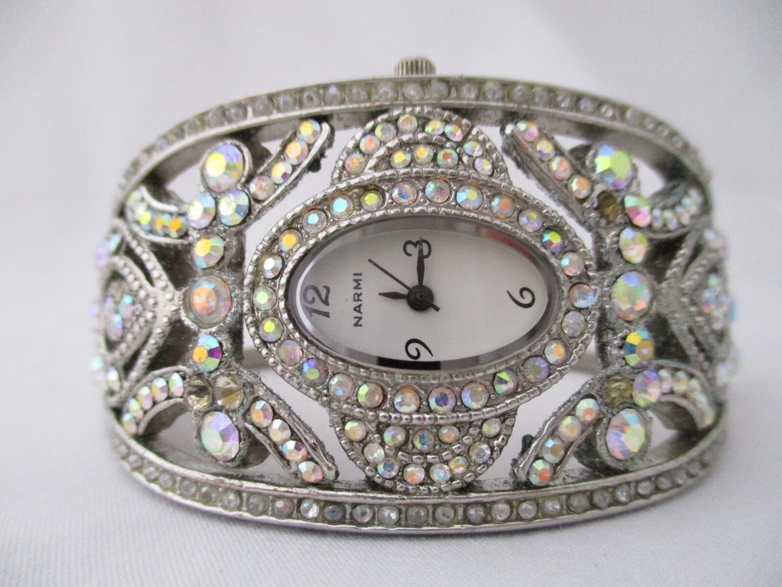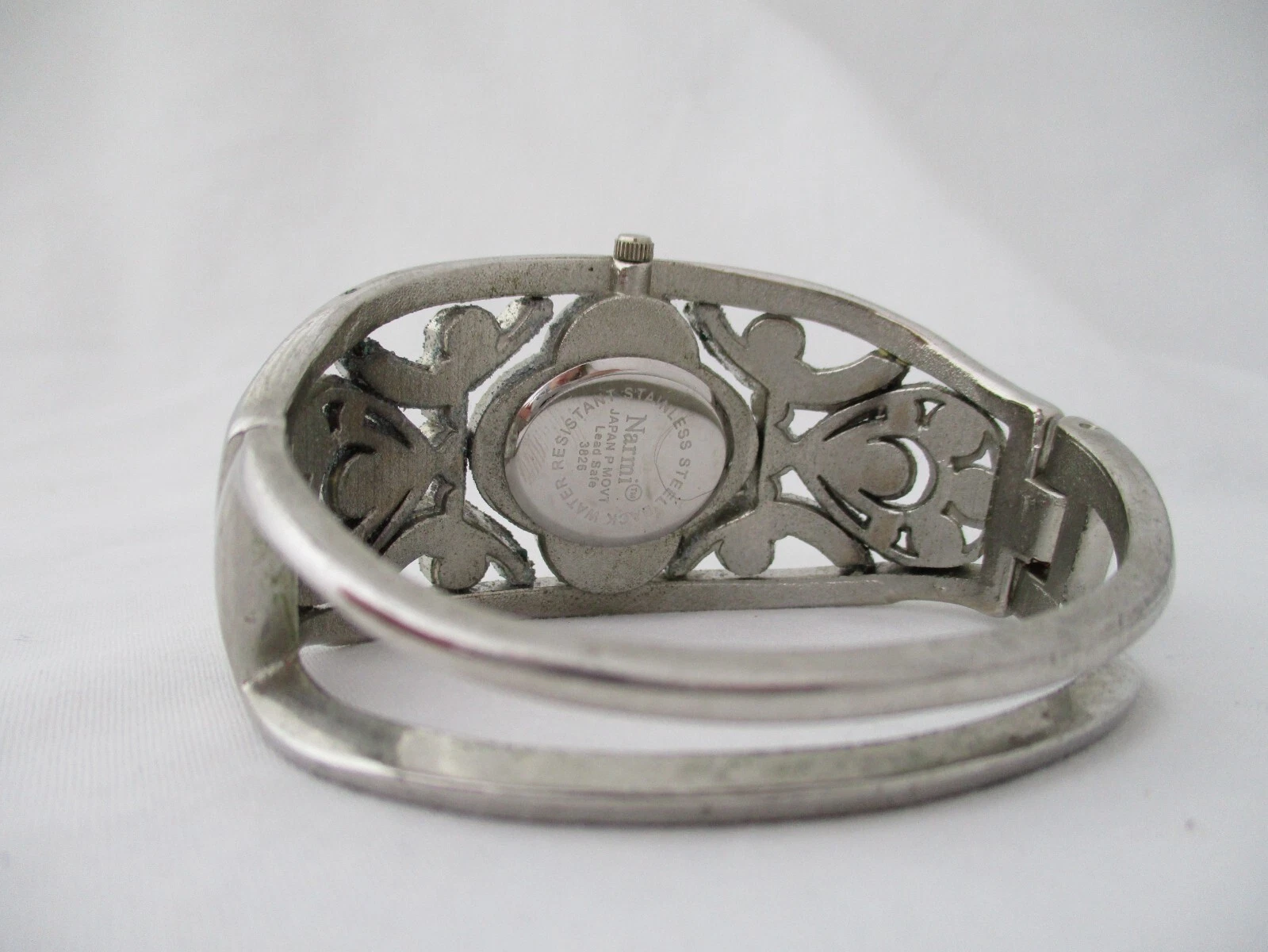 Narmi Women's Analog Watch Silver Toned Cuff Band Rhinestones