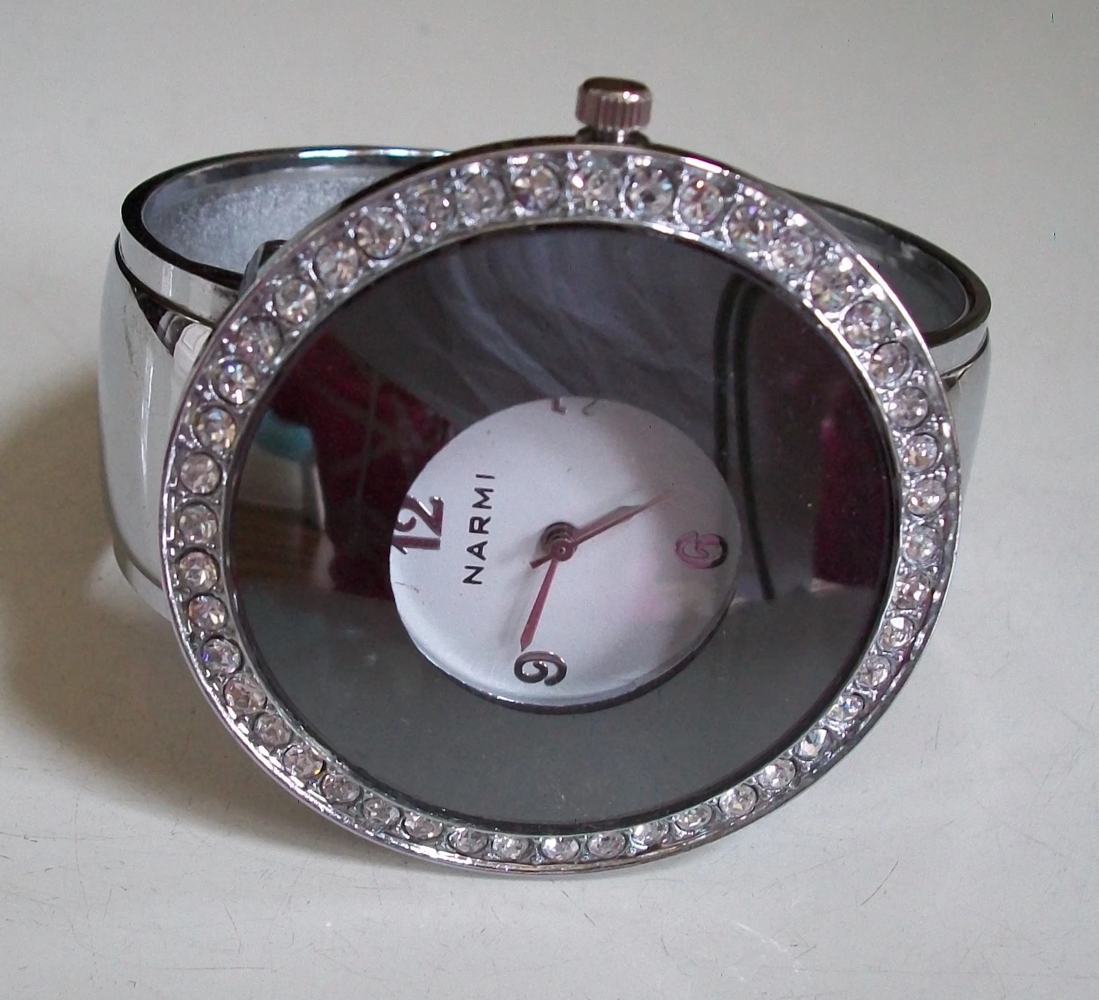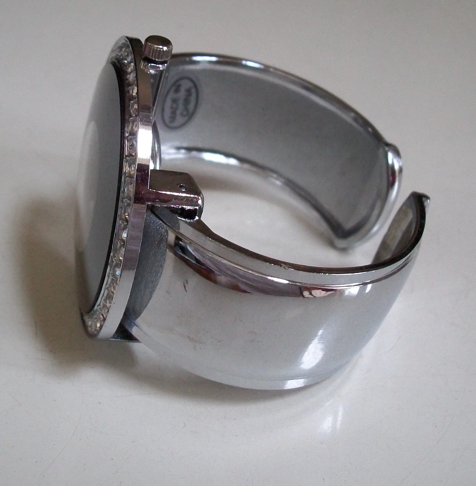 WOMEN'S SILVER FINISH RHINESTONE BANGLE CUFF FASHION DRESSY/CASUAL WRIST WATCH