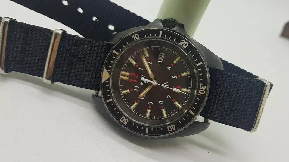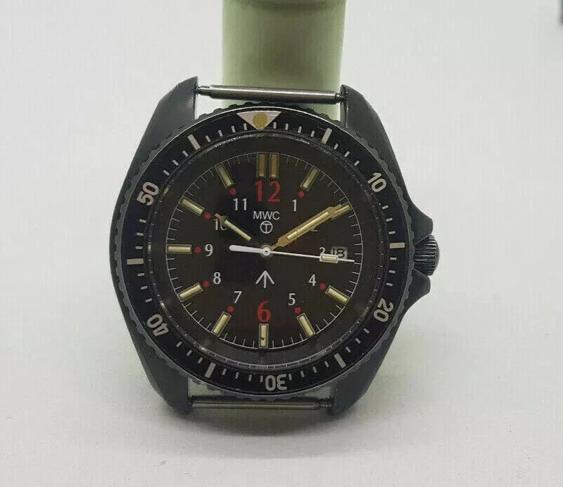 USED MWC DIVER MILITARY BLACK DIAL QUARTZ MAN'S WATCH / S098