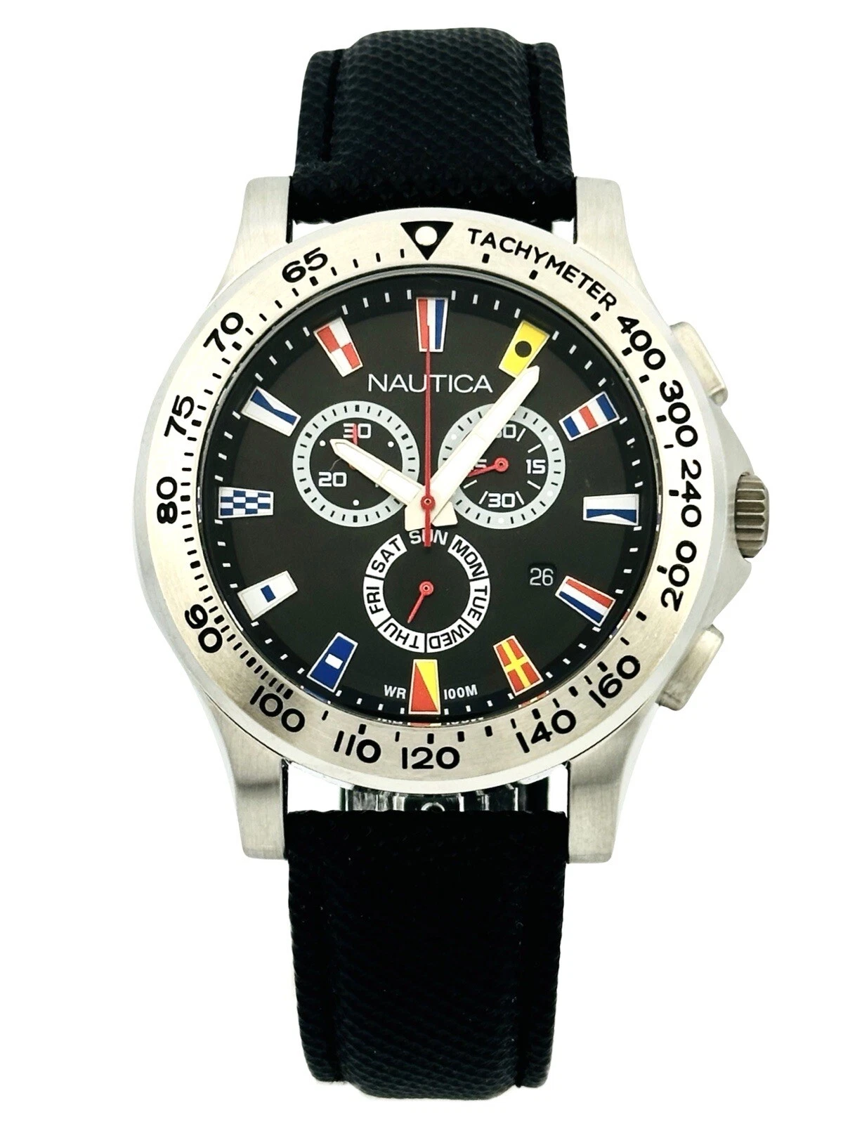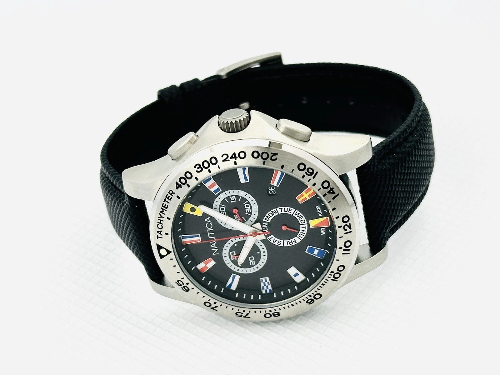 Nautica NST 600 Black Dial Multifunction Chronograph FLAGS Watch A19595G
