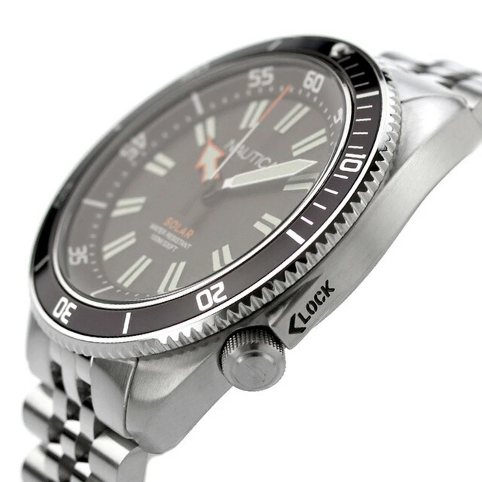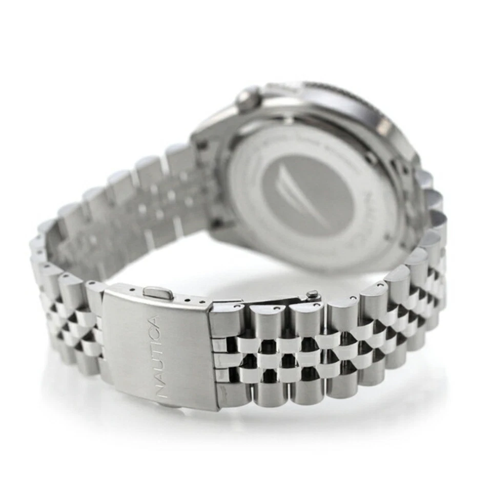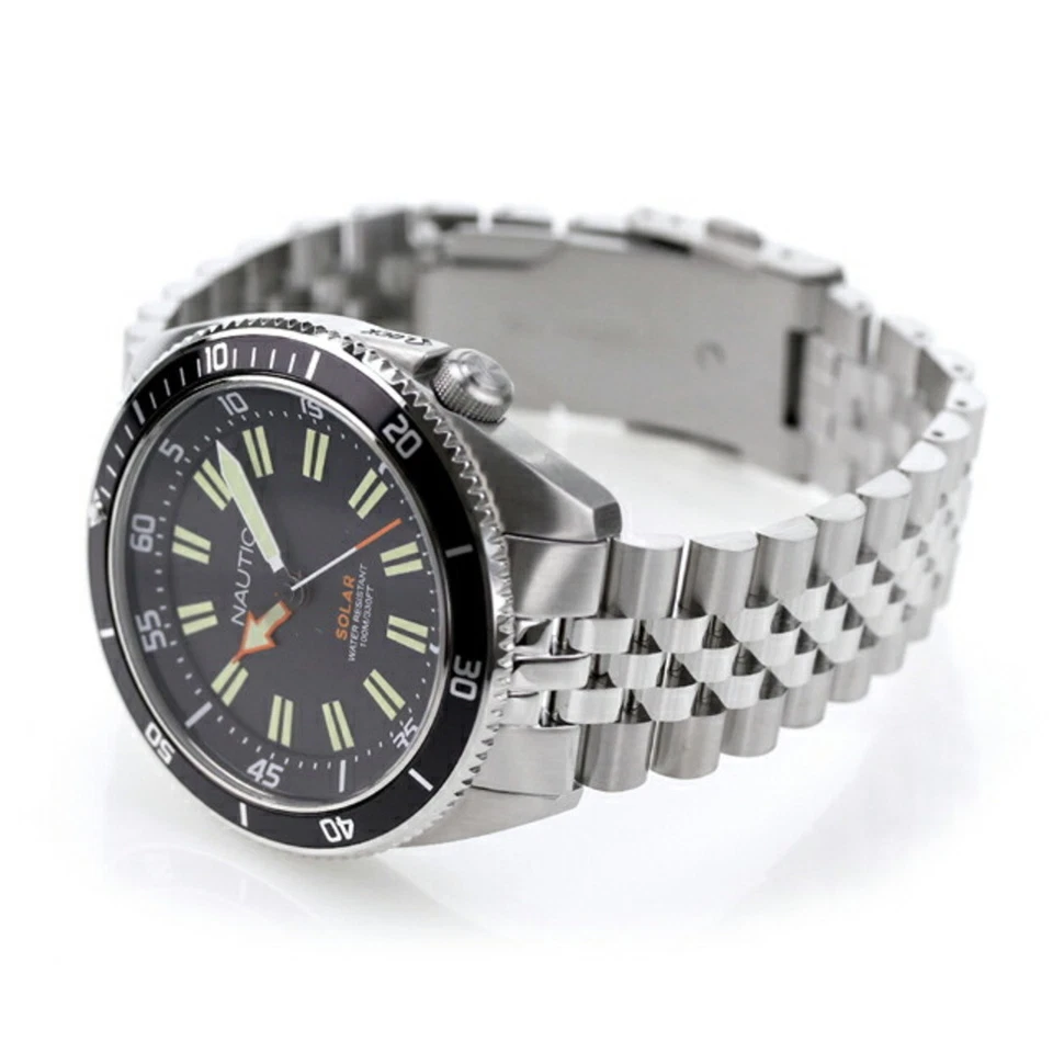 Nautica Vintage Solar Watch NAPNVS405 Black Dial Silver Band Stainless Steel
