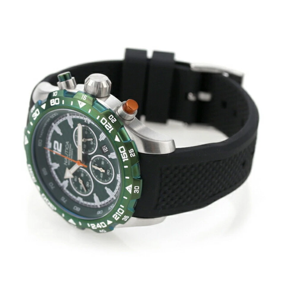Nautica NAPNSS407 Men's Quartz Watch Green Dial Black Rubber Band